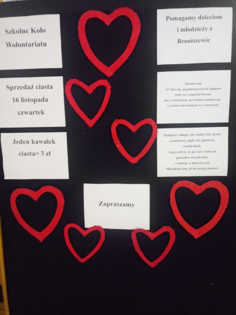 16 listopada odbyła się akcja sprzedaży domowego ciasta wśród uczniów, nauczycieli, administracji i obsługi.