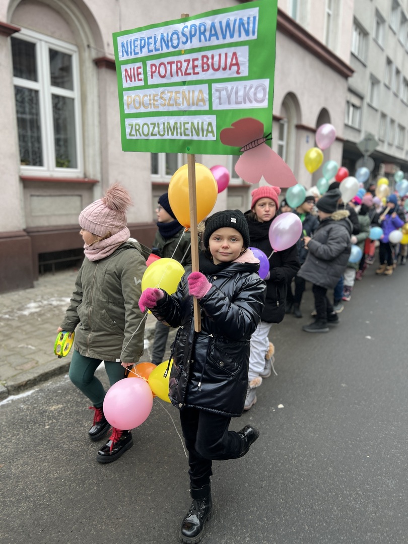 Co roku 3 grudnia obchodzimy Międzynarodowy Dzień Osób z Niepełnosprawnościami, którego celem jest zwiększenie świadomości publicznej na temat ograniczeń, z jakimi borykają się osoby z niepełnosprawnościami i potrzeby konkretnych działań w kierunku ich likwidowania. Nasi uczniowie włączyli się w obchody tegorocznych obchodów. 🤗 Maszerując ulicami miasta uświadomili mieszkańcom miasta jak ważna jest wrażliwość i empatia. Wkoncu jak mówi nasz baner... "Niepełnosprawni nie potrzebują pocieszenia, tylko zrozumienia". Szanujmy się i dbajmy o siebie nawzajem. 🎈♥️
