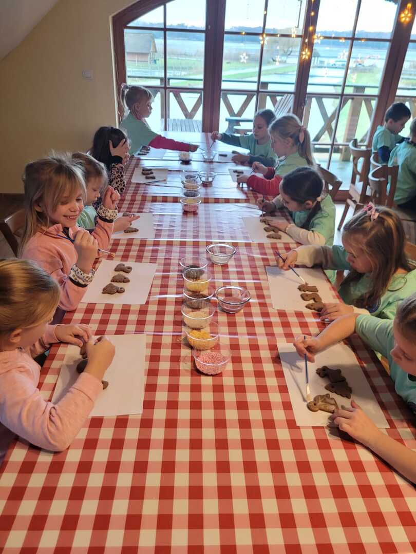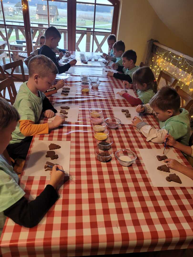 Nasze przedszkolaki gotowe na Święta 🎄☃️🎁 Ostatnie dni były dla klasy "0" bardzo aktywne. Dzieci wzięły udział w świątecznych warsztatach edukacyjnych " Od karpika do piernika ". Przedszkolaki miały okazję zobaczyć prawdziwy strój rybaka, uczestniczyły w spektakularnym pokazie ryb 🐟🐟, a także karmiły daniele marchewkami 🥕🥕 . Aby podtrzymać świąteczną tradycję, samodzielnie wykonały kolorowy lukier z barwnikami z pietruszki , buraka i cytryny, a następnie udekorowały pierniki, również naturalnymi posypkami. Nie zabrakło też gier i zabaw.