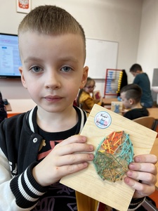 Warsztaty techniczno-artystyczne sprzyjają rozwojowi zdolności manualnych oraz osiąganiu satysfakcji z własnoręcznej pracy, a także podnoszą wiarę w siebie i swoje możliwości.☺️ O tej wspaniałej formie nauki w niepowtarzalnej atmosferze przekonaliśmy się dziś wykonując prace wiosenne techniką stringart 🧵. Spójrzcie jakie arcydzieła wyszły spod malutkich rączek pierwszoklasistów 🤚🏻