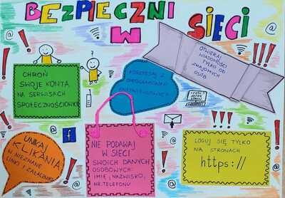 W tym roku również w naszej szkole obchodziliśmy Dzień Bezpiecznego Internetu. DBI ma na celu inicjowanie i propagowanie działań na rzecz bezpiecznego dostępu dzieci i młodzieży do zasobów internetowych oraz promocję pozytywnego wykorzystania Internetu. Dzień Bezpiecznego Internetu w roku 2024 przypada na 6 lutego, a jego obchody zaplanowane są do końca marca. W ramach obchodów DBI odbył się szkolny konkurs na plakat: „Bezpieczeństwo w sieci”.