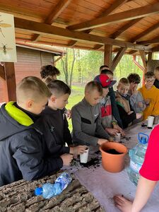 Dowiedzieliśmy się dziś na czym polega praca leśnika i co kryje się pod skomplikowaną nazwą „zróżnicowana gospodarka leśna” 🪵🦔🫎 Następnie mieliśmy okazję posłuchać w terenie ciekawostkek o gatunkach drzew naszej okolicy 🌲🌳🌿 zasadziliśmy zebrane samodzielnie siewki drzew i obiecaliśmy Pani, że za 20 lat będziemy chwalić się naszymi pięknymi drzewami, które z nich wyrosną 🌱