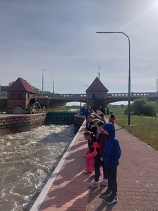 Edukacja w plenerze to najlepsza nauka! 🧑🏫 Aktywni Błękitni 💙 z klasy IIb wiedzą już czym są jaz, śluza, przepławka oraz stopień wodny. 🧒