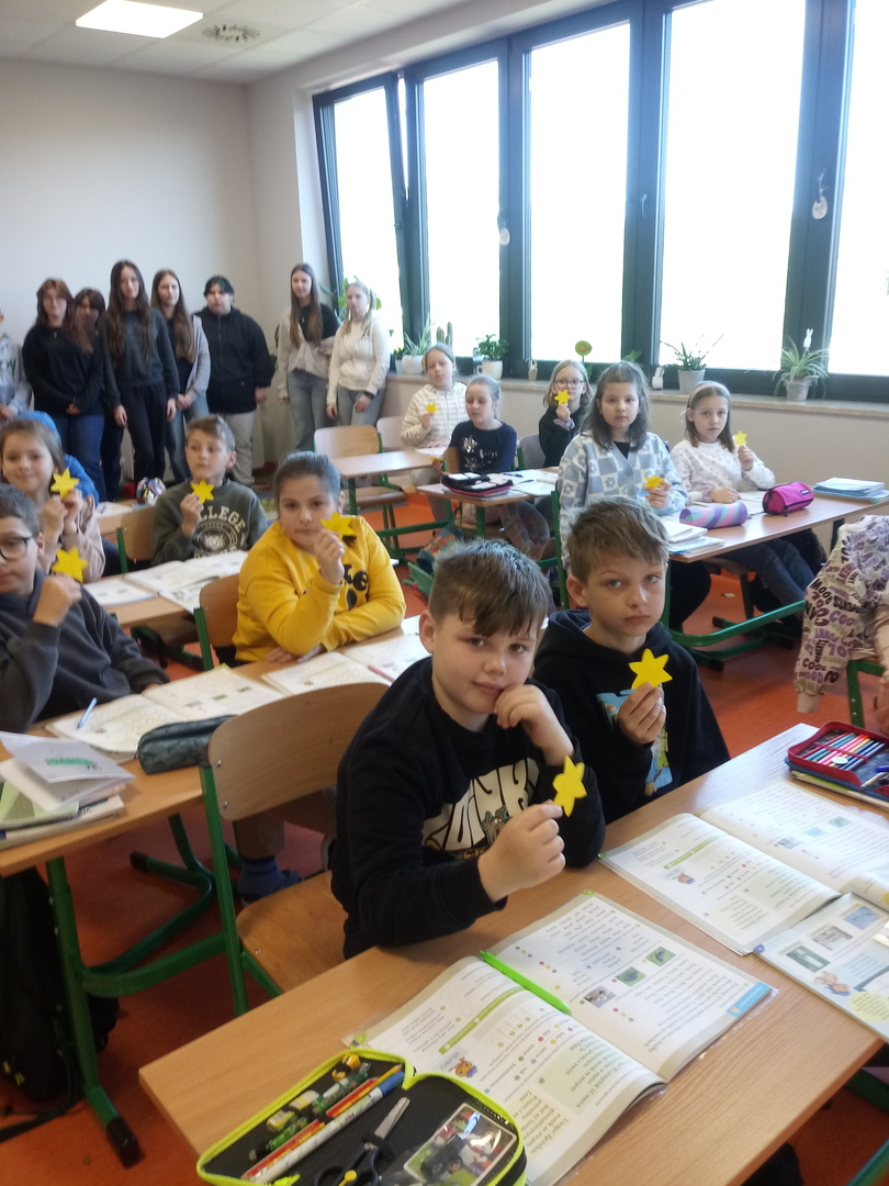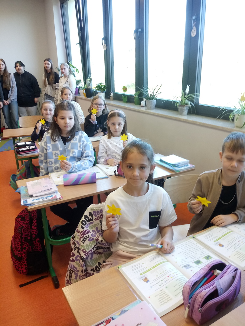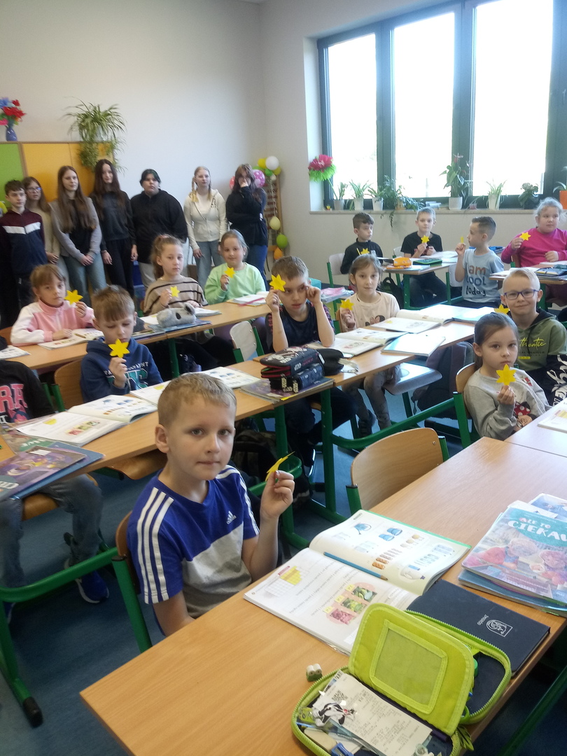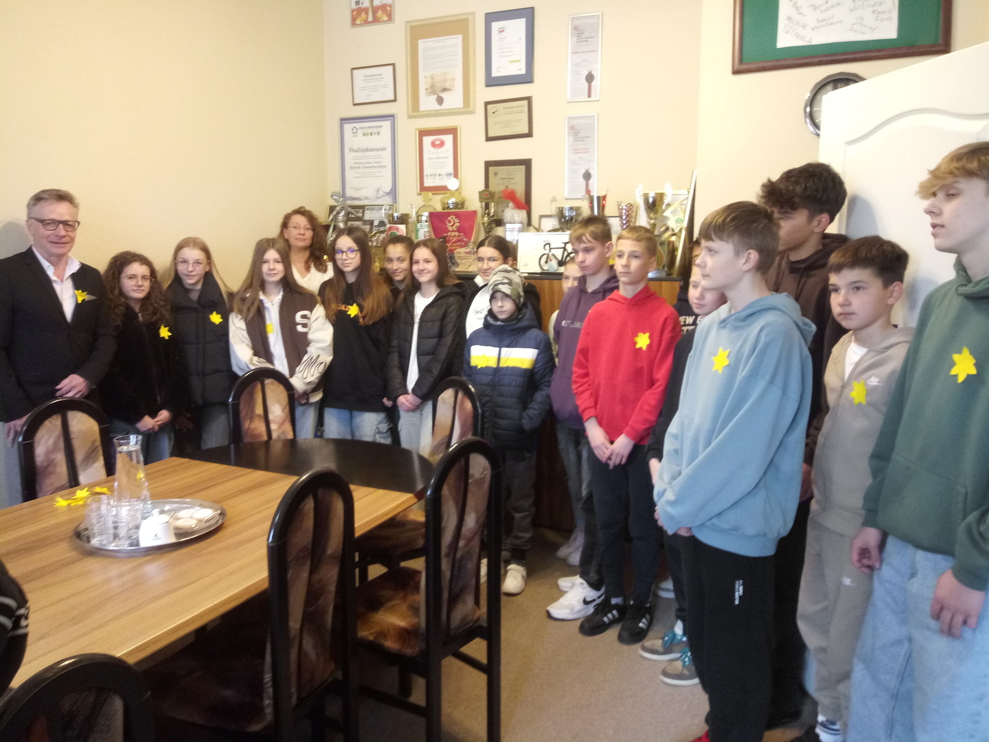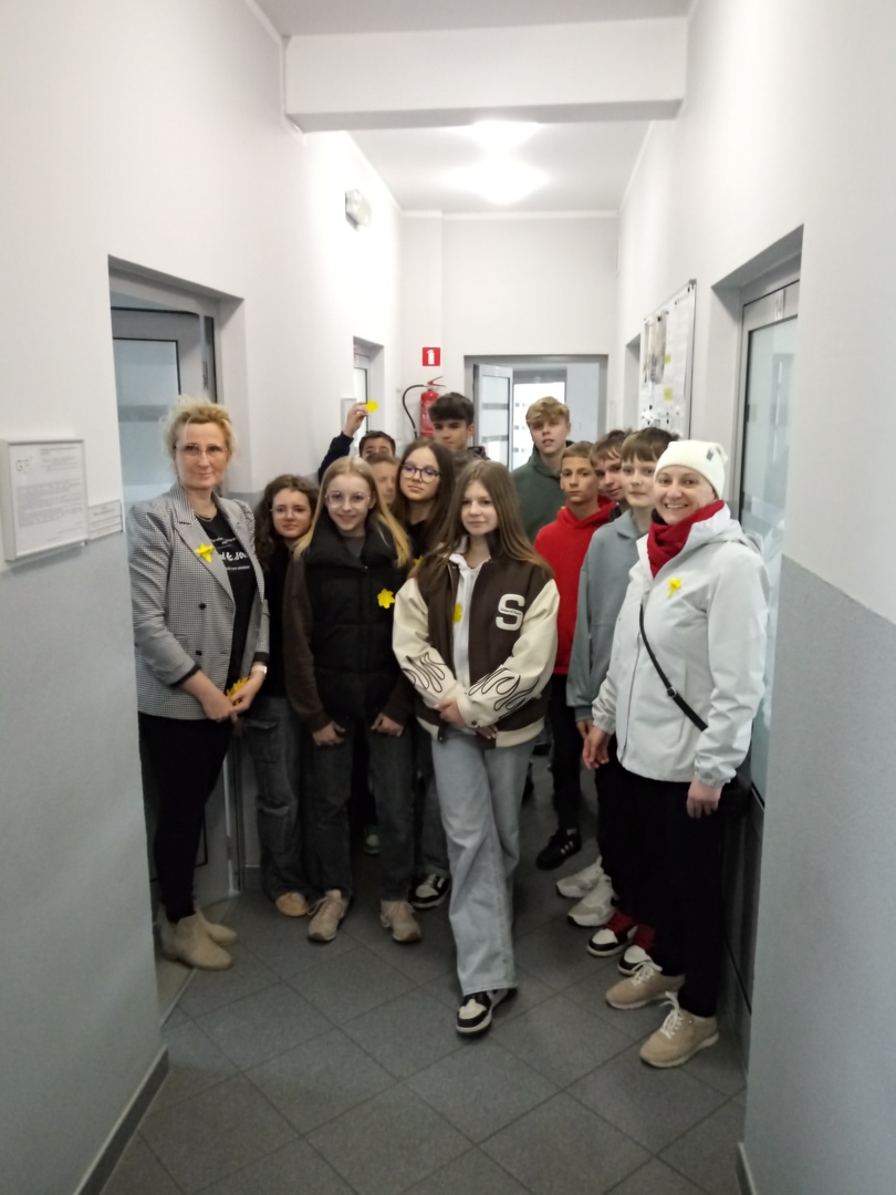 Wolontariusze przygotowali dla całej społeczności żonkile, odwiedzili również Miejską Biblioteką, Gminę i GOPS.