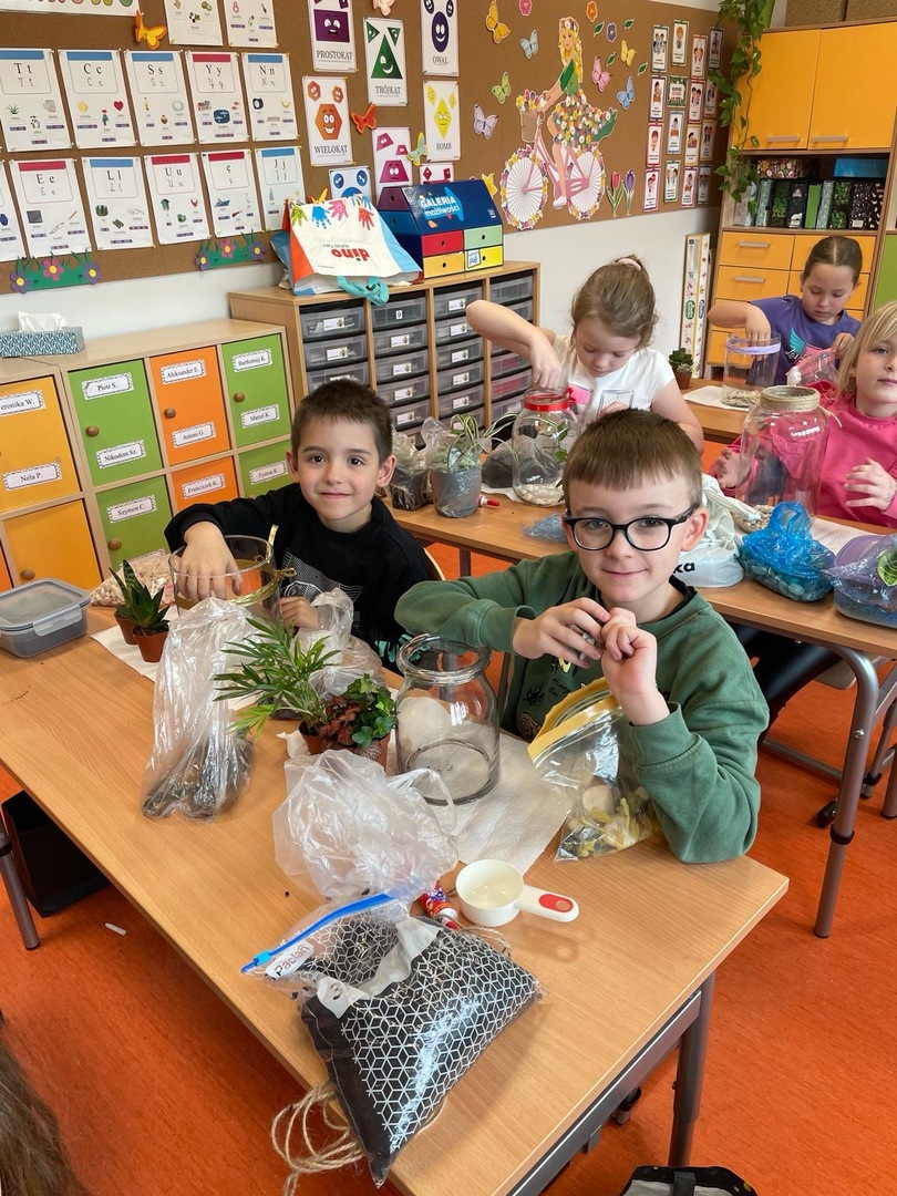 🌍 Dziś, w Dniu Ziemi, nasze małe eko-bohaterki i bohaterowie pokazują, jak wielką różnicę mogą zrobić małe ręce! 🌱 Dzieci z klasy „0”, 1b i 1c z wielkim zaangażowaniem wzięły udział w przeróżnych działaniach na rzecz ochrony środowiska. Od sadzenia roślin, przez zbieranie śmieci w parkach, po projekty recyklingowe - każde działanie ma znaczenie.
