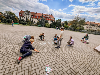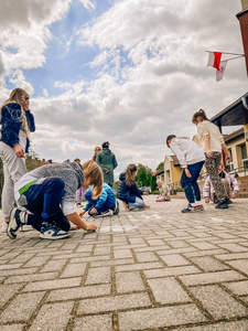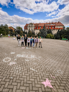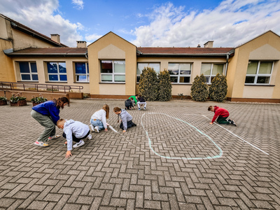 W ramach obchodów Światowego Dnia Świadomości Autyzmu oraz Miesiąca Wiedzy na Temat Autyzmu w szkole przez cały kwiecień odbywały się różnorodne działania sportowo-edukacyjne. Klasa 5b aby podkleślić jak ważna jest wzajemna akceptacja i szacunek nie tylko do osób z autyzmem ale także np. młodszych do starszych czy odwrotnie, postanowiła zaprosić klasę 3a na wspólne malowanie kredą. Klasy podzieliły się na mieszane grupy, które na boisku szkolnym stworzyły wielkie kolorowe napisy ćwicząc przy tym język niemiecki. Pogoda nam dopisała i zabawy było co nie miara. Cel zajęc został osiągnięty w 100%. Uczestnicy stworzyli wspaniałe grupy, działające razem bez względu na jakiekolwiek różnice.