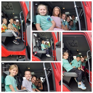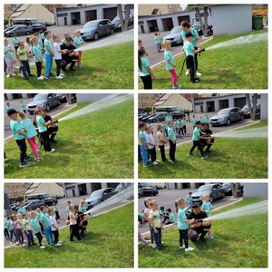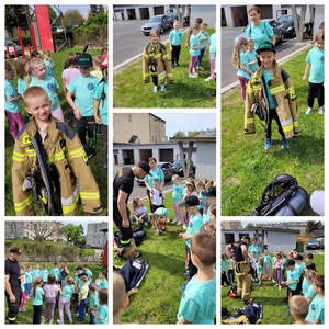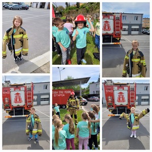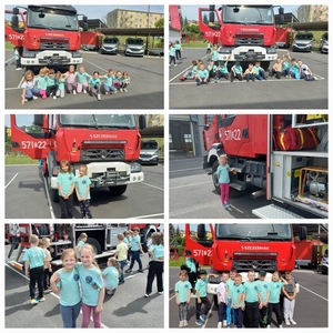 Następnie dzieci miały okazję obejrzeć quada oraz wóz gaśniczy 🚒 z całym wyposażeniem. Przez chwilę wszyscy uczestnicy wycieczki mogli poczuć się jak prawdziwi strażacy, przymierzając hełm czy wsiadając do wozu gaśniczego. Na koniec dzieci gorąco podziękowały funkcjonariuszom straży za miłe i pouczające zajęcia, które z całą pewnością na długo pozostaną w pamięci.👏