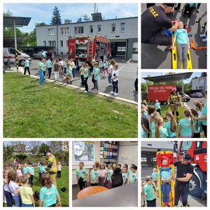 Dziś wybraliśmy się na wycieczkę do Komendy Powiatowej Państwowej Straży Pożarnej w Trzebnicy🏭 🚒, aby zapoznać się z tajnikami pracy strażaka 👨🚒