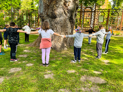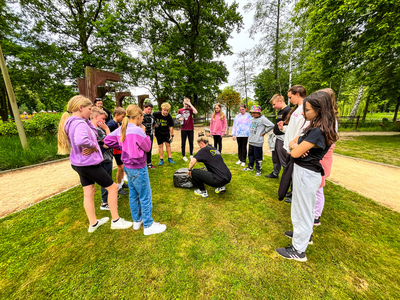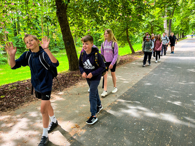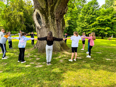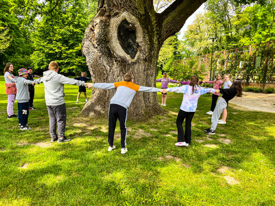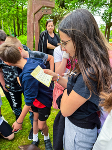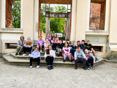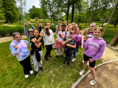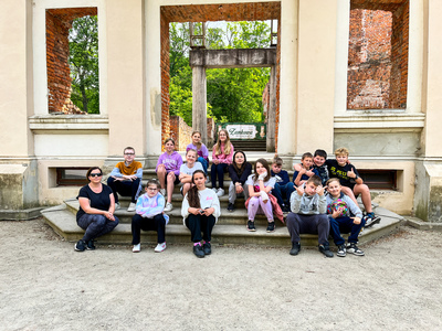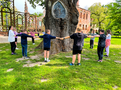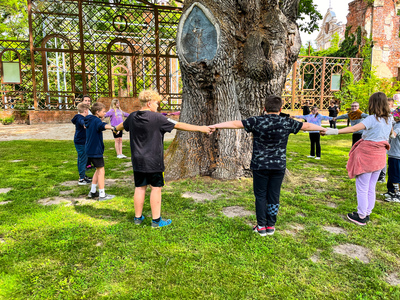 Zabawa na świeżym powietrzu sprawdzi się zawsze a szczególnie w tak pięknym dniu jak dziś. Słoneczko podgrzewało emocje podczas poszukiwania skarbów przez klasę 5b w naszym pięknym parku. Dziękujemy Informacja Turystyczna "Baszta" Żmigród za przemiłe oprowadzenie po parku i aktywna zabawę. Integracja przez zabawę najlepszy sposób na wspaniałe relacje.