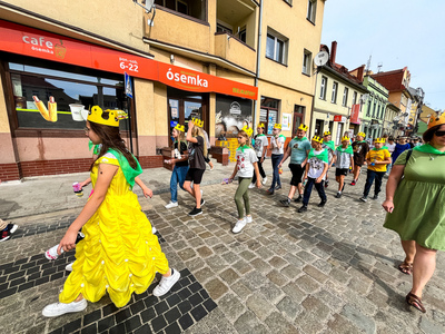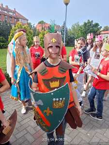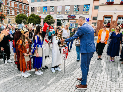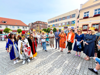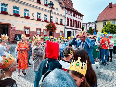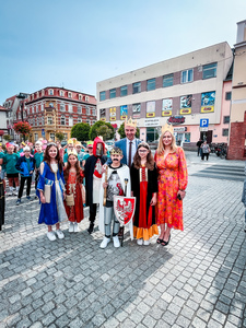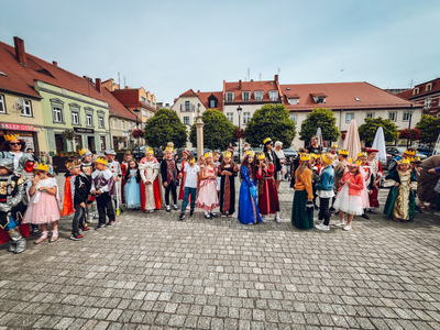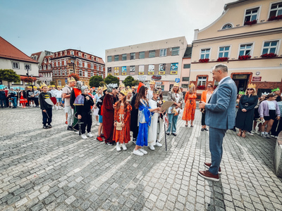 Tym sposobem mogliśmy zobaczyć naraz ponad 600 koronowanych głów. Uczniowie pięknie się wcielili w średniowieczne postaci-rycerzy, giermków, damy dworu, no i królów. Na rynek weszli z przytupem przy dźwięku werbli i trąbki.