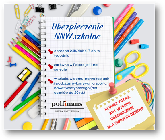 Wzorem poprzednich latach możecie ubezpieczyć dziecko w szkole. W roku szkolnym 2024/2025 składka na ubezpieczenie ucznia wynosi 60 zł. Płatności będzie można dokonywać w sekretariacie szkoły (ul. H. Sienkiewicza 6) do dnia 15.10.2024 r. W załączniku znajdą Państwo informacje dotyczące warunków ubezpieczenia.