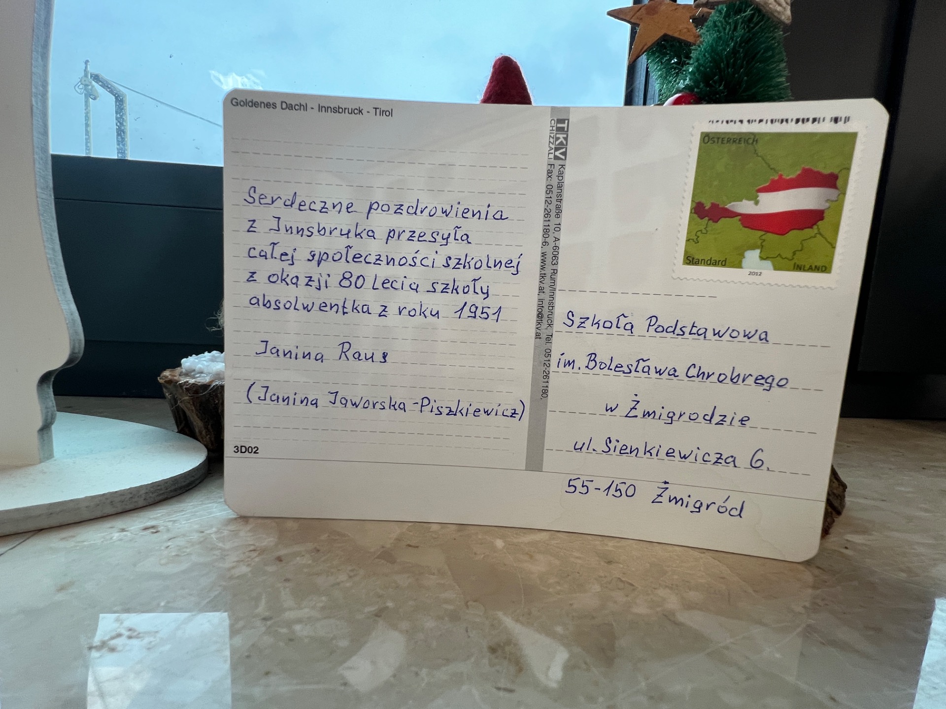 Dziś chcemy podzielić się czymś absolutnie wyjątkowym – otrzymaliśmy pocztówkę od naszej absolwentki, która ukończyła szkołę w 1951 roku! 🌟 Jej słowa przypominają nam, jak głęboko zapadają w serca wspomnienia szkolnych lat i jak wielką rodziną są nasi absolwenci.