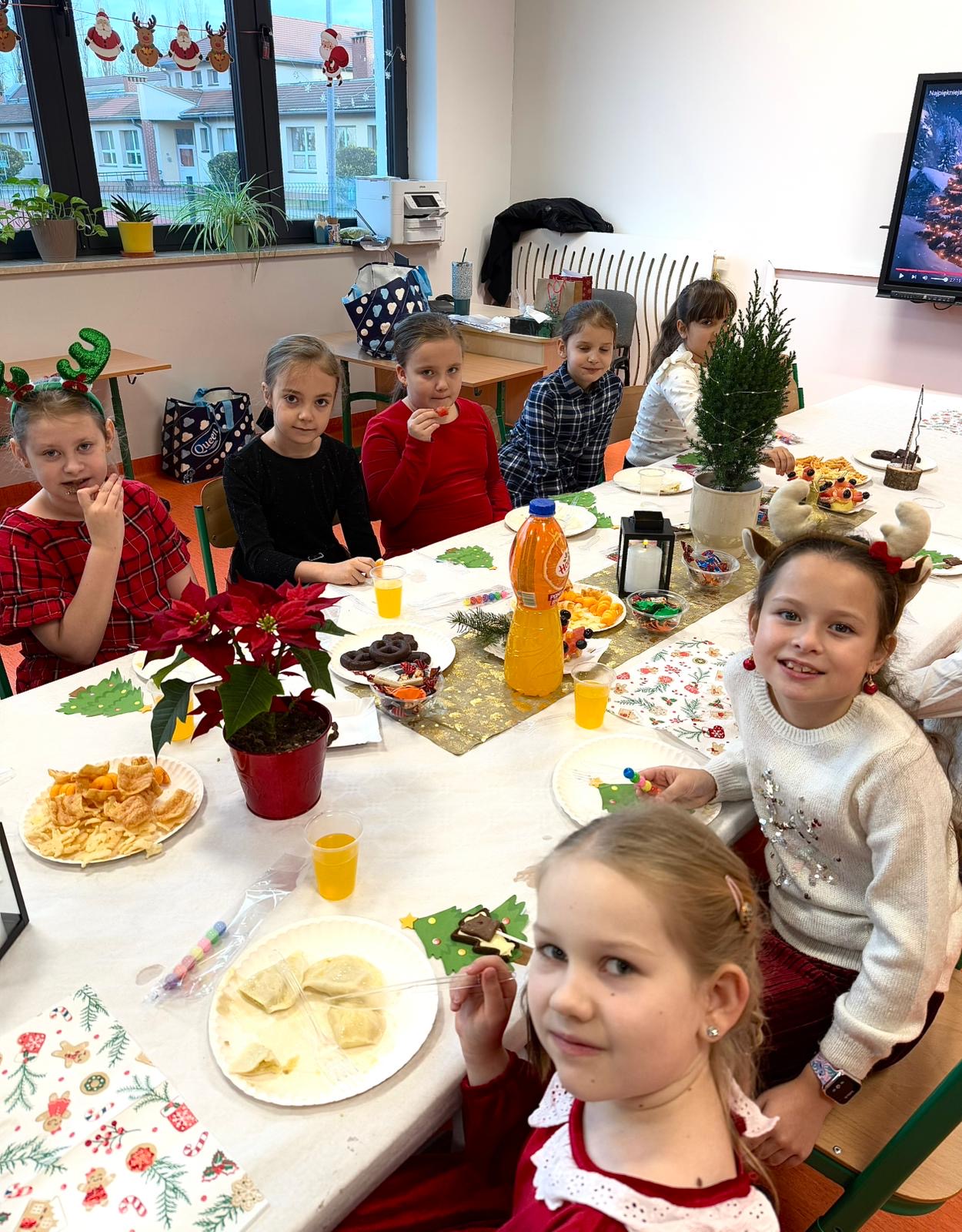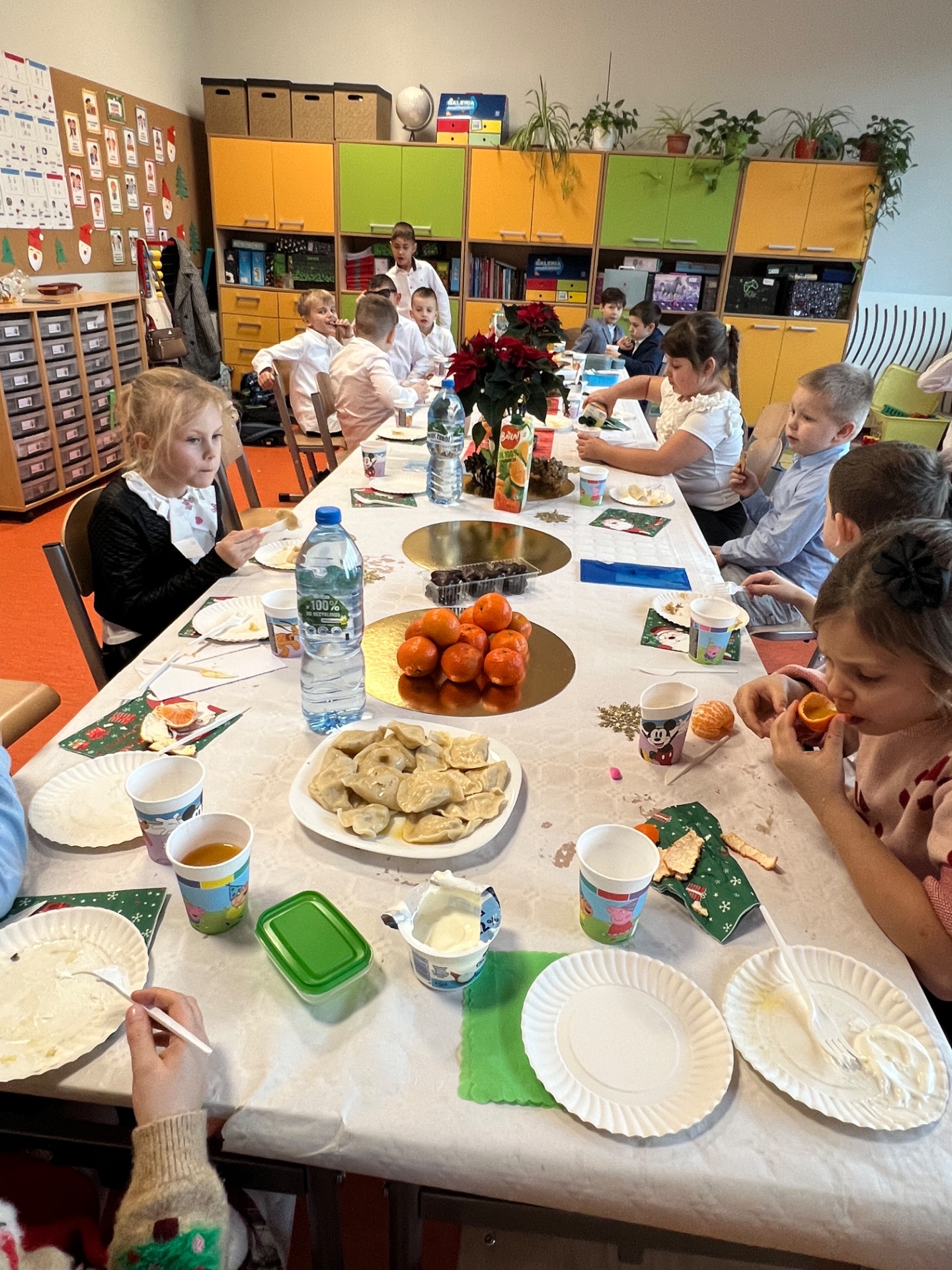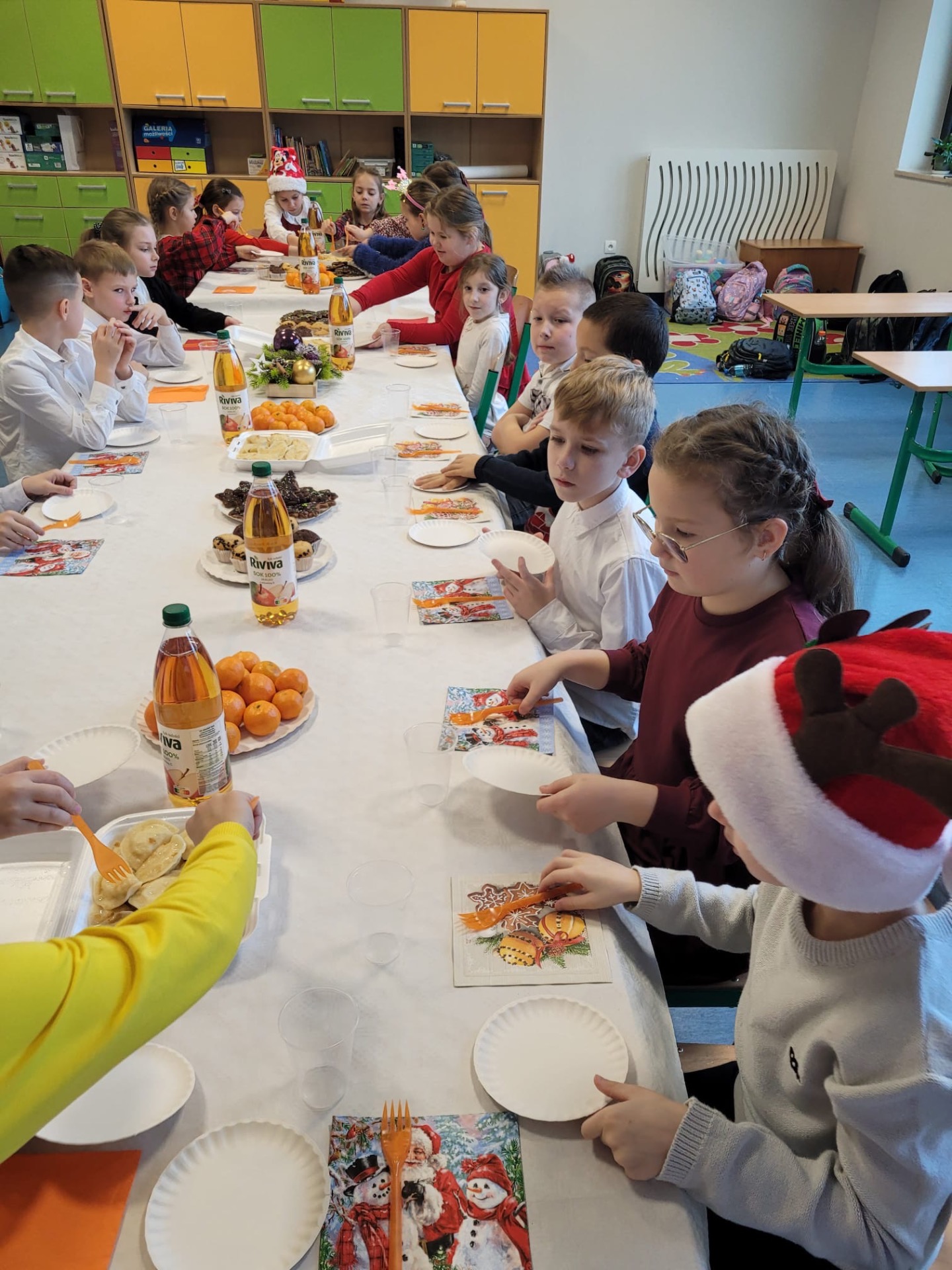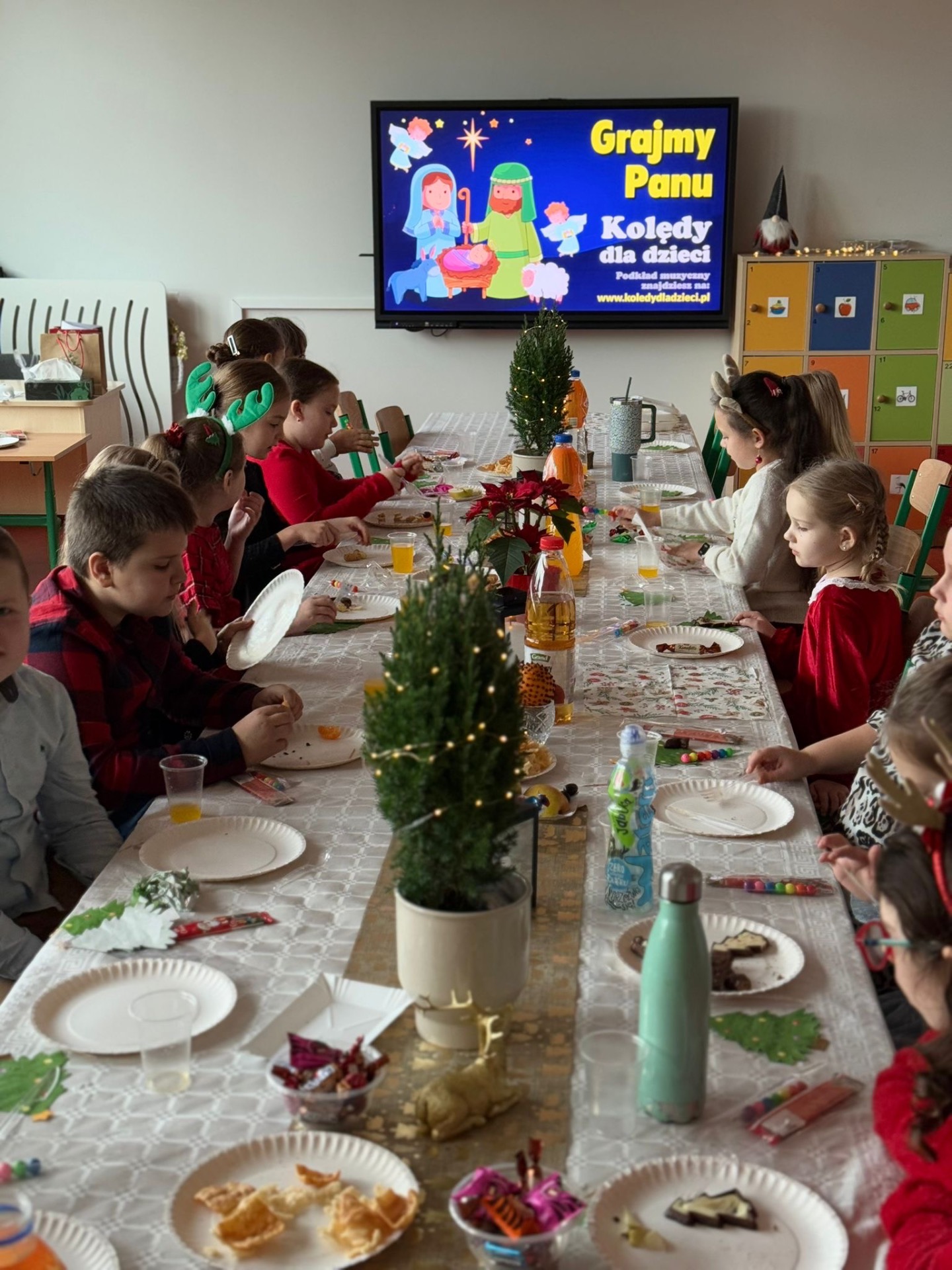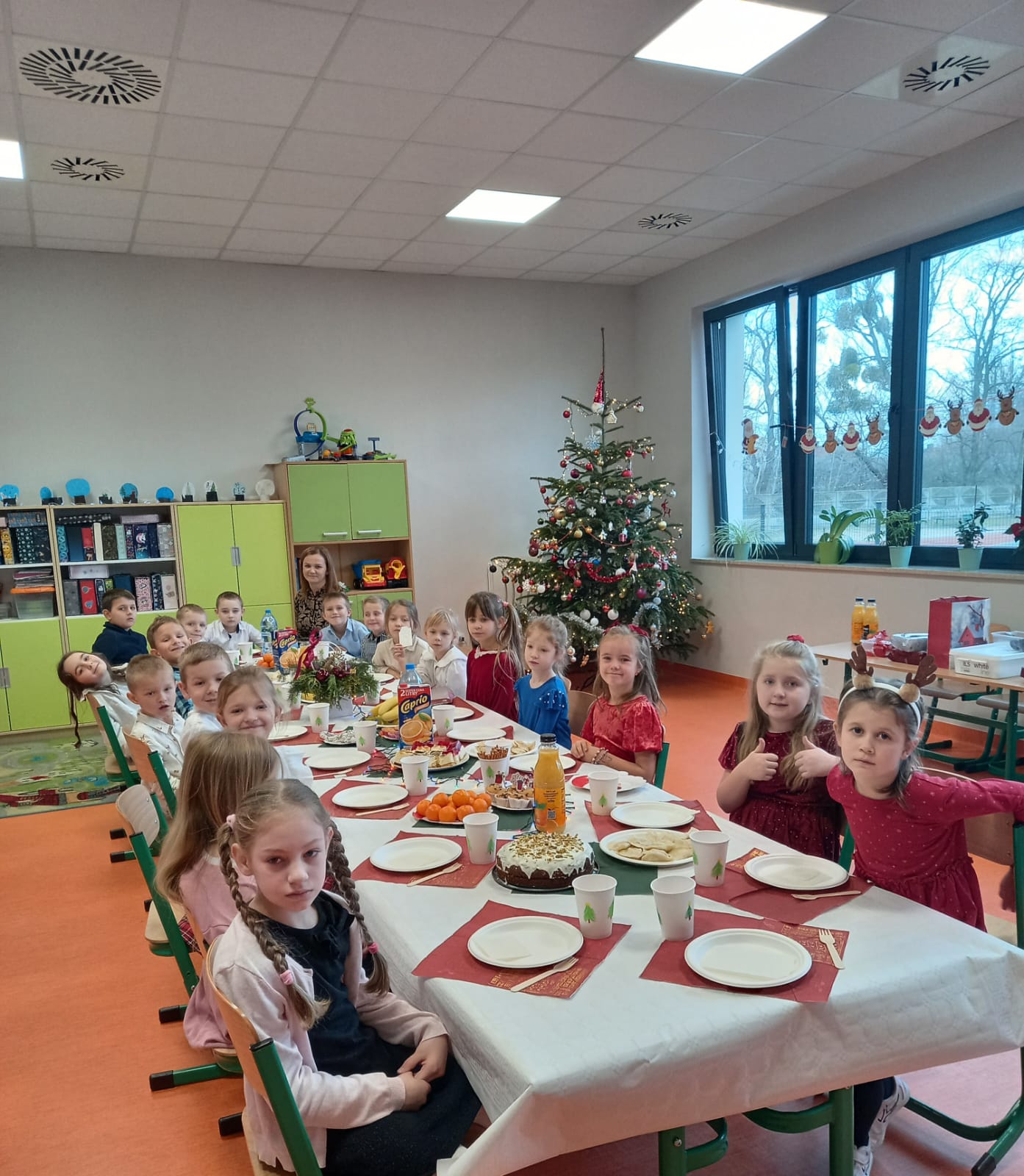 Dzieci wspólnie kolędowały, dzieliły się opłatkiem, a także składały sobie najpiękniejsze życzenia na zbliżające się Święta Bożego Narodzenia. 🌟🍪 Nie zabrakło również świątecznych dekoracji, pysznych smakołyków i chwil, które na długo pozostaną w naszej pamięci.
