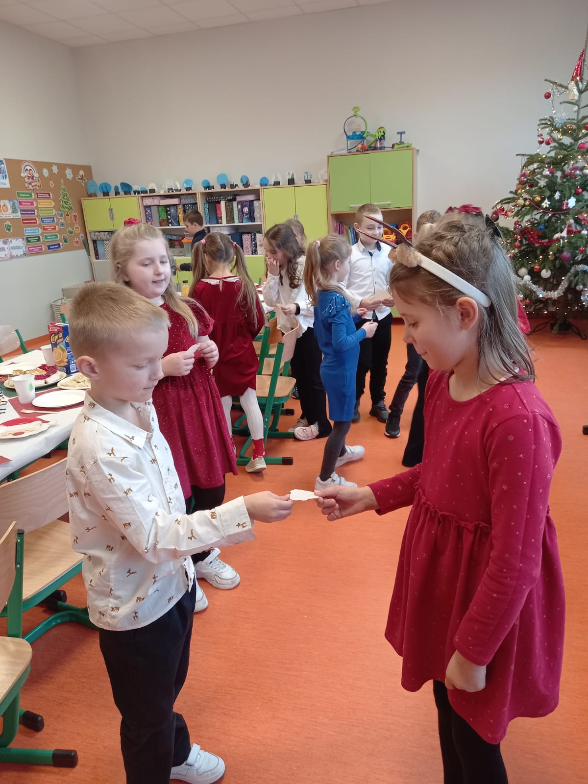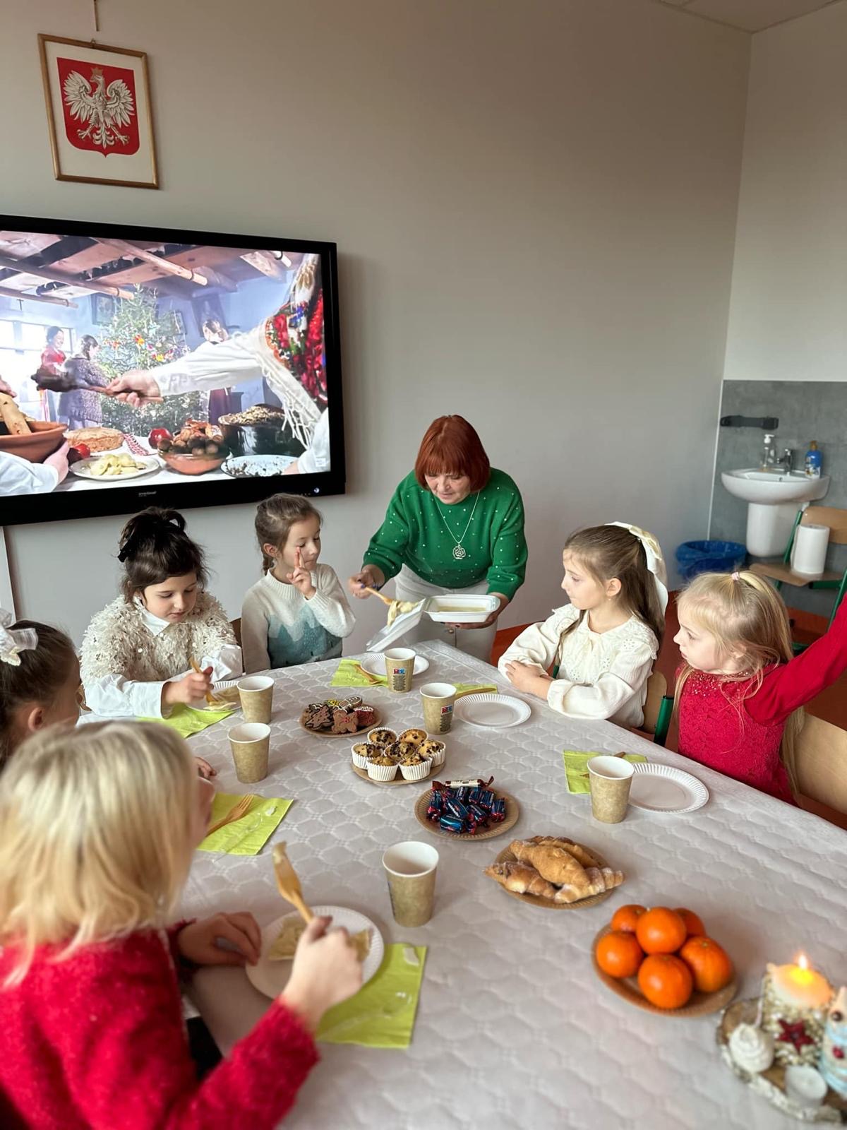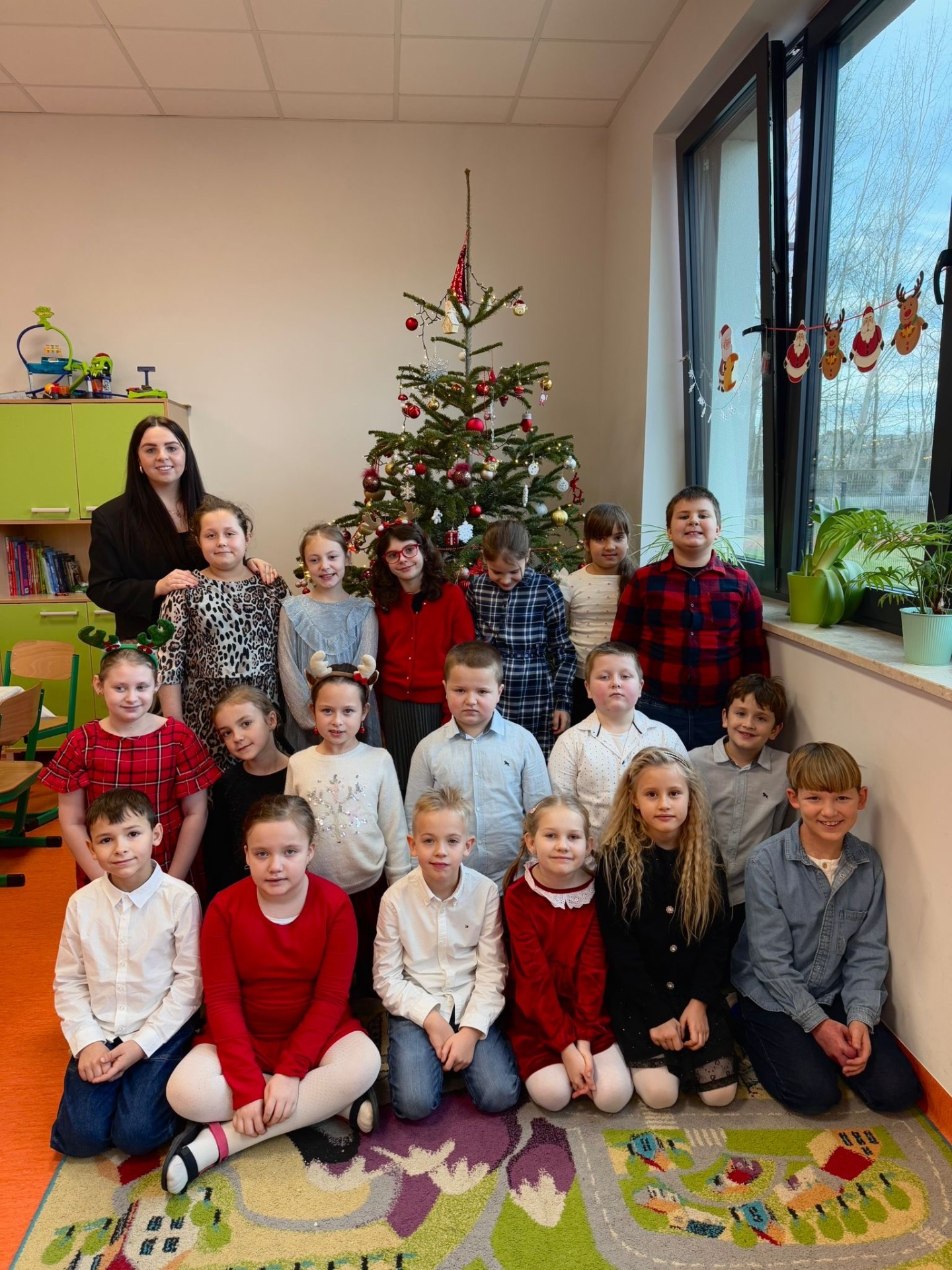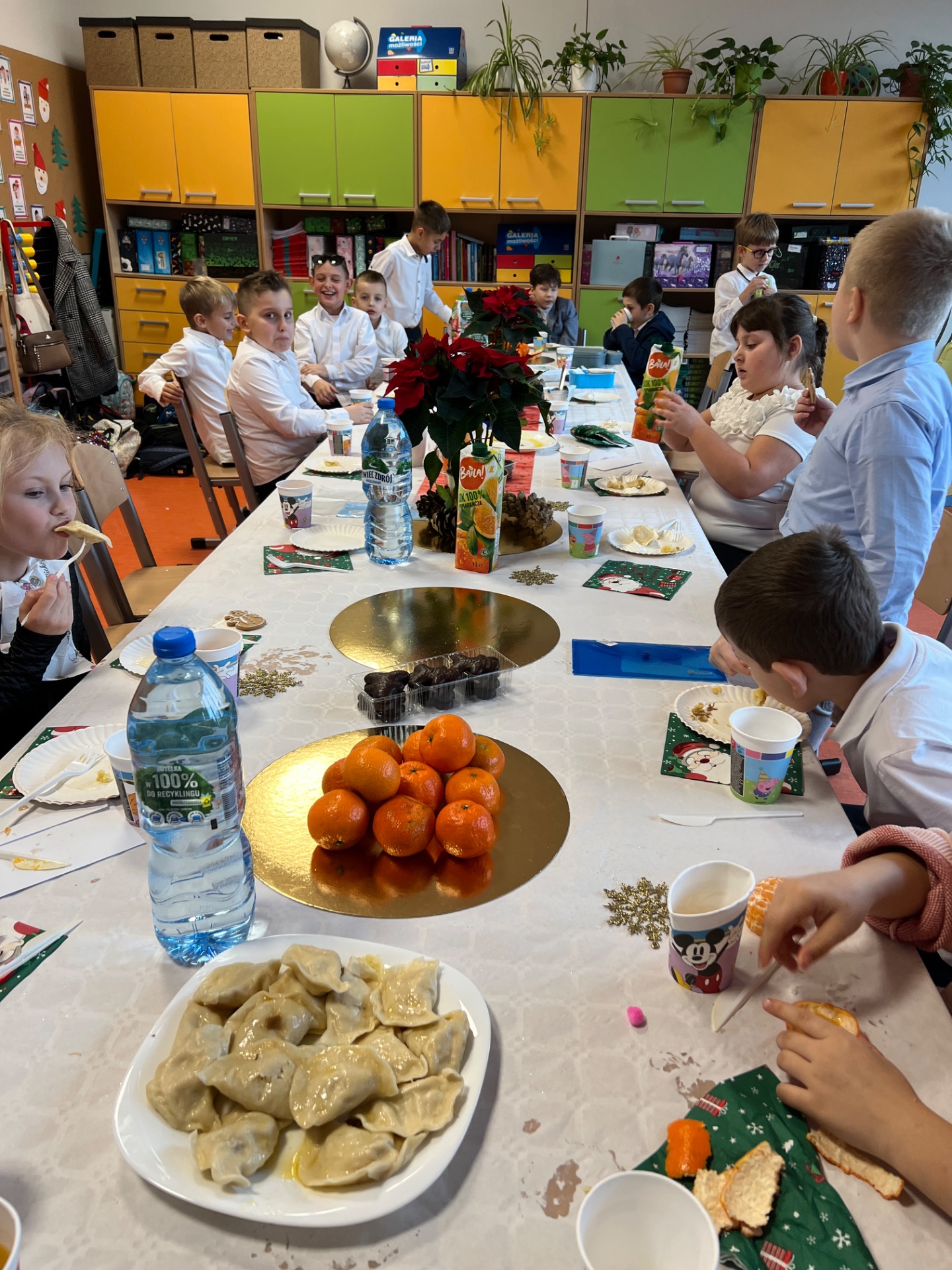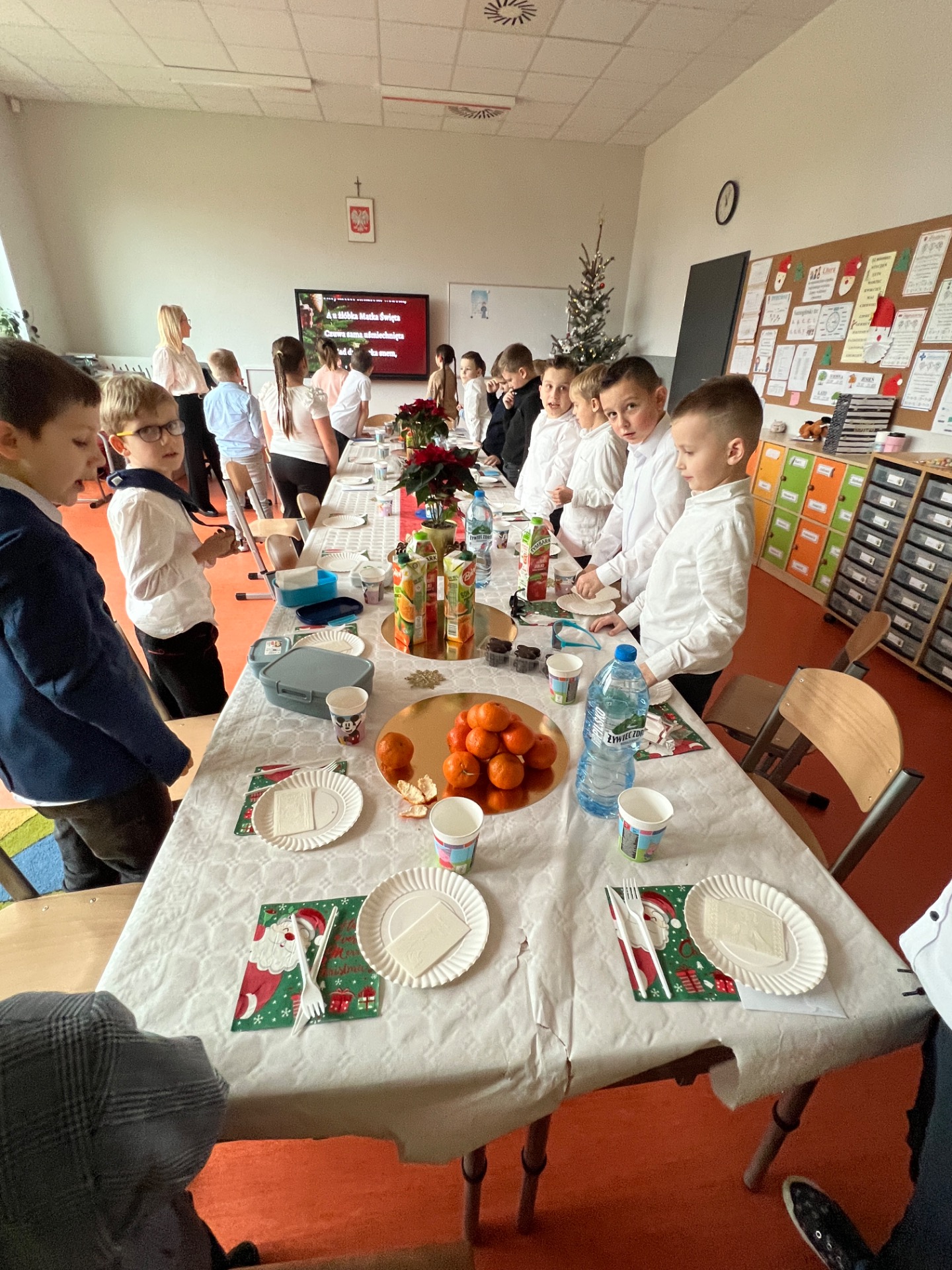 Dzieci wspólnie kolędowały, dzieliły się opłatkiem, a także składały sobie najpiękniejsze życzenia na zbliżające się Święta Bożego Narodzenia. 🌟🍪 Nie zabrakło również świątecznych dekoracji, pysznych smakołyków i chwil, które na długo pozostaną w naszej pamięci.