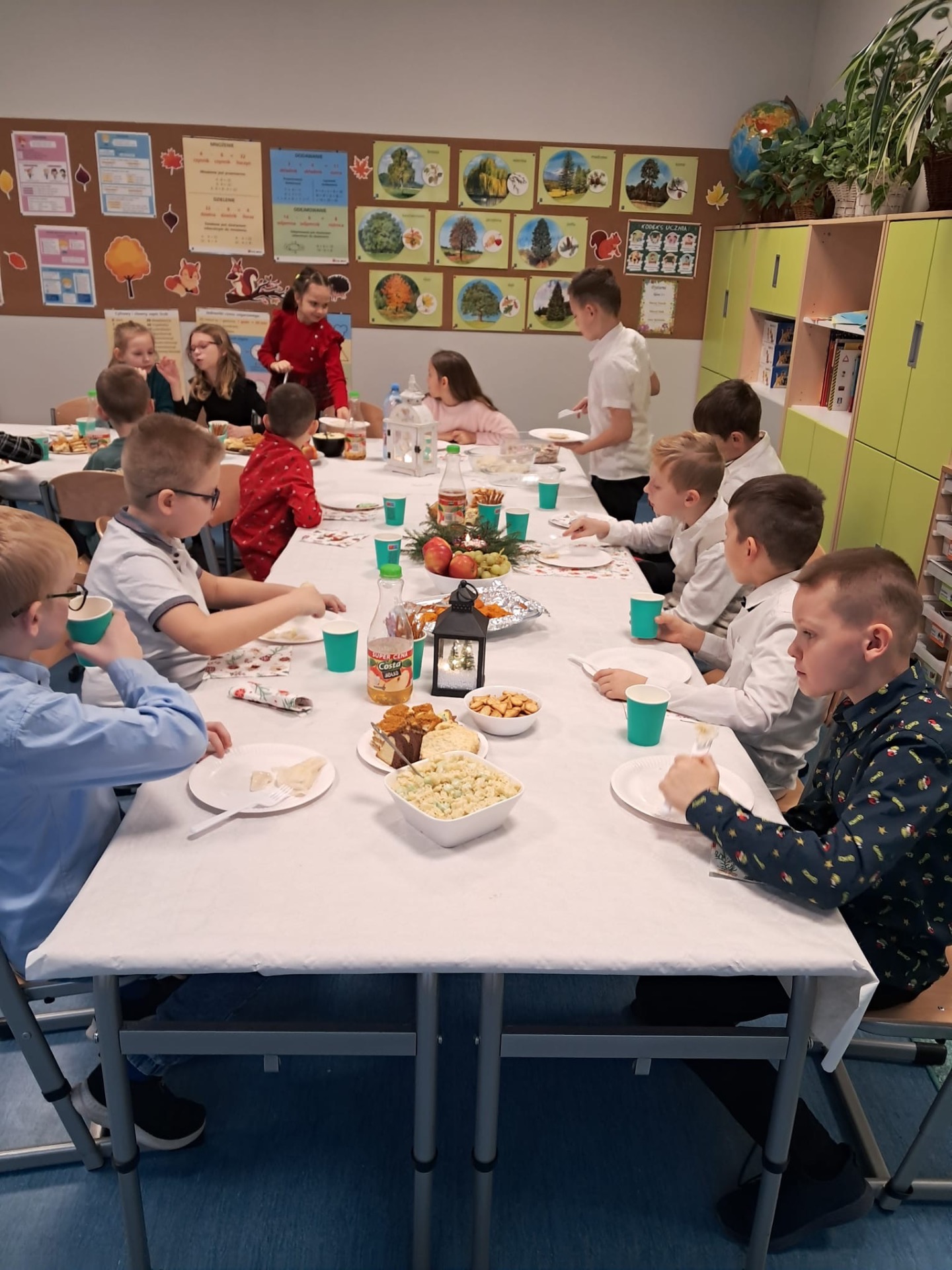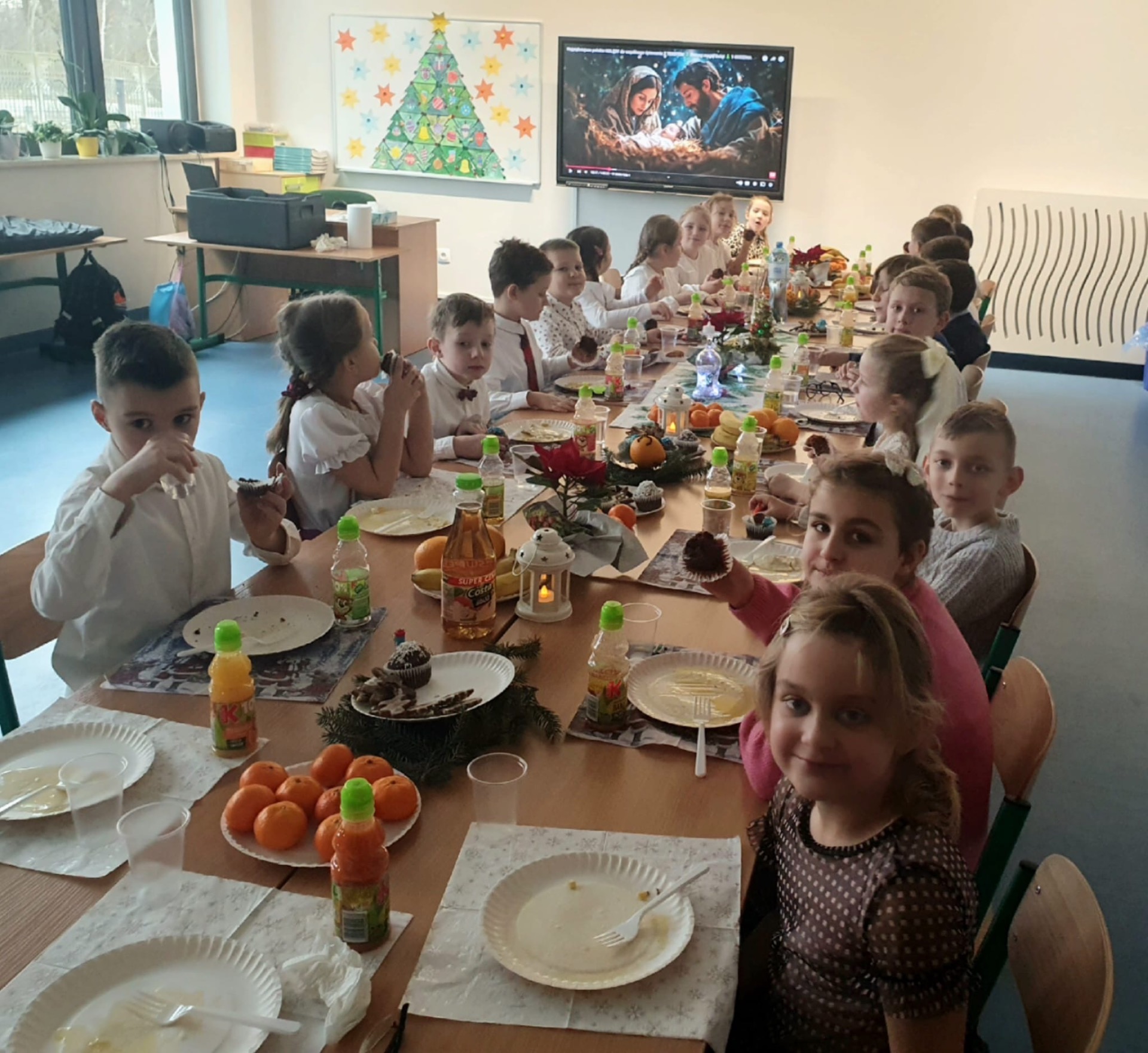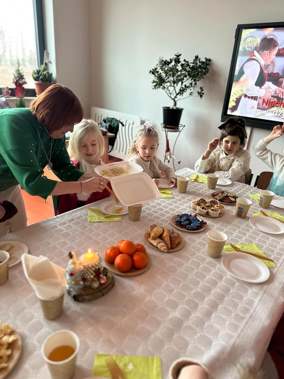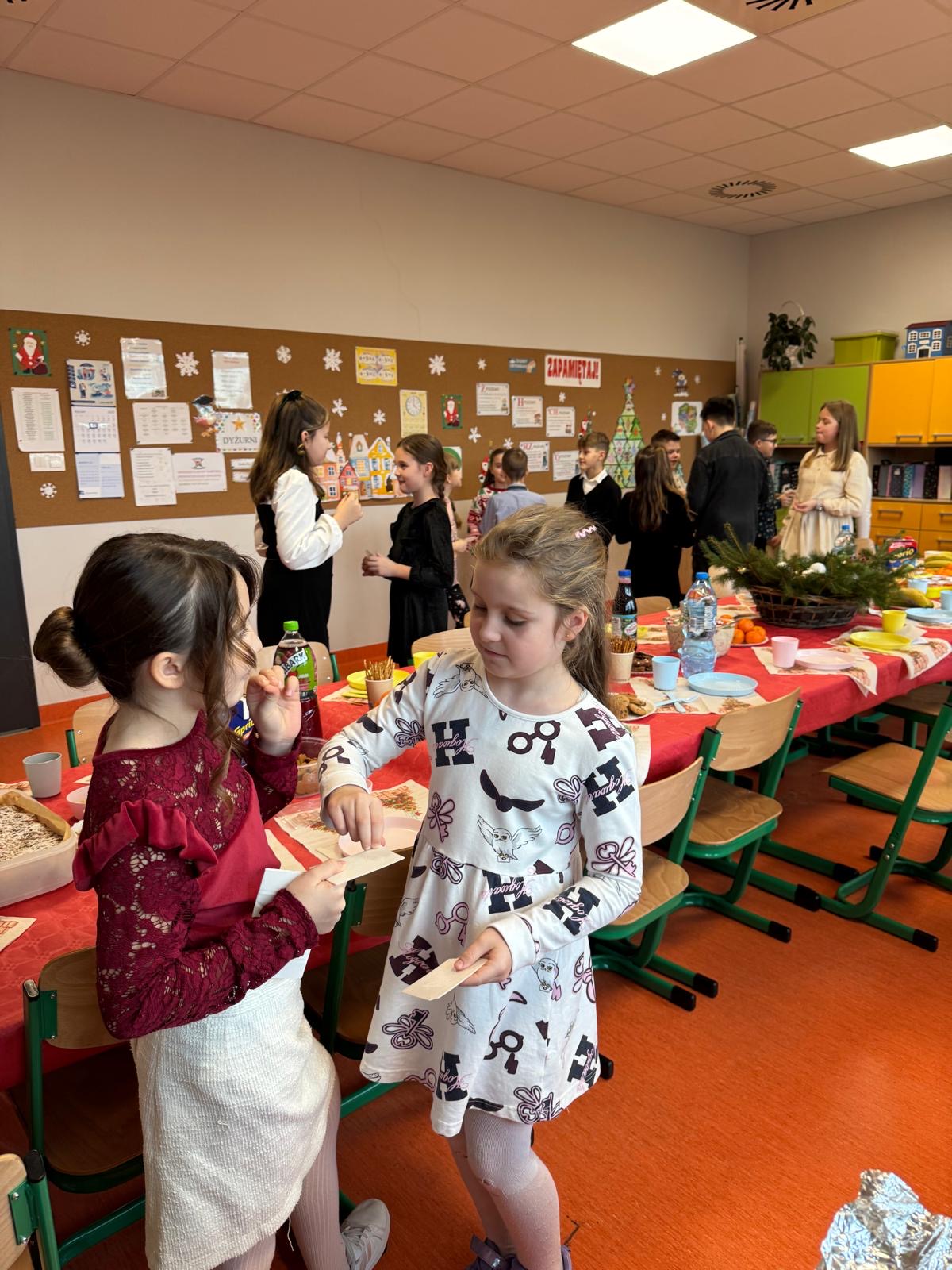 Dzieci wspólnie kolędowały, dzieliły się opłatkiem, a także składały sobie najpiękniejsze życzenia na zbliżające się Święta Bożego Narodzenia. 🌟🍪 Nie zabrakło również świątecznych dekoracji, pysznych smakołyków i chwil, które na długo pozostaną w naszej pamięci.
