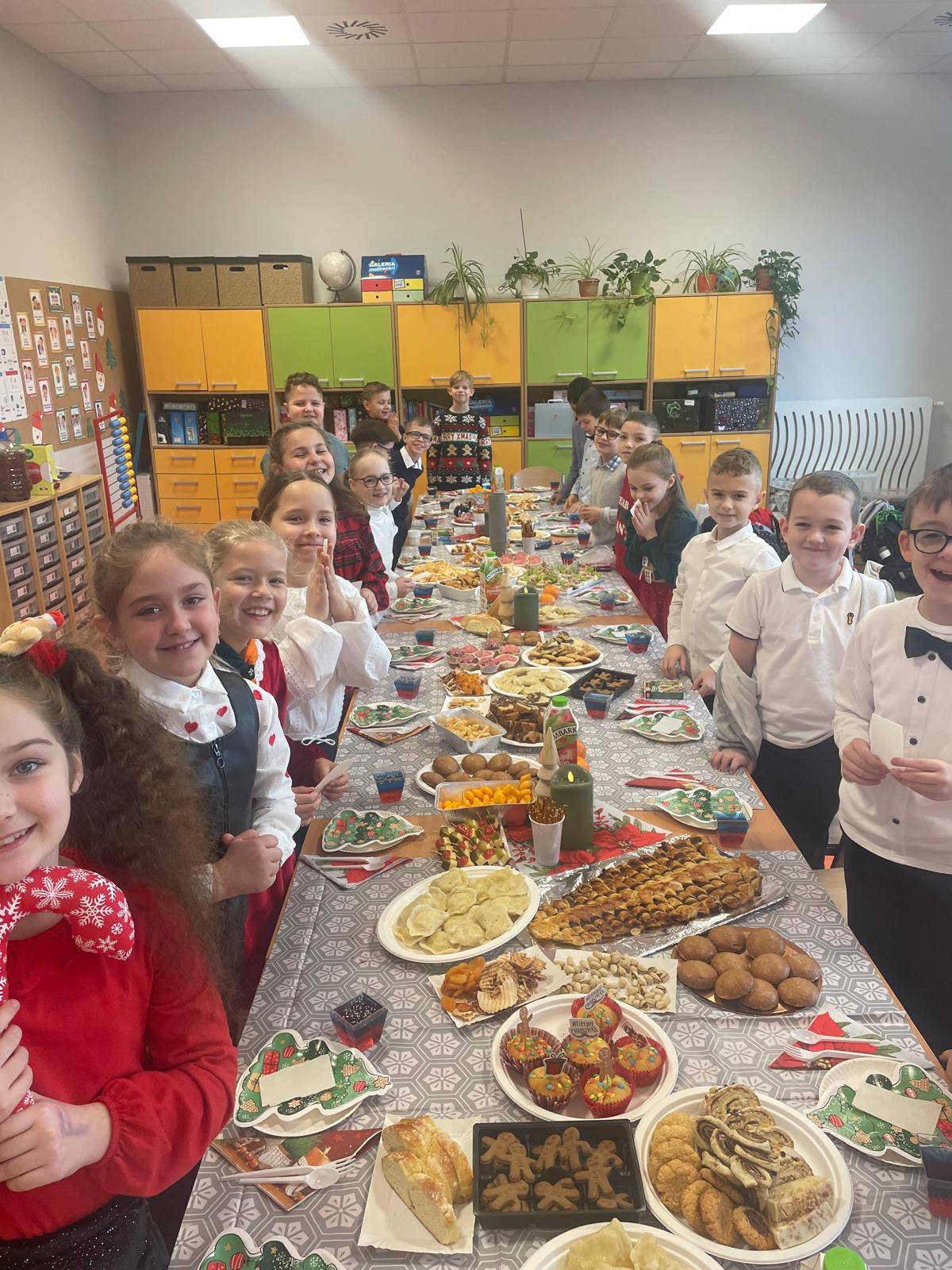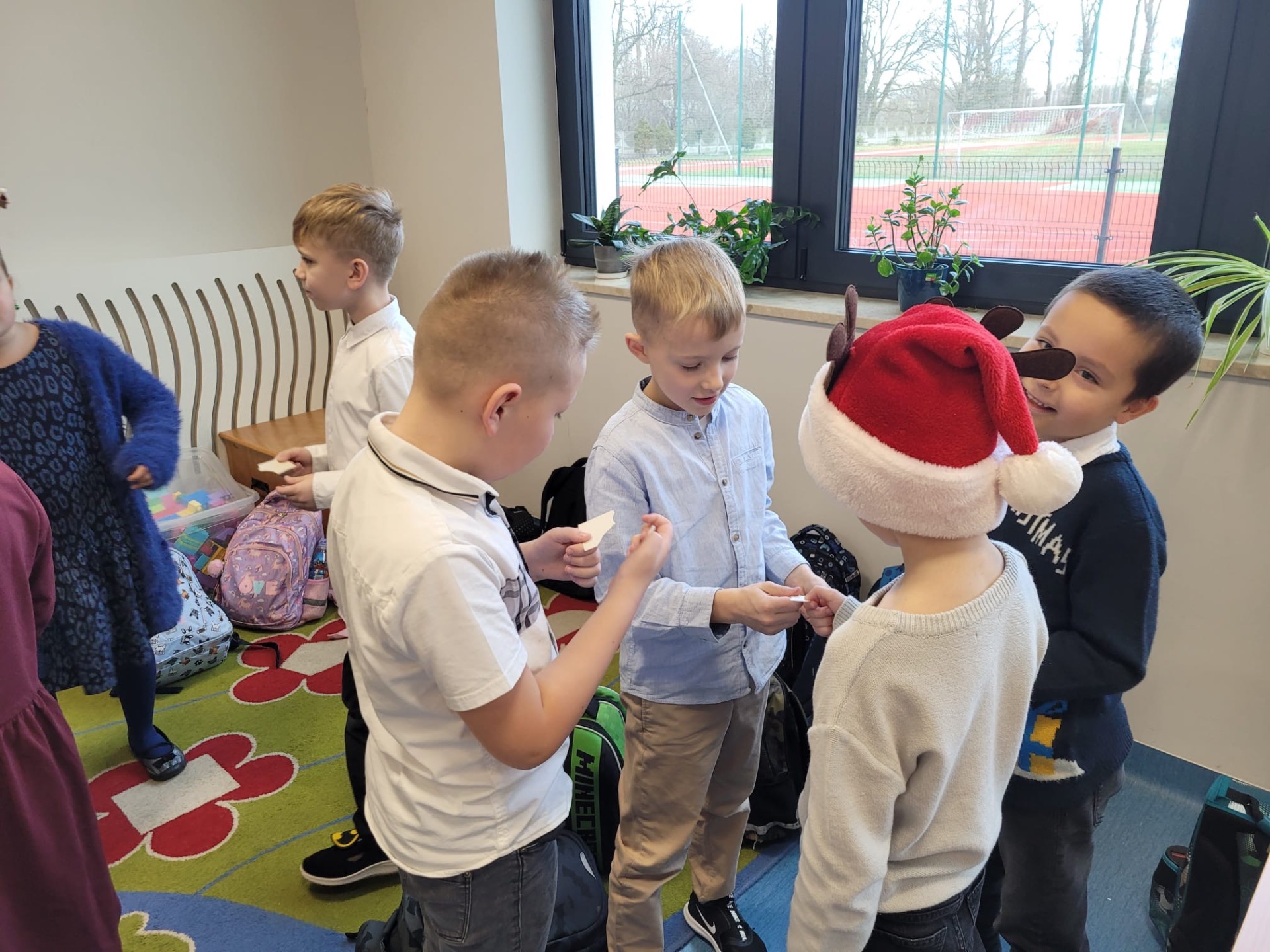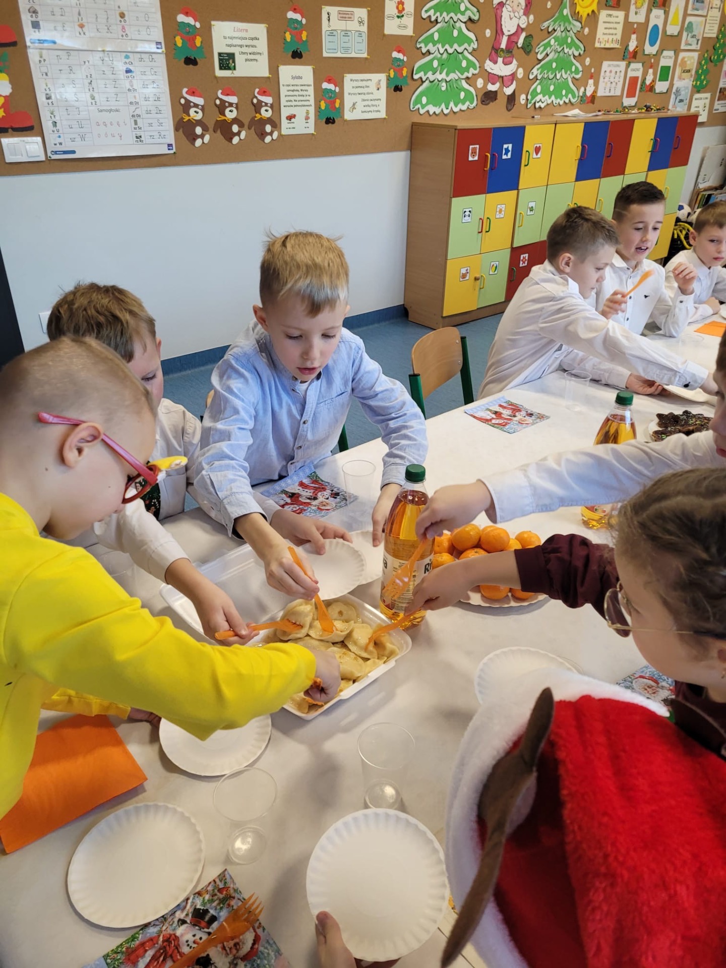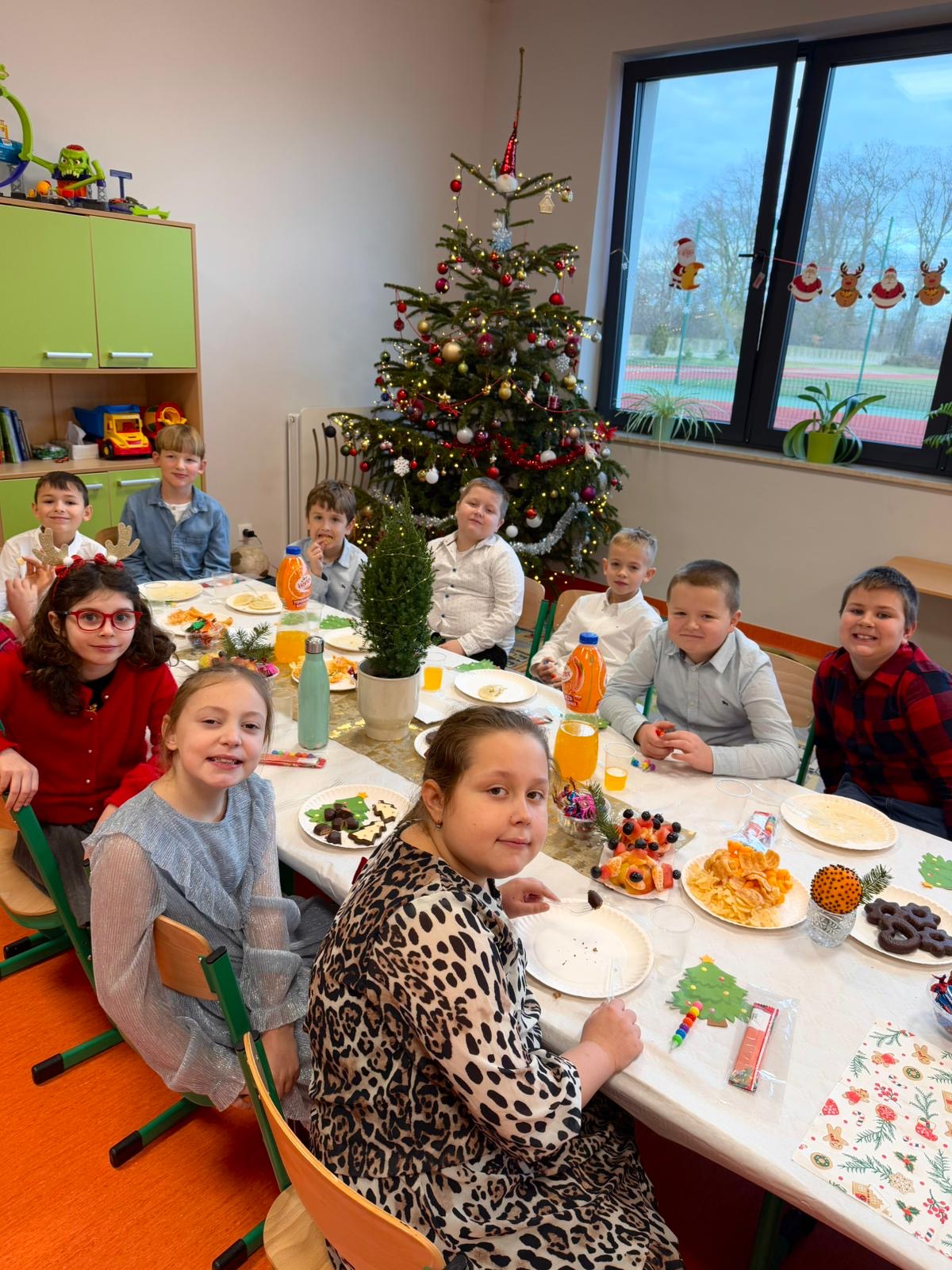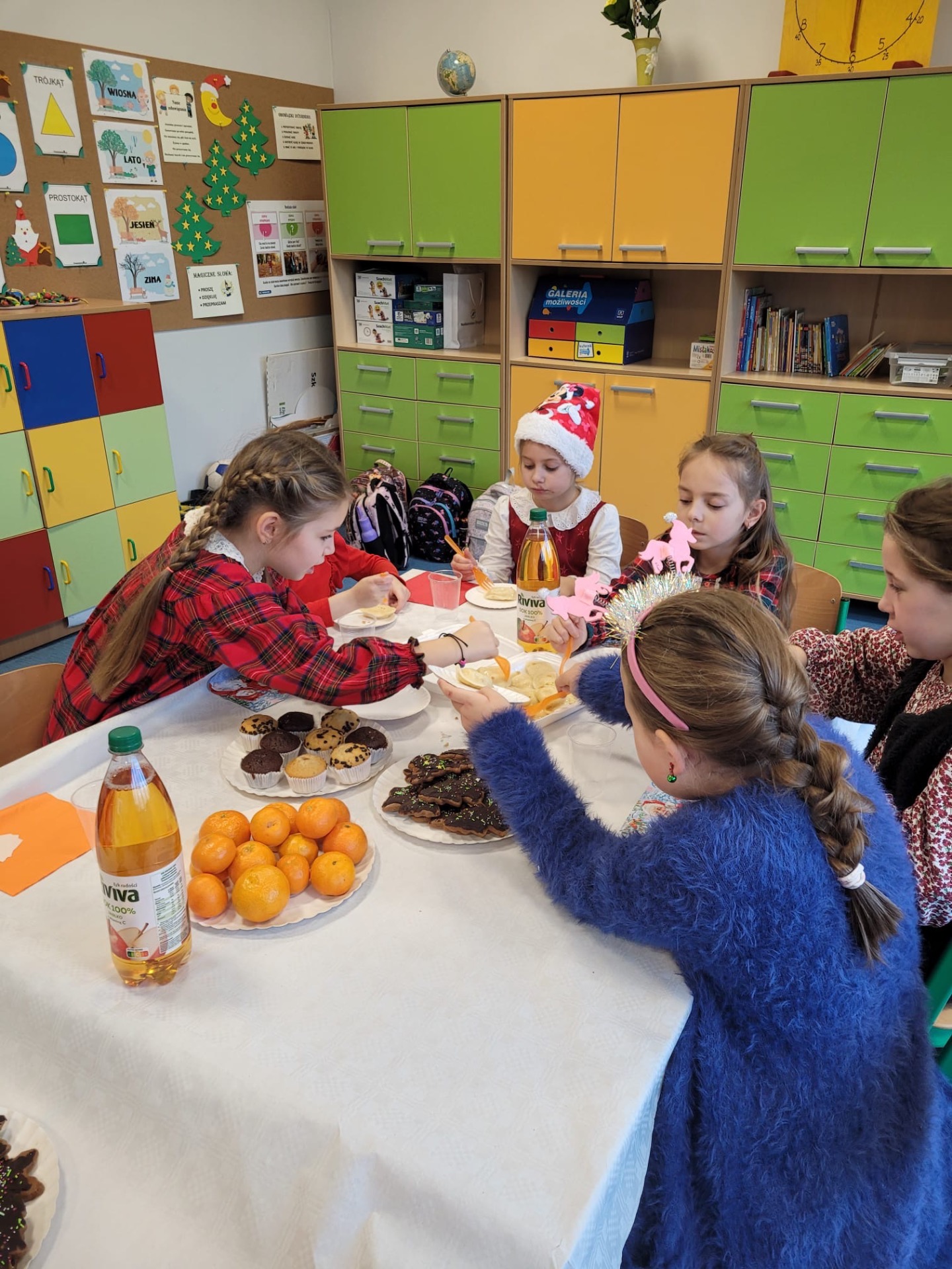 Dzieci wspólnie kolędowały, dzieliły się opłatkiem, a także składały sobie najpiękniejsze życzenia na zbliżające się Święta Bożego Narodzenia. 🌟🍪 Nie zabrakło również świątecznych dekoracji, pysznych smakołyków i chwil, które na długo pozostaną w naszej pamięci.