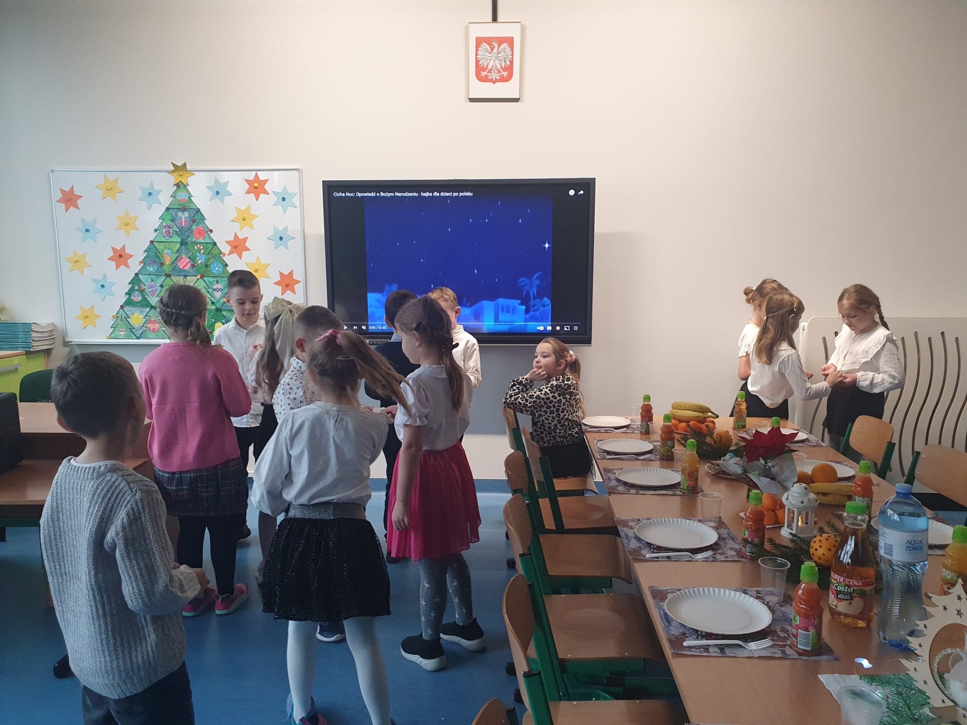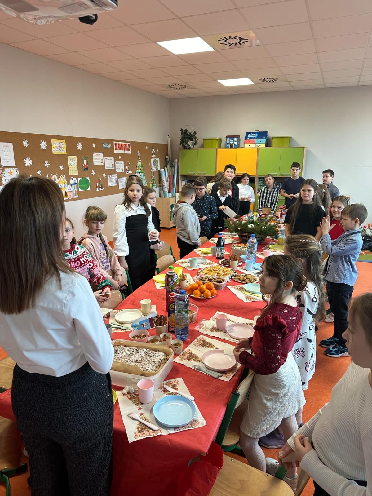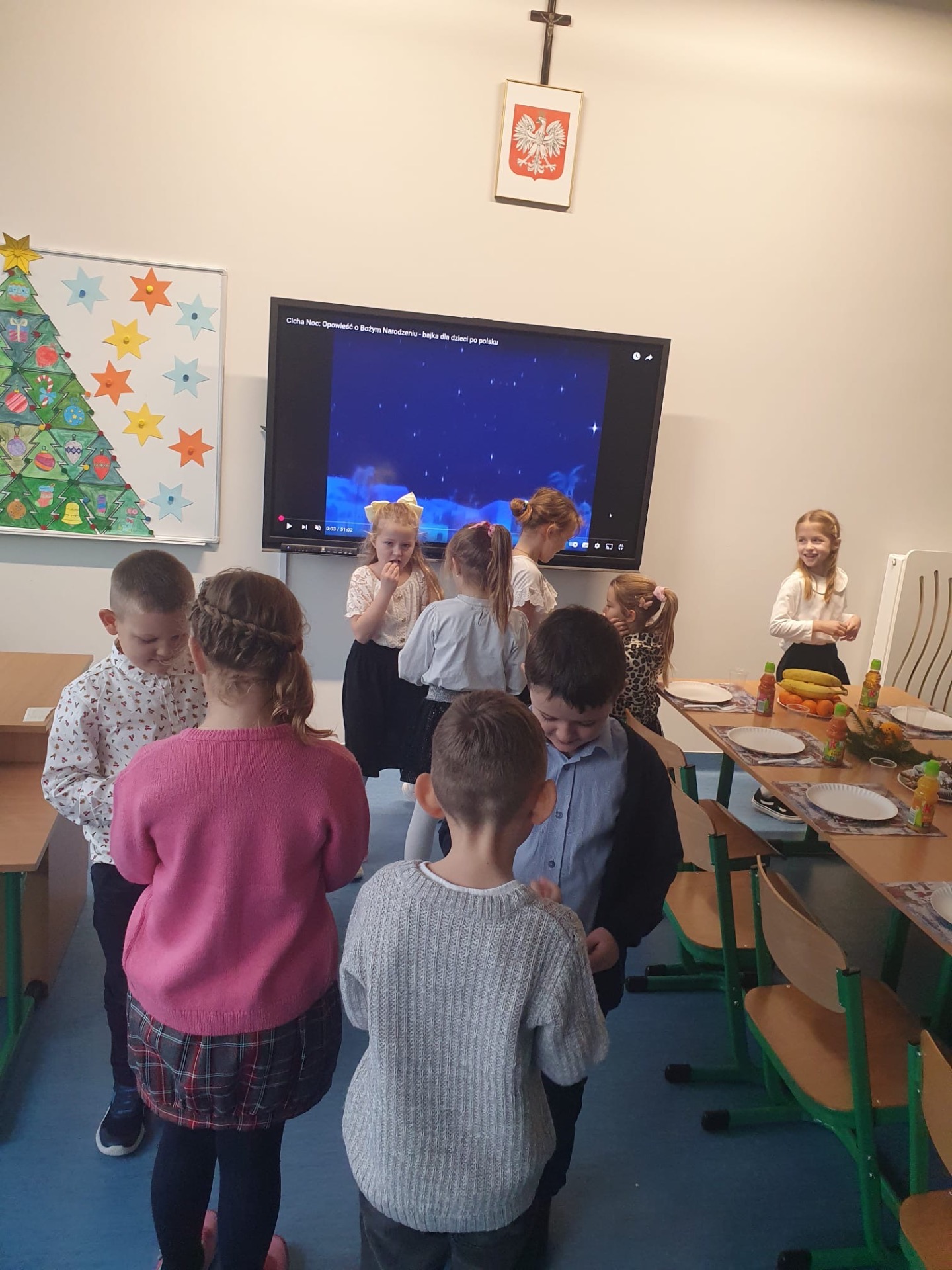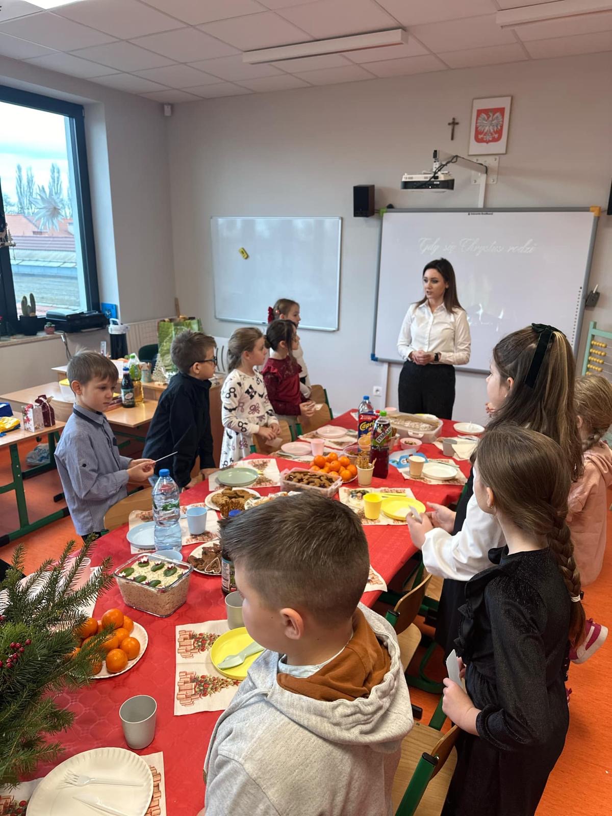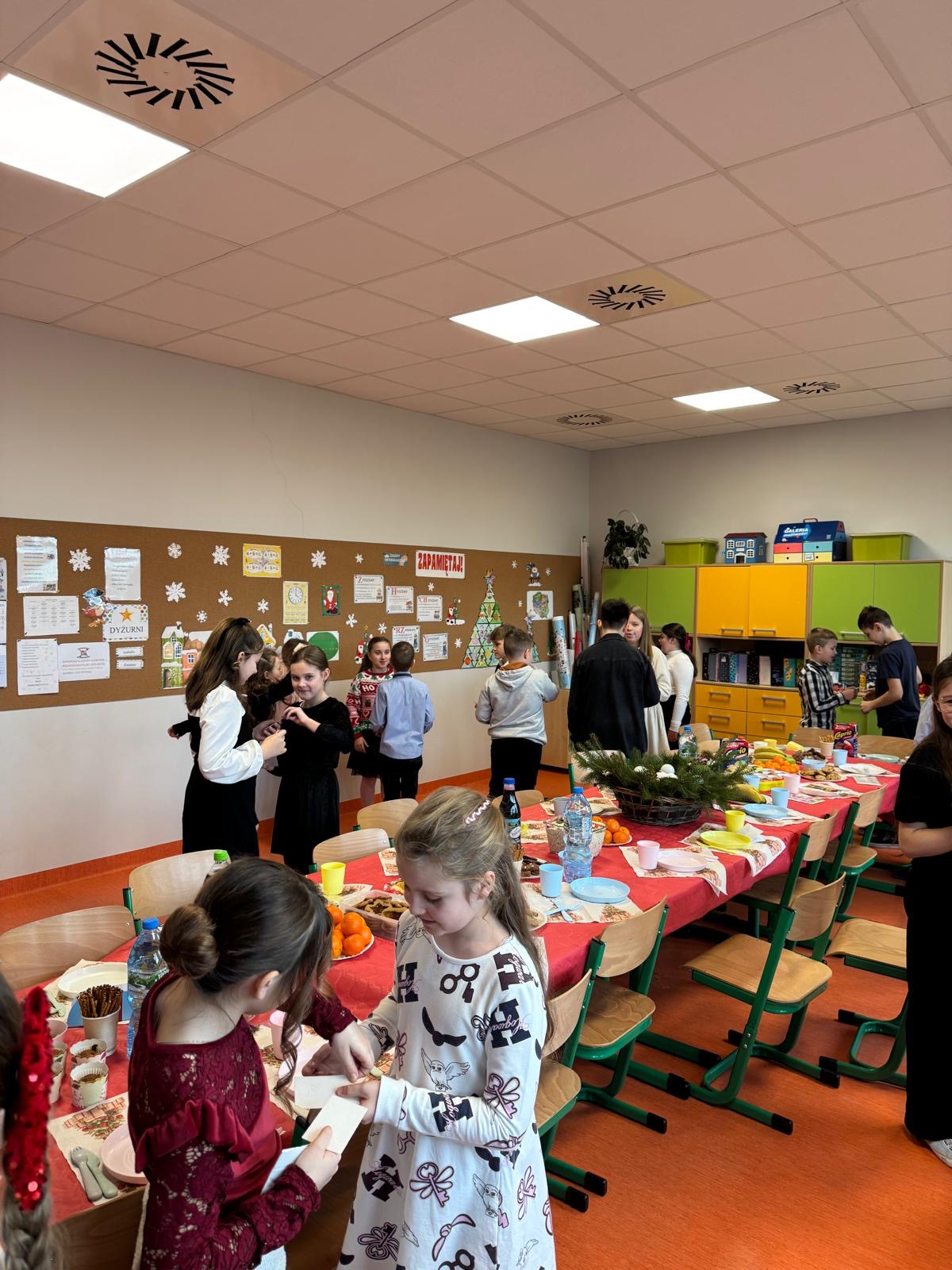 Dzieci wspólnie kolędowały, dzieliły się opłatkiem, a także składały sobie najpiękniejsze życzenia na zbliżające się Święta Bożego Narodzenia. 🌟🍪 Nie zabrakło również świątecznych dekoracji, pysznych smakołyków i chwil, które na długo pozostaną w naszej pamięci.