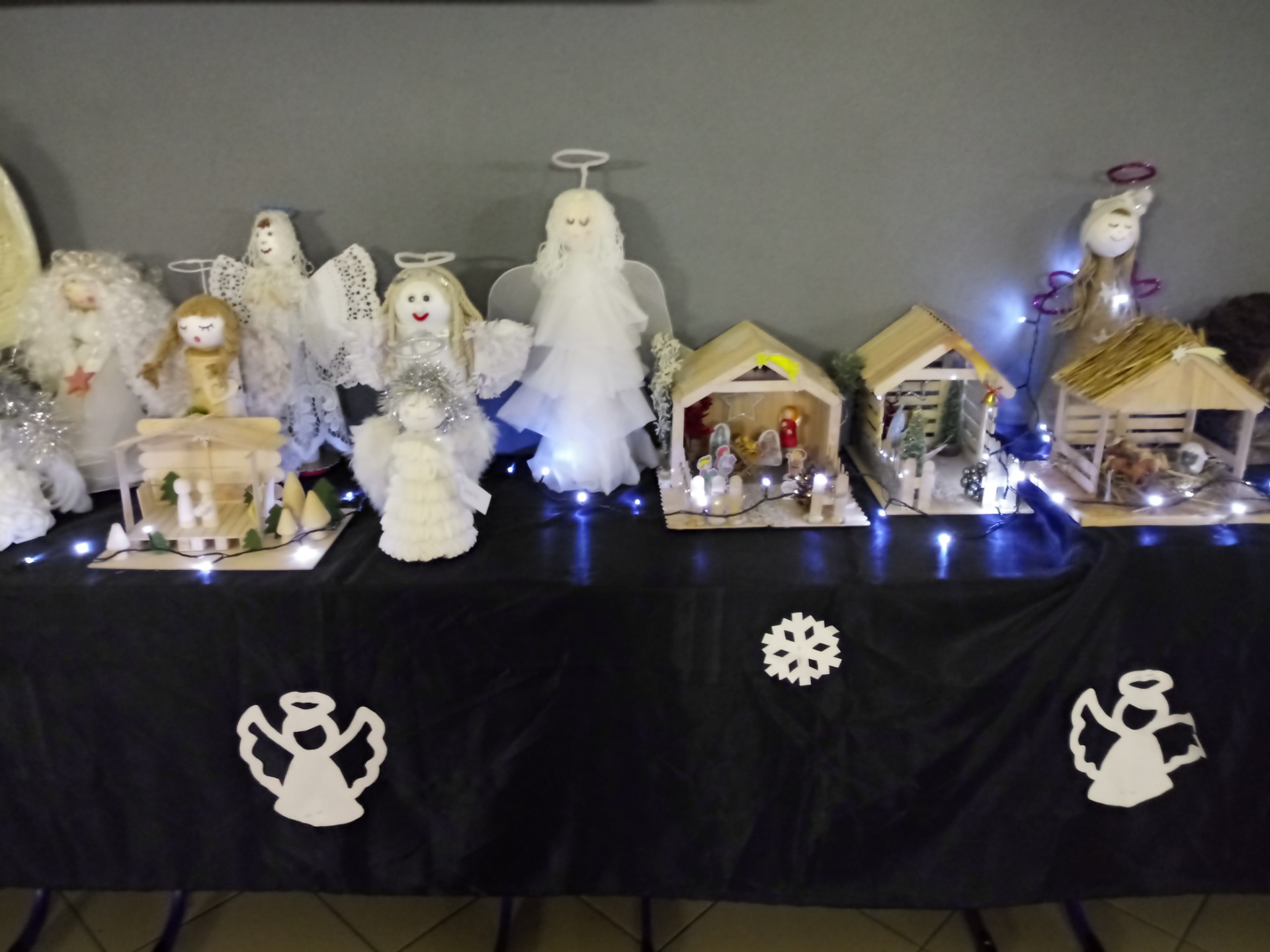 Szkolne Koło Wolontariatu zorganizowało jak co roku w grudniu wystawę szopek i aniołów.