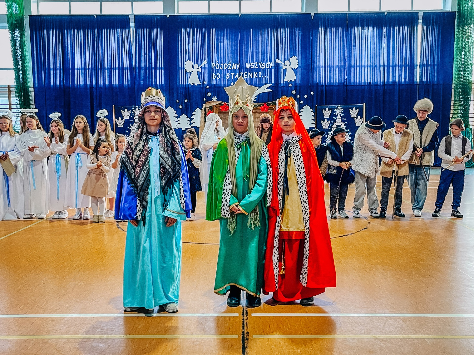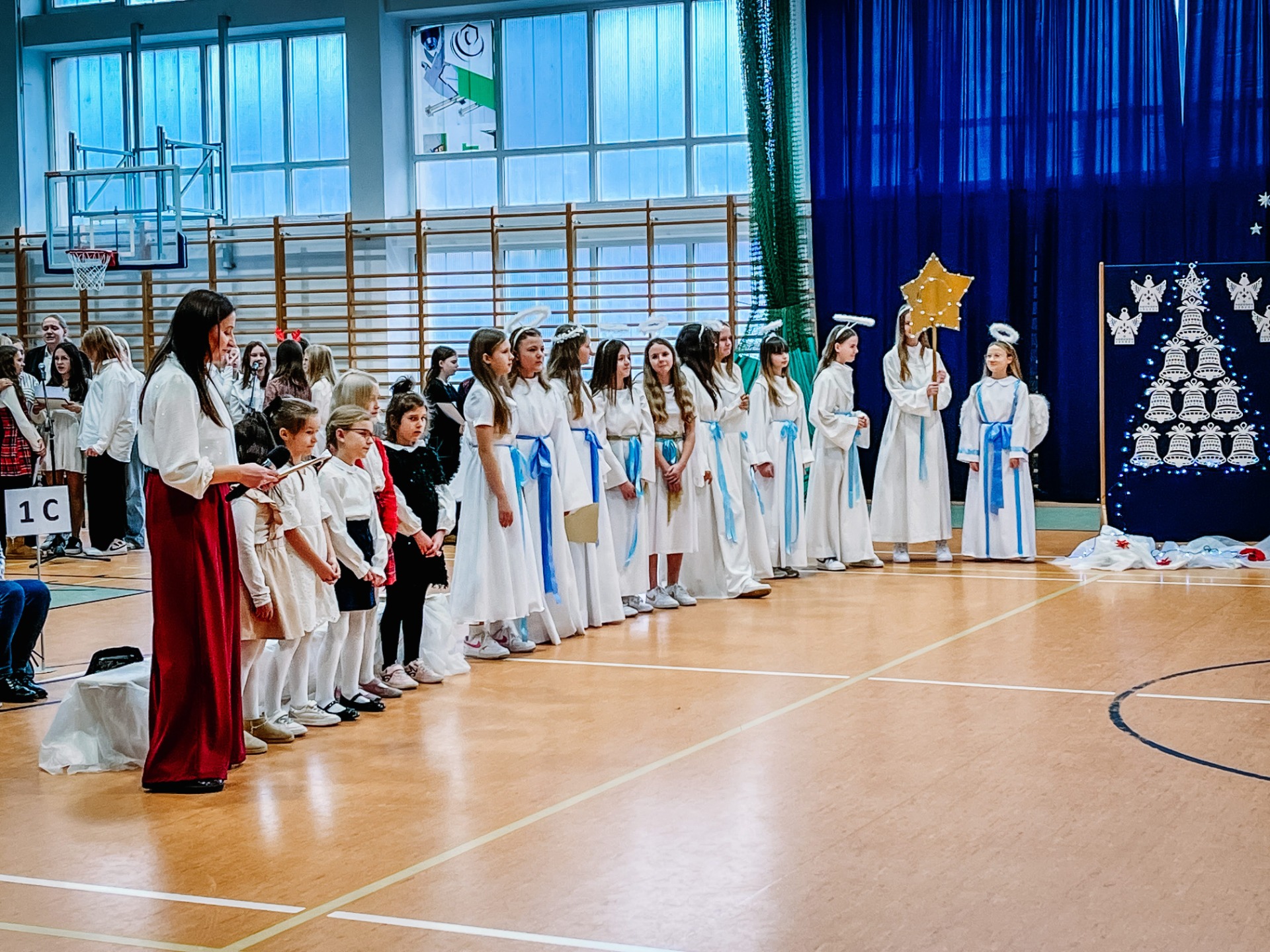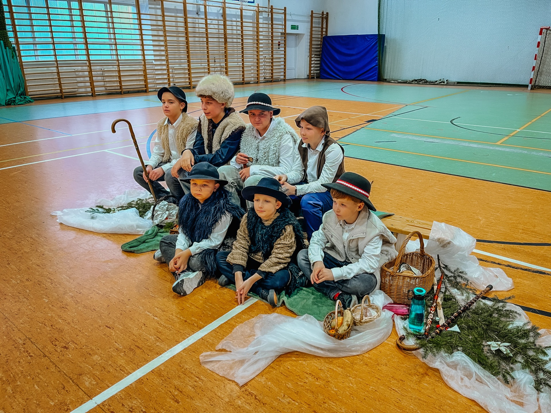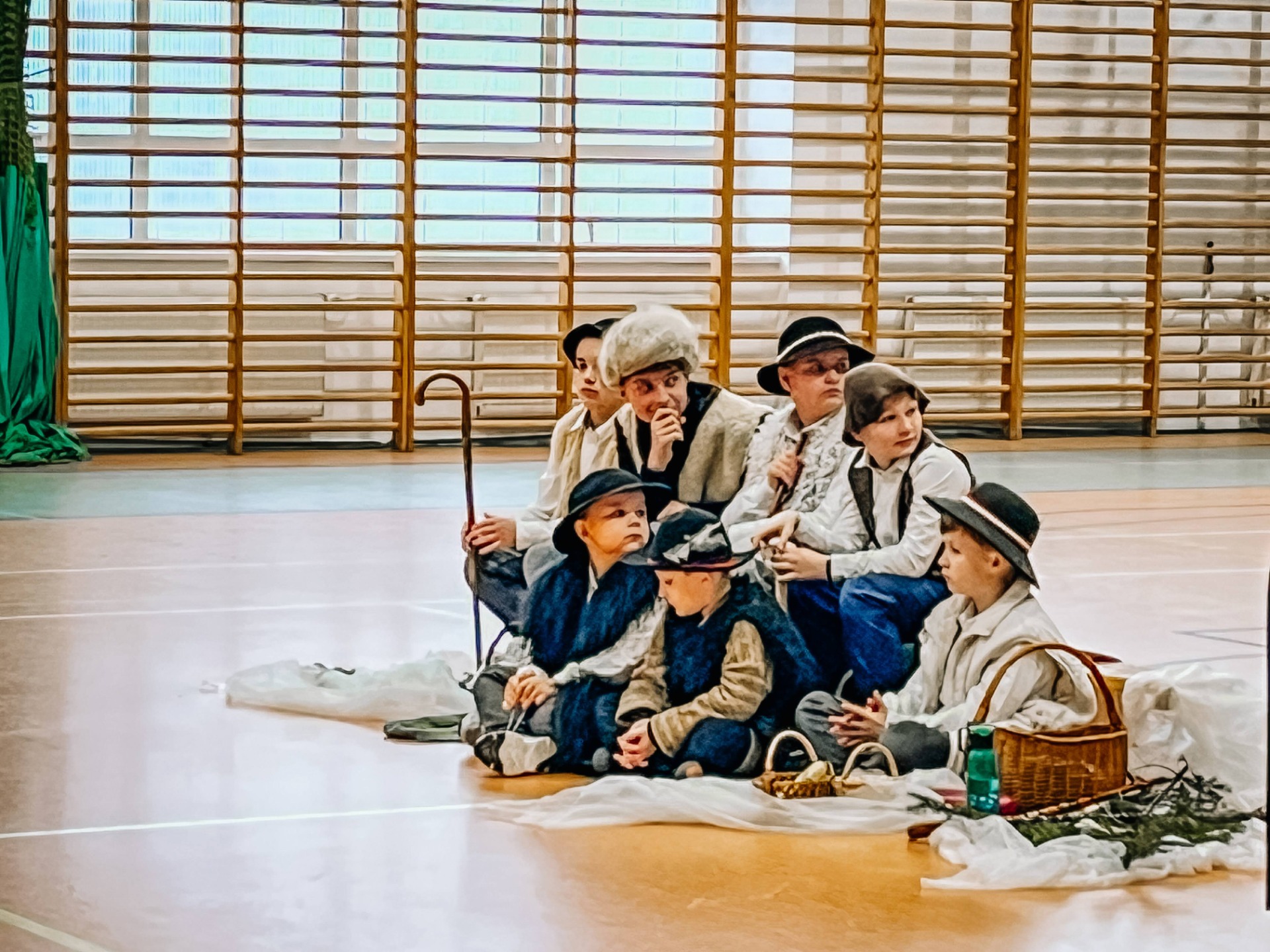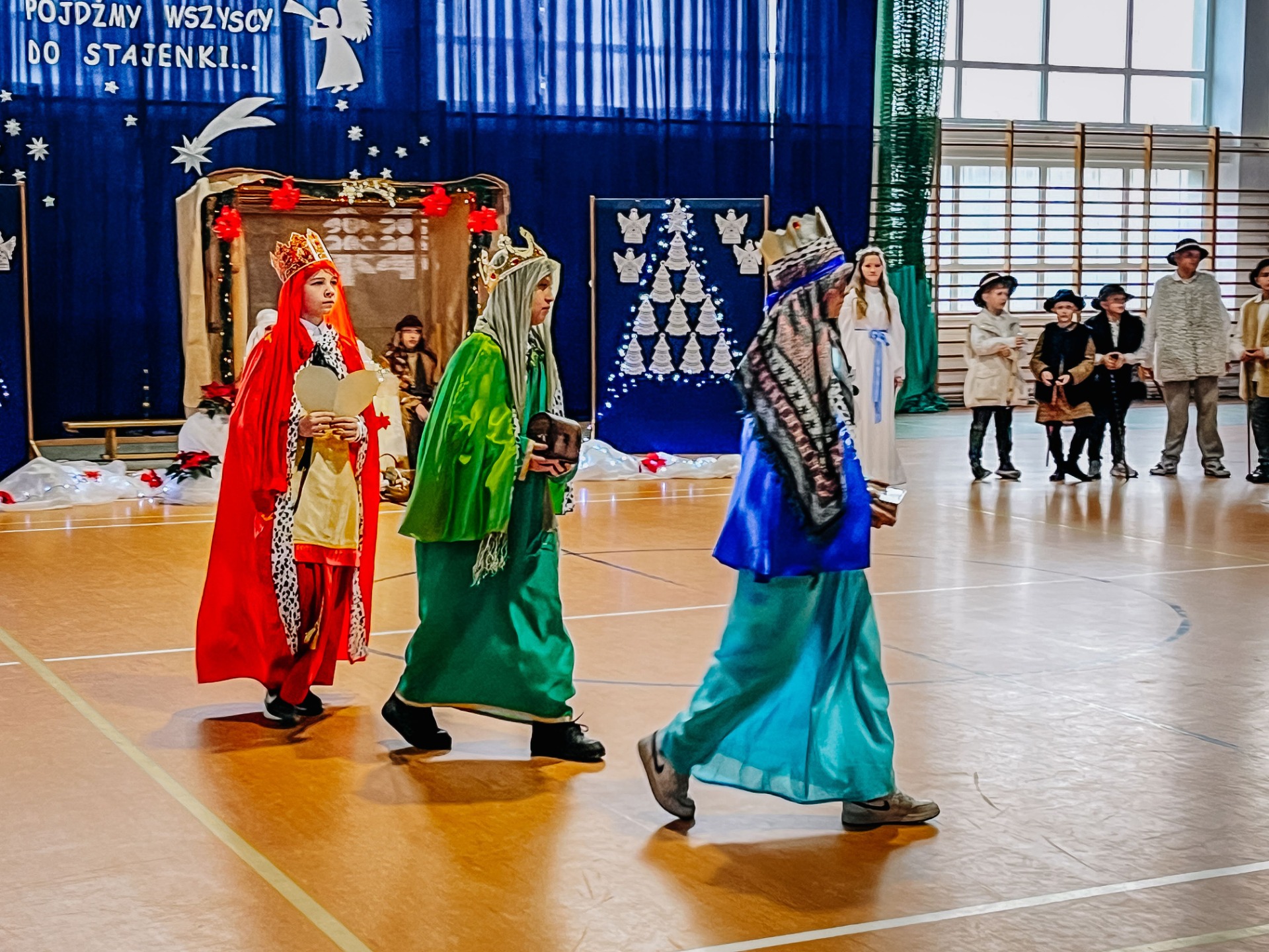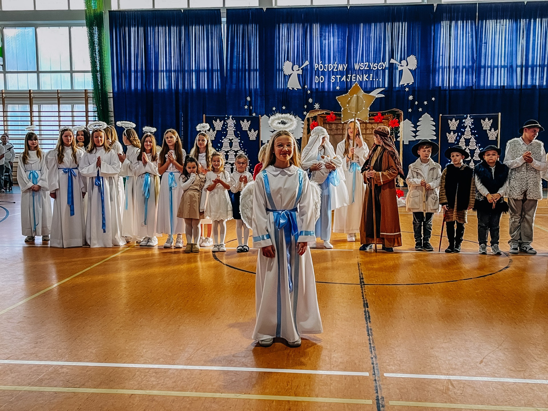 W dniu 20 grudnia 2024 roku o godzinie 9.00 na hali sportowej w naszej szkole odbyły się Jasełka w wykonaniu uczniów z klasy 1d i 6c oraz zespółu wokalnego dla całej społeczności szkolnej.