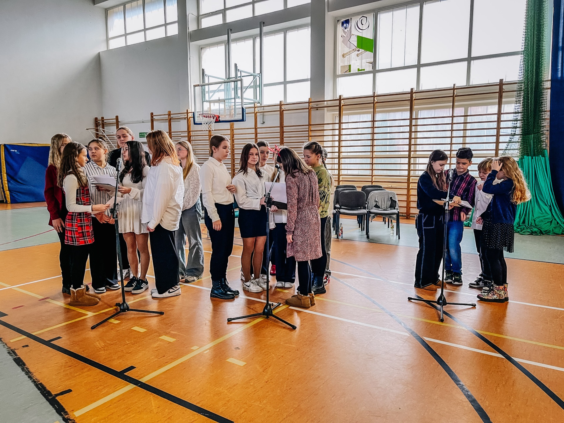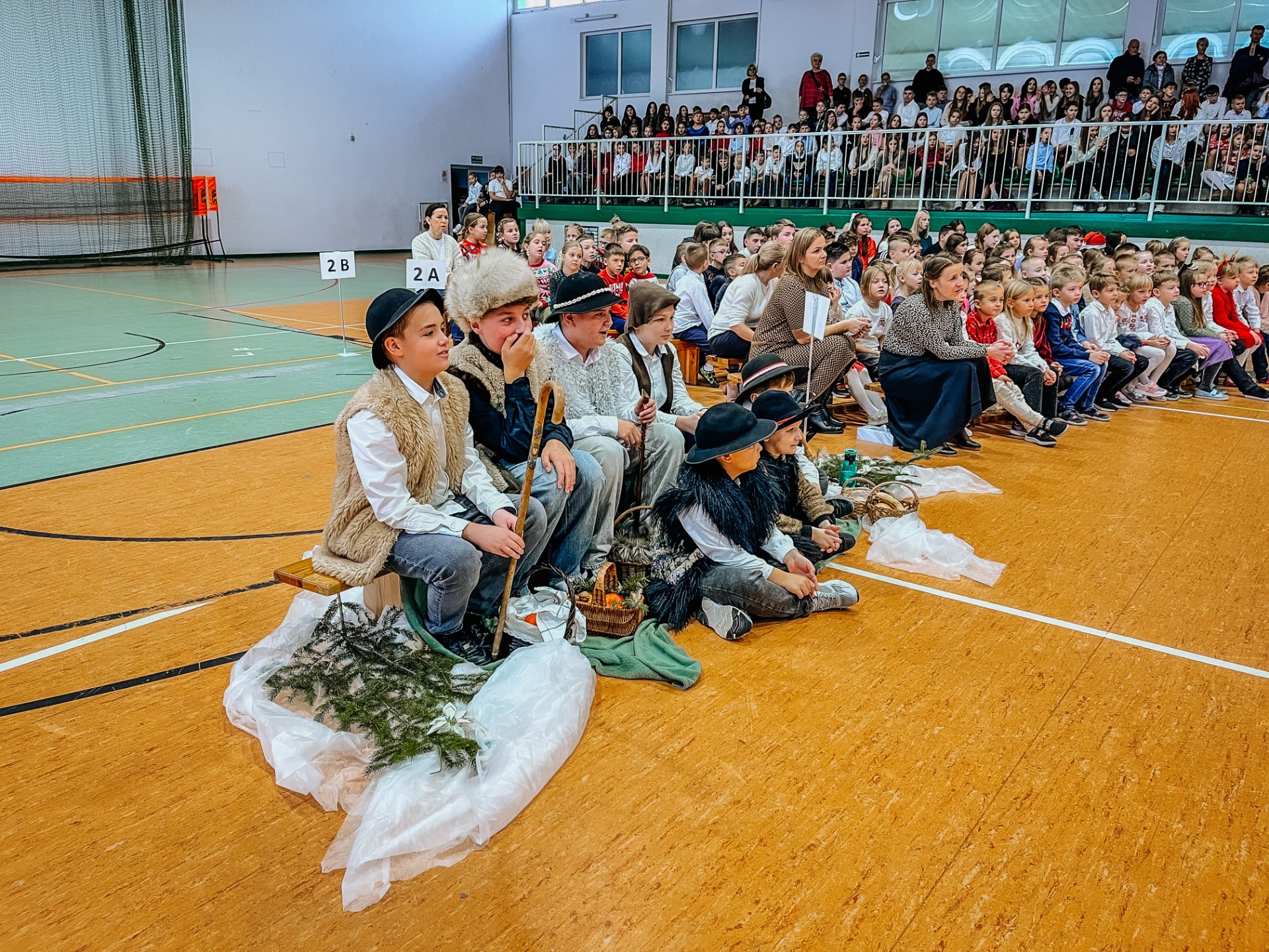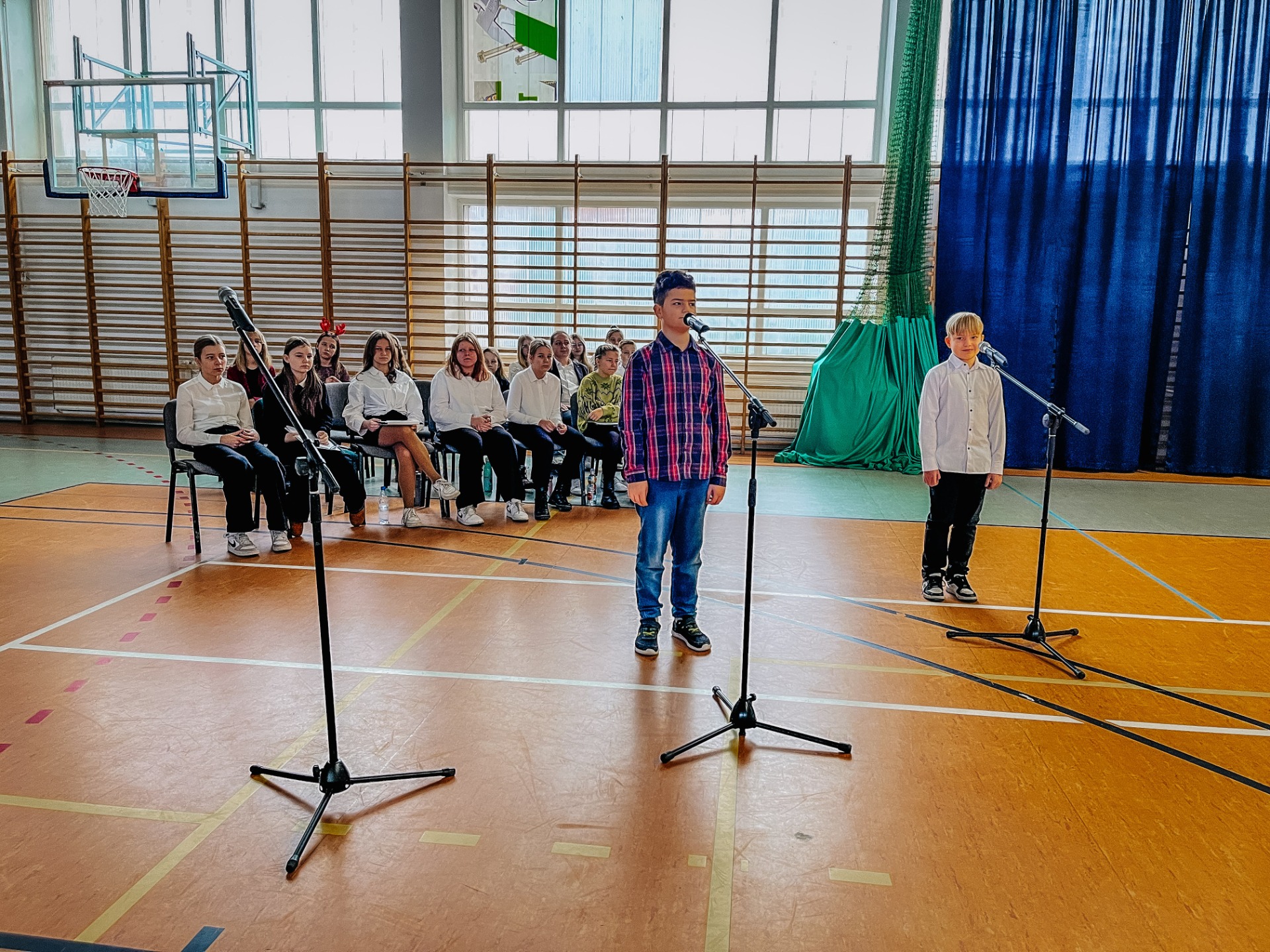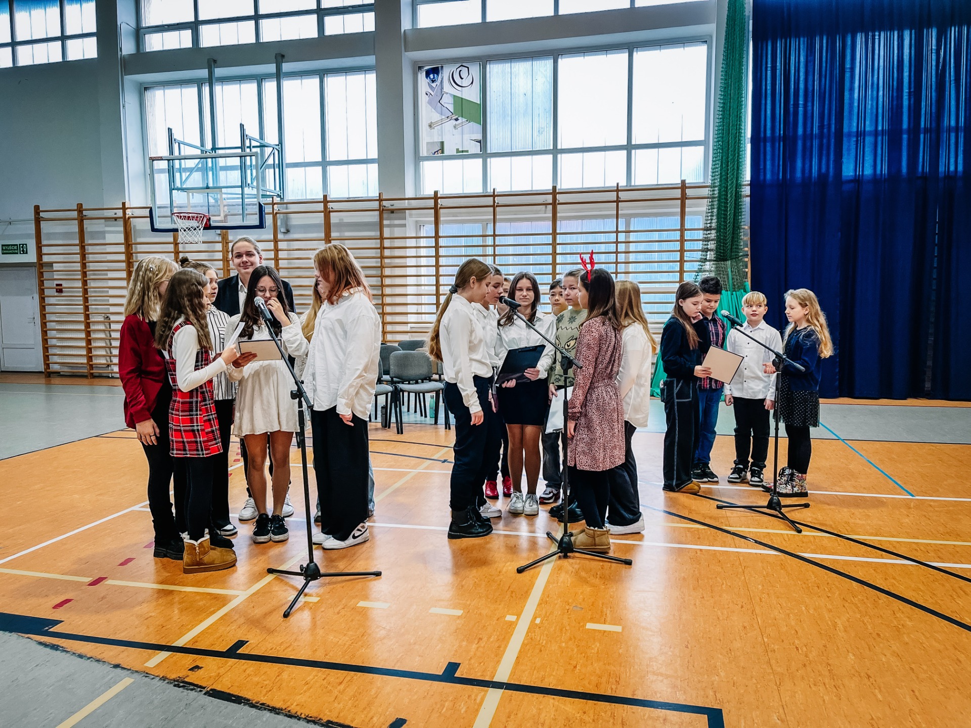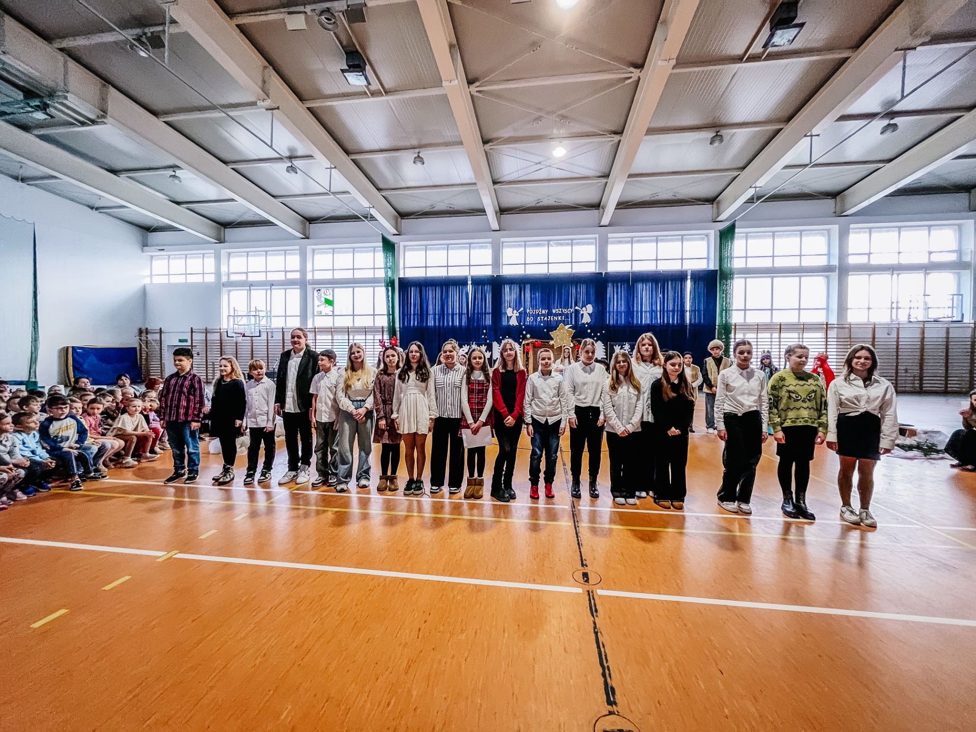 W dniu 20 grudnia 2024 roku o godzinie 9.00 na hali sportowej w naszej szkole odbyły się Jasełka w wykonaniu uczniów z klasy 1d i 6c oraz zespółu wokalnego dla całej społeczności szkolnej.
