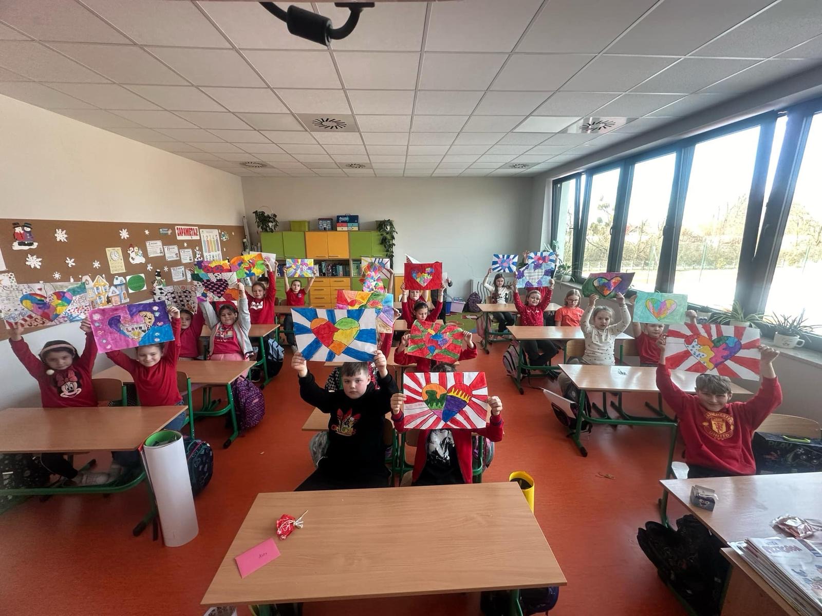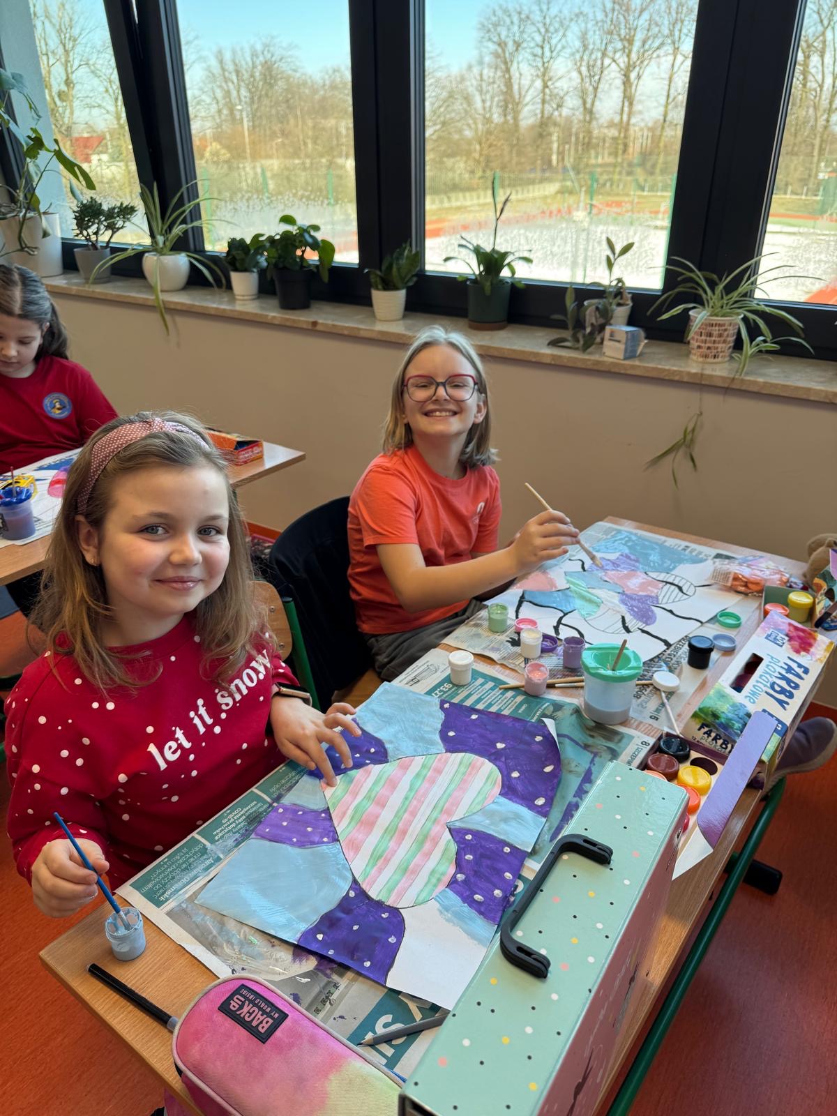 Uczniowie pokazali też swoją kreatywność, tworząc piękne prace plastyczne pełne serc i kolorów. 🎨✨