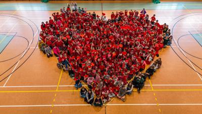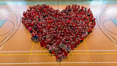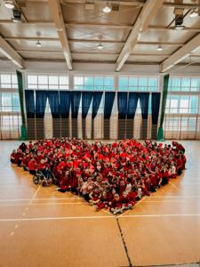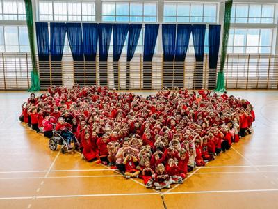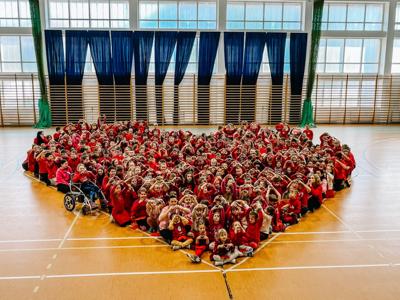 Dziś w naszej szkole obchodziliśmy święto miłości. Uczniowie ubrali czerwone bluzy i robili wspólne pamiątkowe fotografie. Niemal 400 osób utworzyło żywe serce podczas happeningu Serce miłości. Dziękujemy, zwłaszcza młodszym uczniom, za cierpliwość w pozowaniu. Za rok mamy nadzieję na jeszcze większą frekwencję w naszym wielkim sercu.