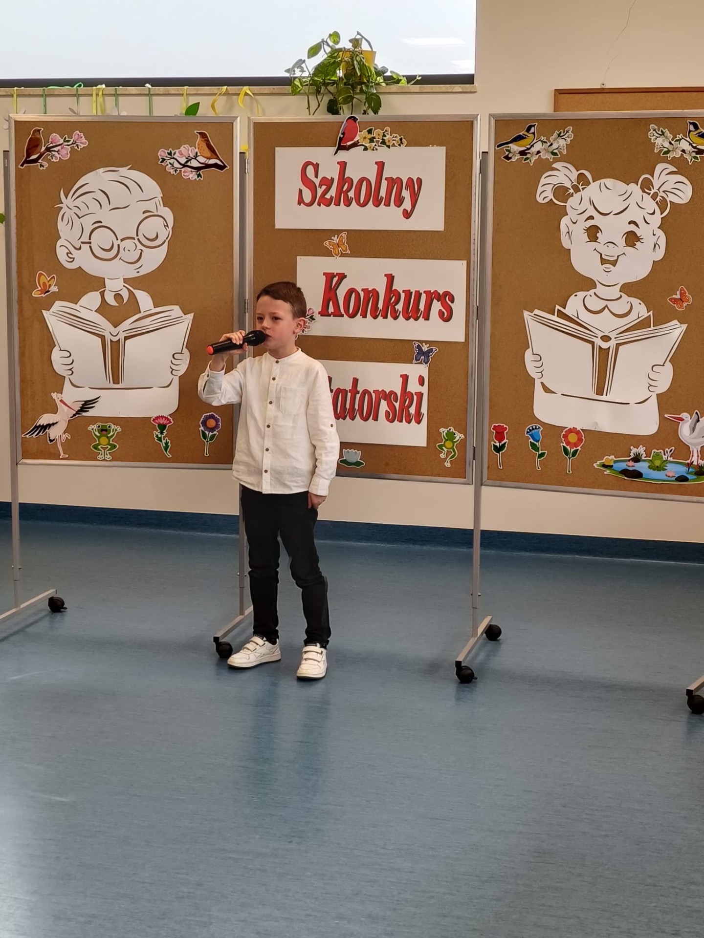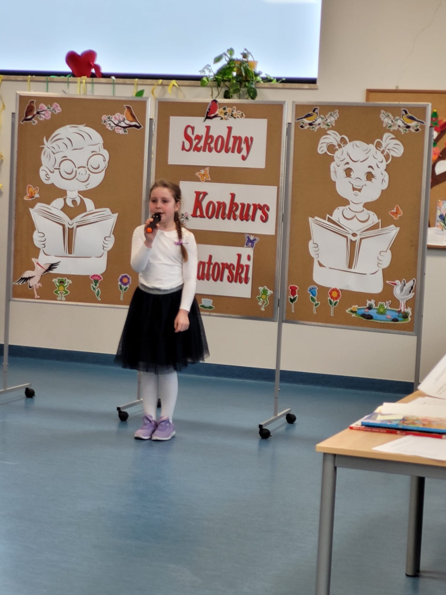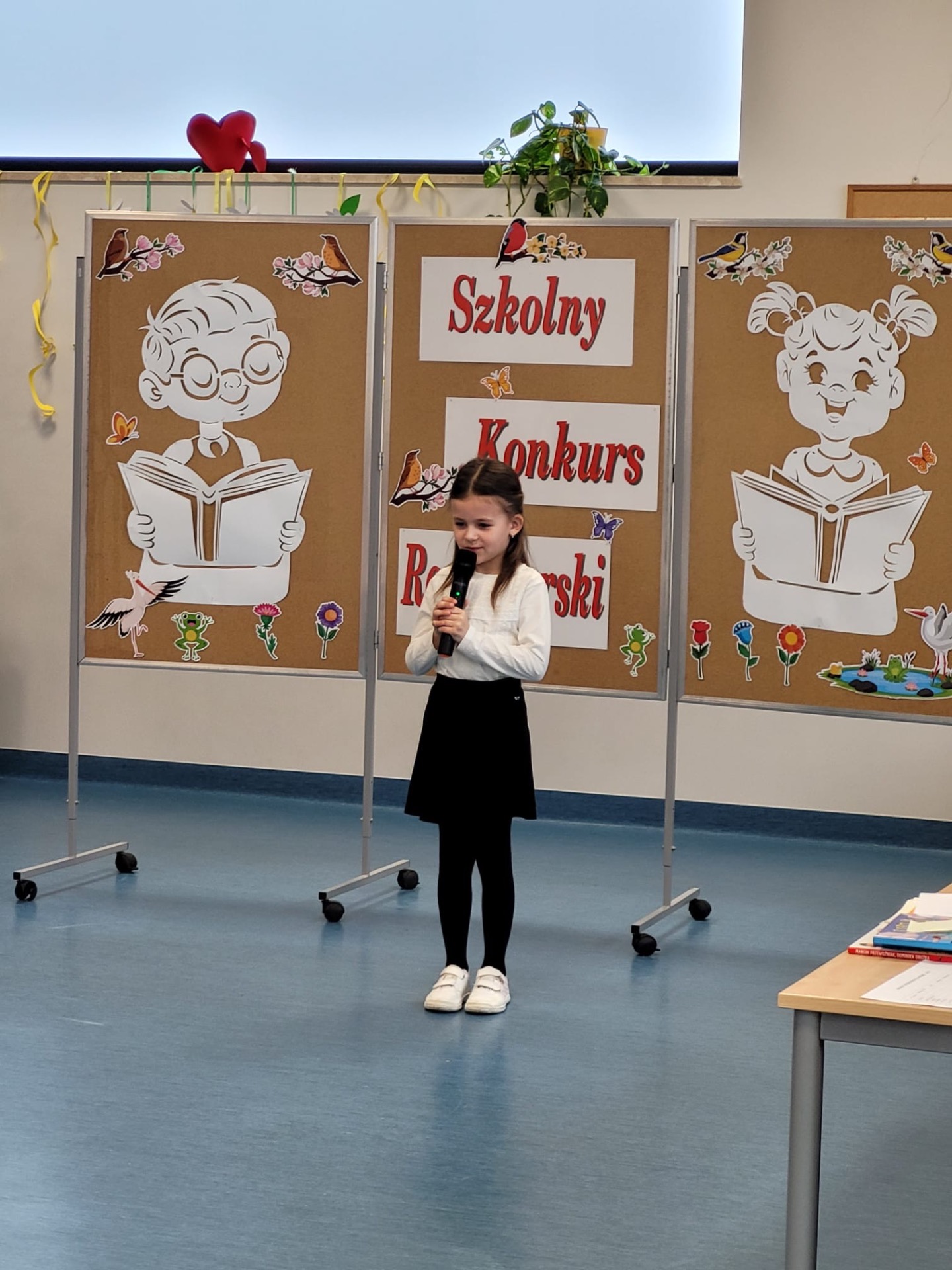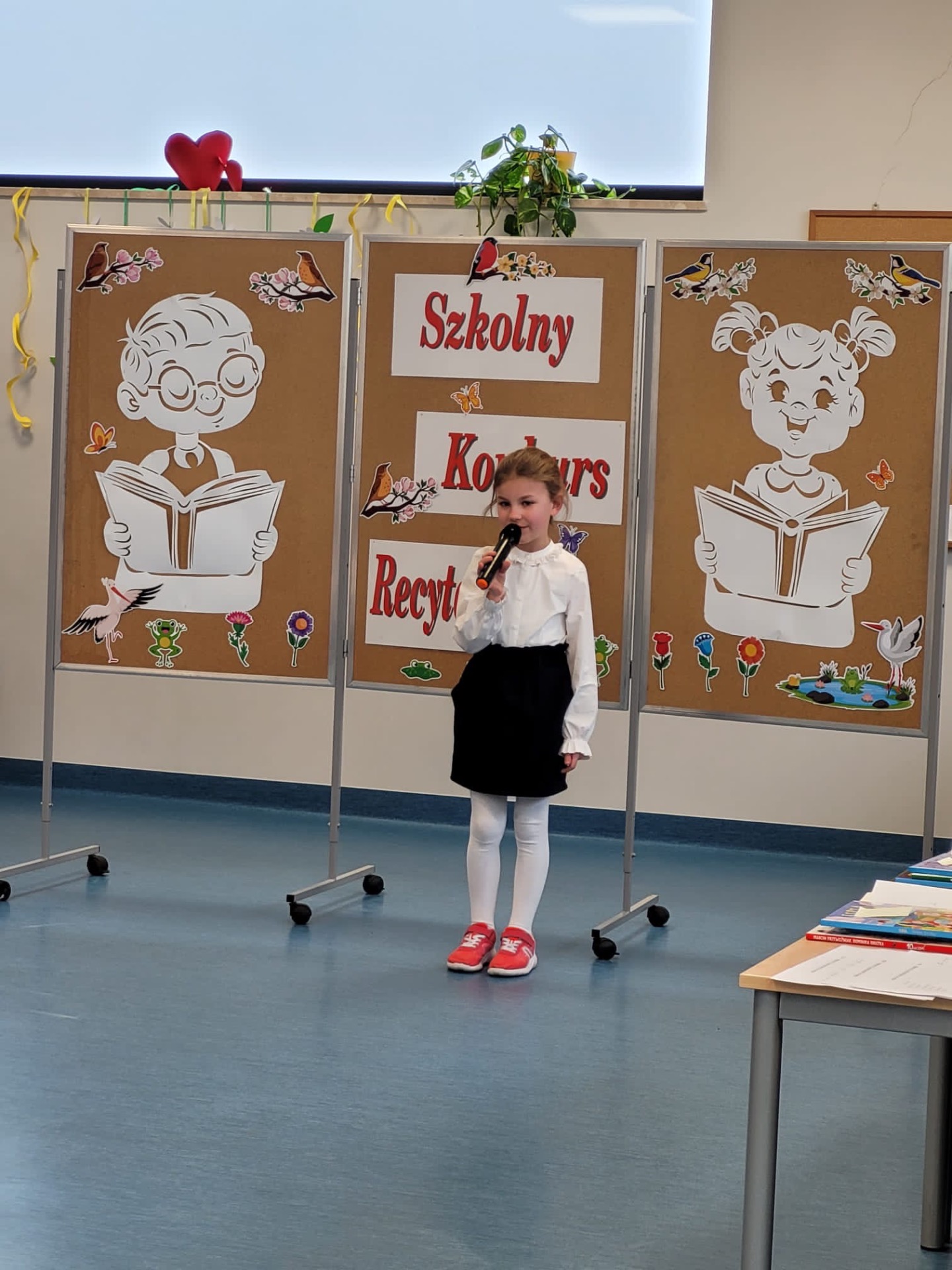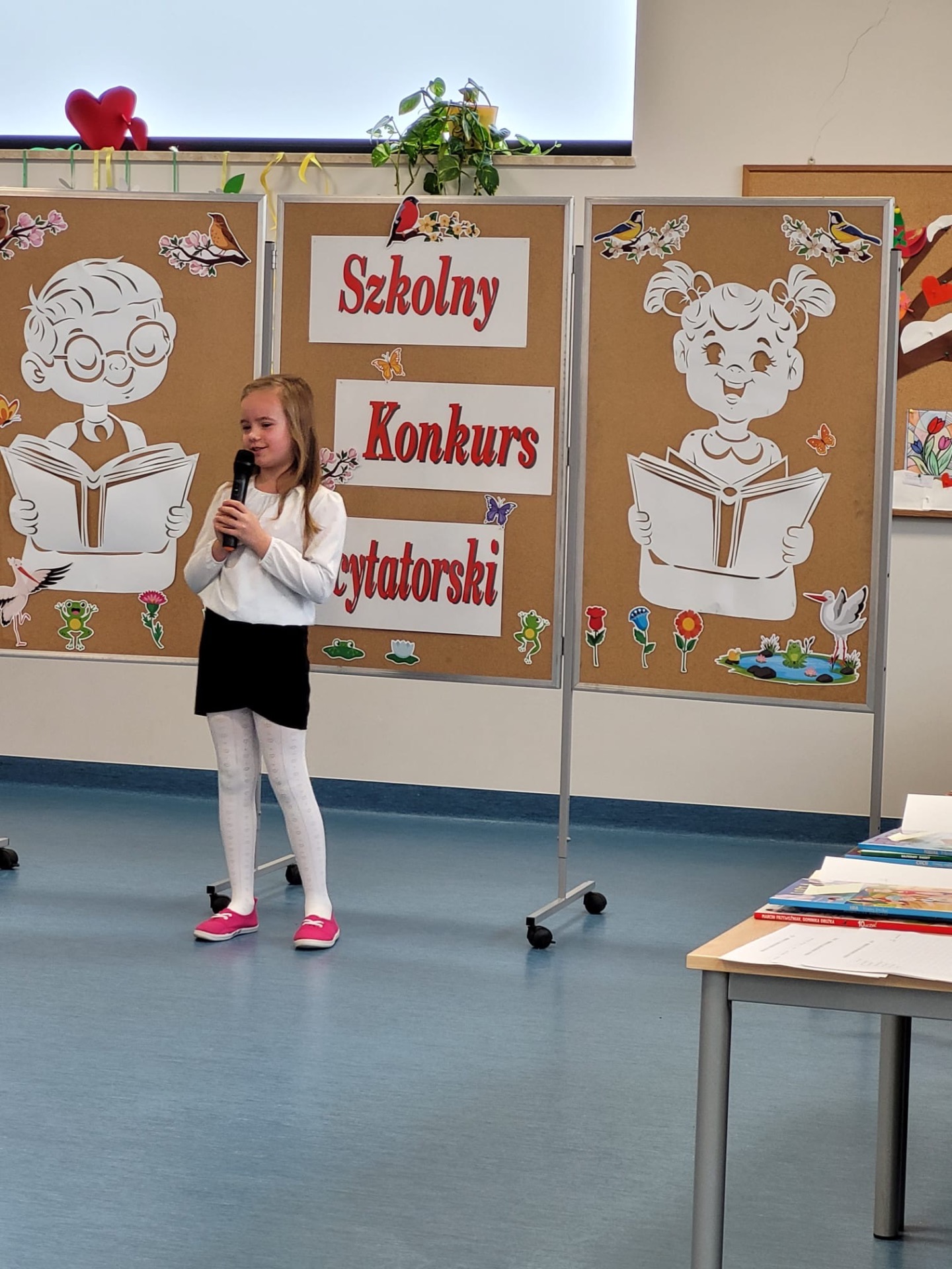 W dniu dzisiejszym w naszej szkole odbył się Szkolny Konkurs Recytatorski klas 0-III, w którym wzięło udział 39 Laureatów Klasowych Konkursów Recytatorskich.