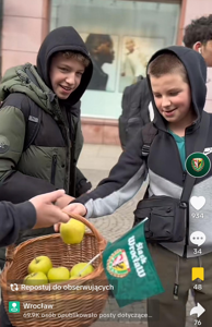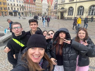 Dodatkowym, niespodziewanym wydarzeniem była wizyta Orła Ślązaka na wrocławskim Rynku z okazji Tłustego Czwartku. Naszym uczniom postawiono nietypowe pytanie – Pączek czy jabłko? W duchu zdrowych wyborów wszyscy zgodnie wybrali jabłko, za co otrzymali vouchery na bilety!