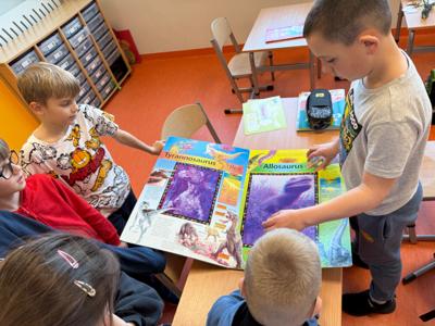 W klasie 2c długo wyczekiwany Dzień Dinozaura – czyli jedyny dzień w roku, kiedy T-Rex rządzi nie tylko w muzeach, ale i w naszej szkole! 🦖🎉 Dzieci z 2C przejęły stery i poprowadziły lekcje o prehistorycznych gadach, zasypując wszystkich ciekawostkami. W klasie zaroiło się od figurek, książek i albumów – dinozaurom brakowało tylko… własnego zoo! 🏞️📚