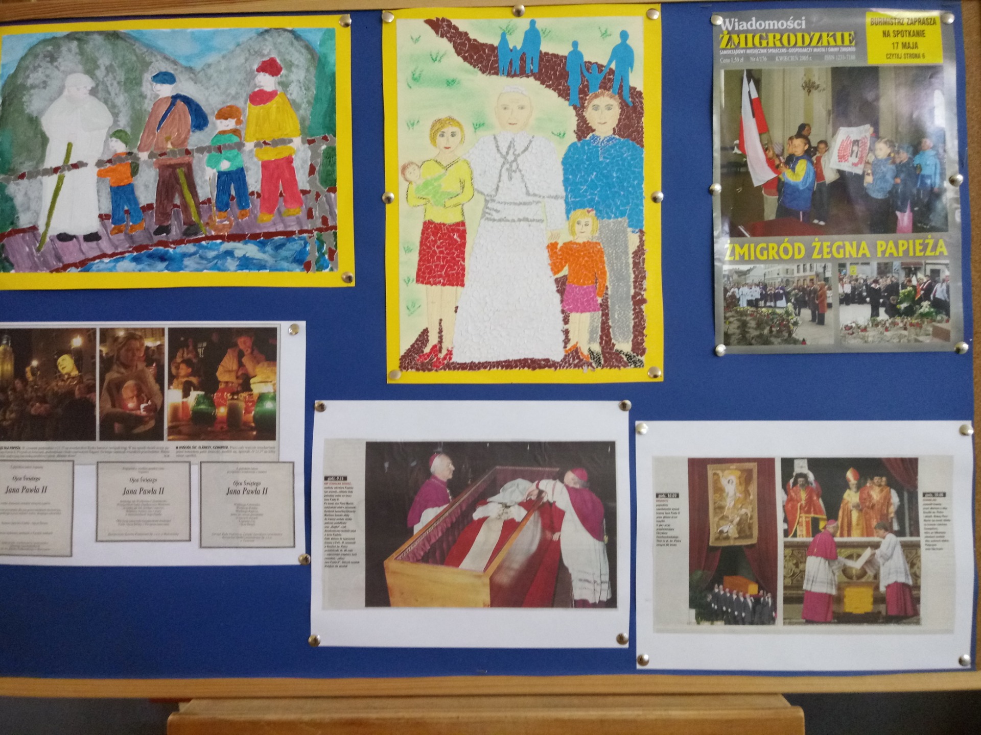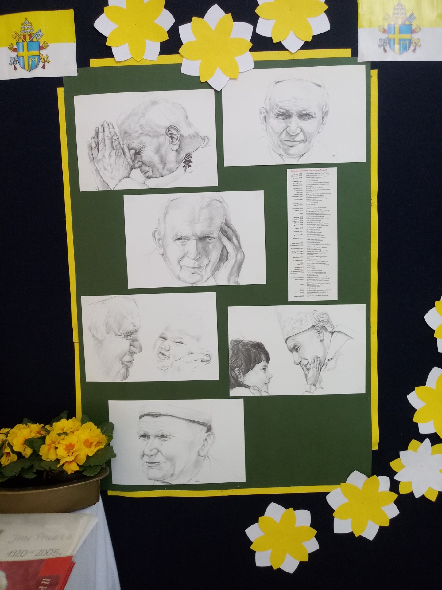 Szkolne Koło Wolontariatu zorganizowało wystawę na temat Papieża Jana Pawła II .