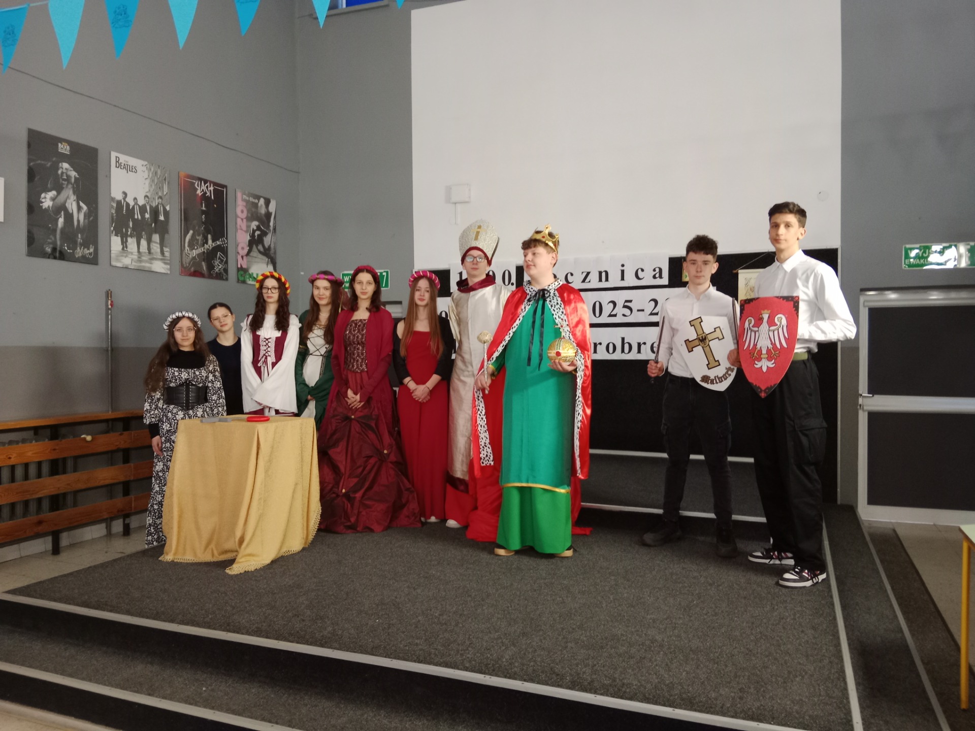 W dniach od 1 do 2 kwietnia 2025 roku w naszej szkole została wystawiona dla społeczności szkolnej, krótka scenka historyczna na temat koronacji Bolesława Chrobrego.