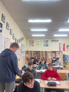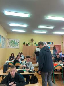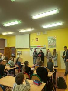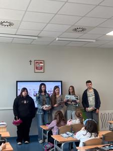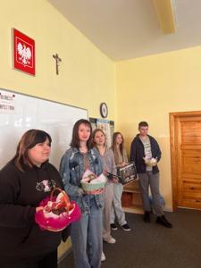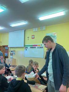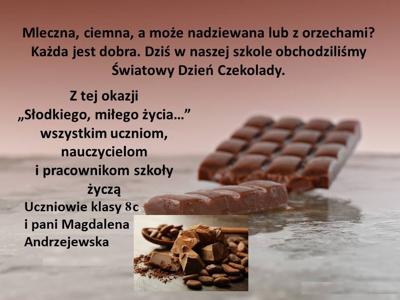 W poniedziałek, 14 kwietnia, uczniowie klasy 8c przygotowali dla społeczności naszej szkoły słodką niespodziankę. Z okazji Dnia Czekolady, który przypadał w sobotę, 12 kwietnia, częstowali wszystkich pyszną czekoladą.
