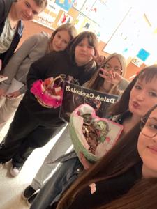 Z serdecznymi życzeniami – klasa 8c z wychowawcą, Magdaleną Andrzejewską 🍫😊