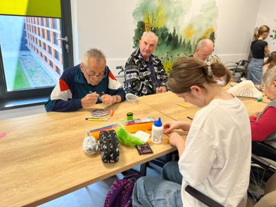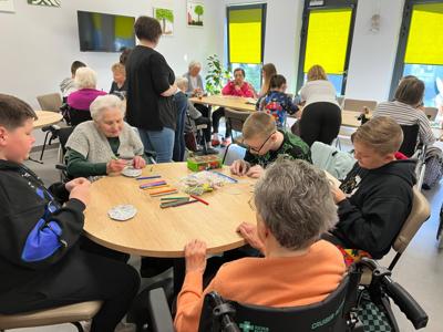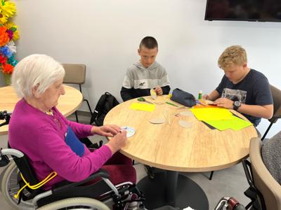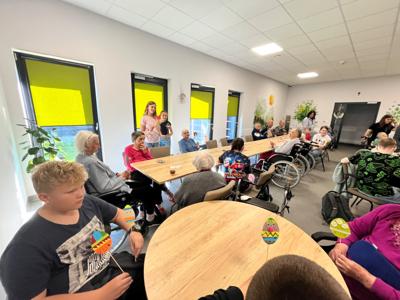 W dniu 16 kwietnia uczniowie klasy 6b udali si臋 do 偶migrodzkiego Centrum opieku艅czo - mieszkalnego aby wsp贸lnie z mieszka艅cami przygotowa膰 艣wi膮teczne ozdoby. Cho膰 r贸偶nica wieku pomi臋dzy uczniami a mieszka艅cami o艣rodka by艂a bardzo du偶o wszyscy znale藕li wsp贸lny j臋zyk i stworzyli wyj膮tkowe wielkanocne ozdoby. To by艂 bardzo mile sp臋dzony czas i bardzo ciekawe do艣wiadczenie dla wszystkich uczestnik贸w spotkania.
