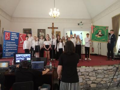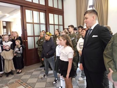 Wrocław -1000. rocznica koronacji Bolesława Chrobrego 23 kwietnia 2025 roku, Poczet Sztandarowy i zespół wokalny naszej szkoły, brał udział we Wrocławiu w ogólnopolskich obchodach 1000. koronacji Bolesława Chrobrego. Prezentowaliśmy sztandar i hymn naszej szkoły. Zdjęcia Zobacz również Akcja Żonkile-19 kwietnia Dzień Czekolady Wielkanocne ozdoby🐣 Wrocław -1000. rocznica koronacji Bolesława Chrobrego Apel z okazji Świąt Majowych 05.05.2025 - klasy 0, 2b i 2c - spotkanie z Ochotniczą... 24 kwietnia 2025 Aktualności Wydrukuj Udostępnij Wyświetlono: 3598