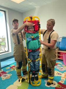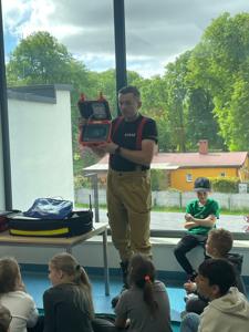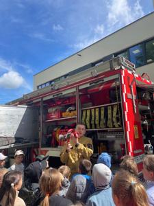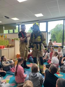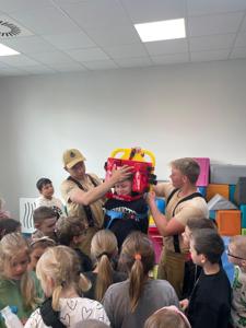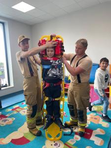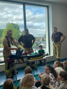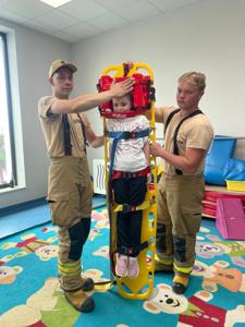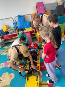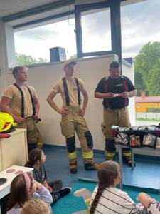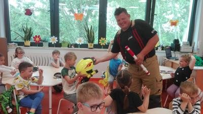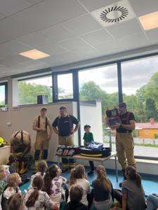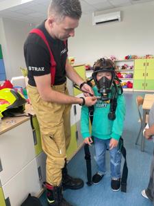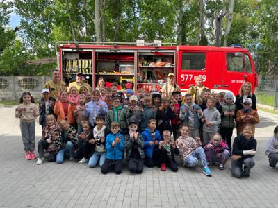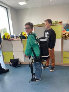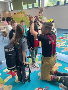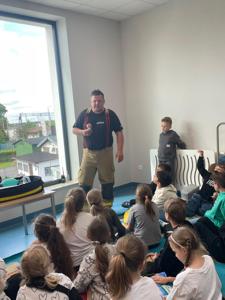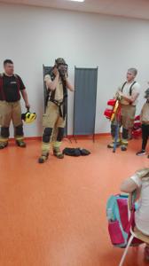 z Ochotniczej Straży Pożarnej w Bychowie. Panowie opowiedzieli o swojej trudnej, wymagającej i często niebezpiecznej pracy, zaprezentowali sprzęt używany podczas akcji ratowniczych, omówili zasady postępowania w przypadku zagrożenia