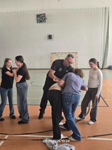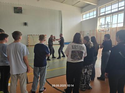 Podczas zajęć uczniowie uczyli się podstawowych technik samoobrony dostosowanych do wieku uczniów, rozwijali umiejętności radzenia sobie w sytuacjach zagrożenia – fizycznego i psychicznego, kształtowali pewności siebie, asertywności oraz umiejętności reagowania w sytuacjach stresowych, jak i promowali zdrowy styl życia i aktywność fizyczną. Uczniowie dowiedzieli się również: co to jest samoobrona, czym różni się ona od walki, jak zachować się w sytuacjach zagrożenia – profilaktyka zamiast agresji, kiedy uciekać, a kiedy się bronić, zostały również omówione bezpieczne postawy ciała, komunikacja werbalna i niewerbalna w sytuacjach konfliktowych. Uczniowie ćwiczyli m.in.: podstawowe postawy obronne i techniki uniku, proste techniki oswobadzania się z chwytów za rękę, szyję, plecak, nauka bezpiecznego upadania i przewrotów, symulacja sytuacji zagrożenia – scenki i reakcje oraz asertywne zachowania – mówienie "nie" i wołanie o pomoc. Zajęcia z samoobrony to nie tylko nauka fizycznych reakcji, ale także kształtowanie odpowiedzialnych, świadomych i asertywnych postaw. Takie warsztaty pozytywnie wpływają na kondycję fizyczną, emocjonalną i społeczną uczniów.