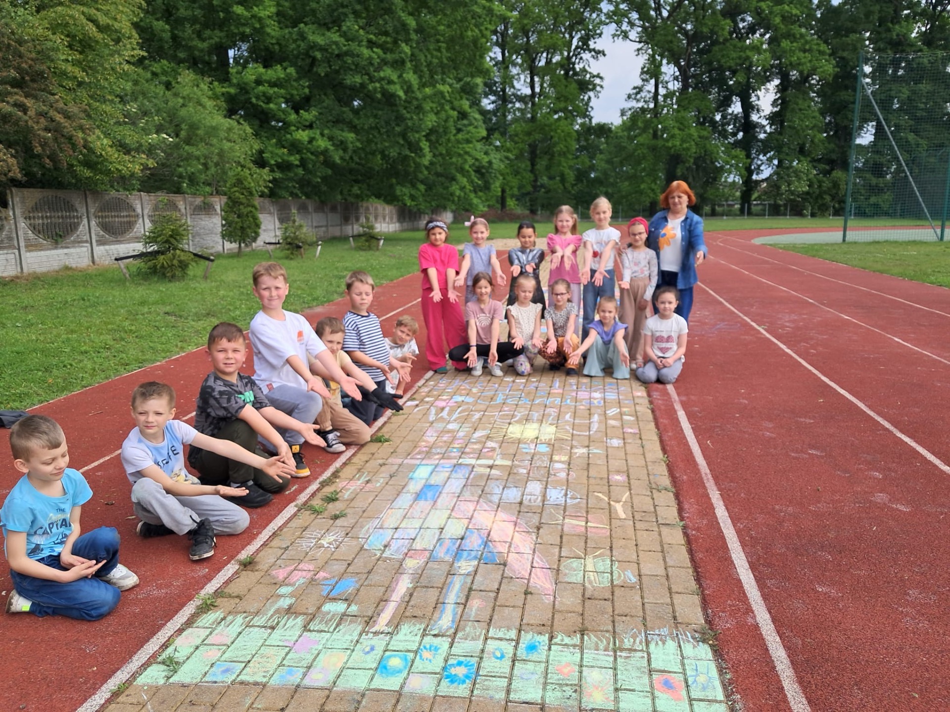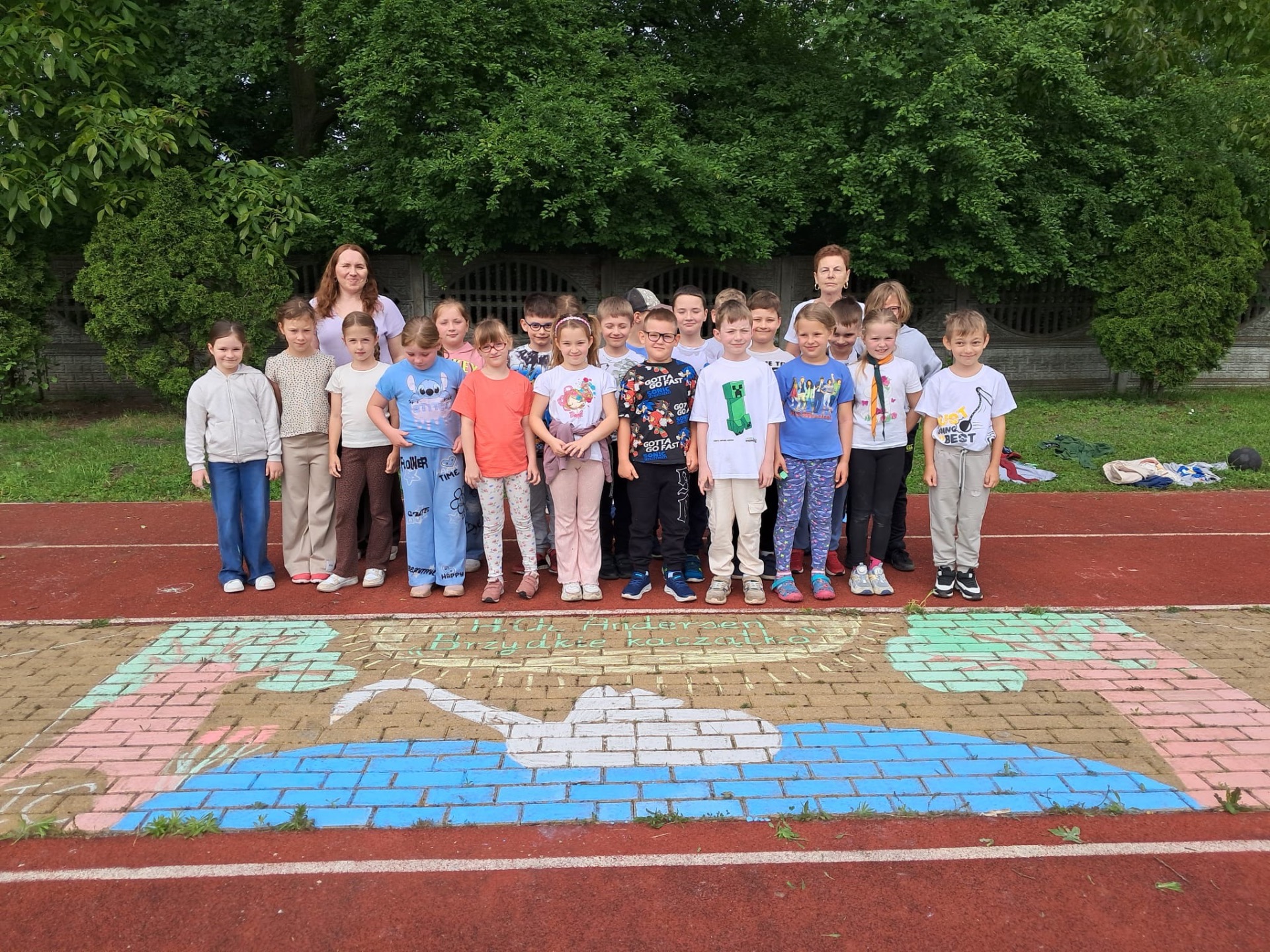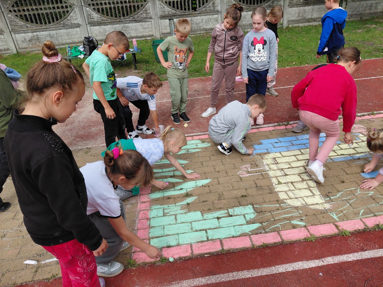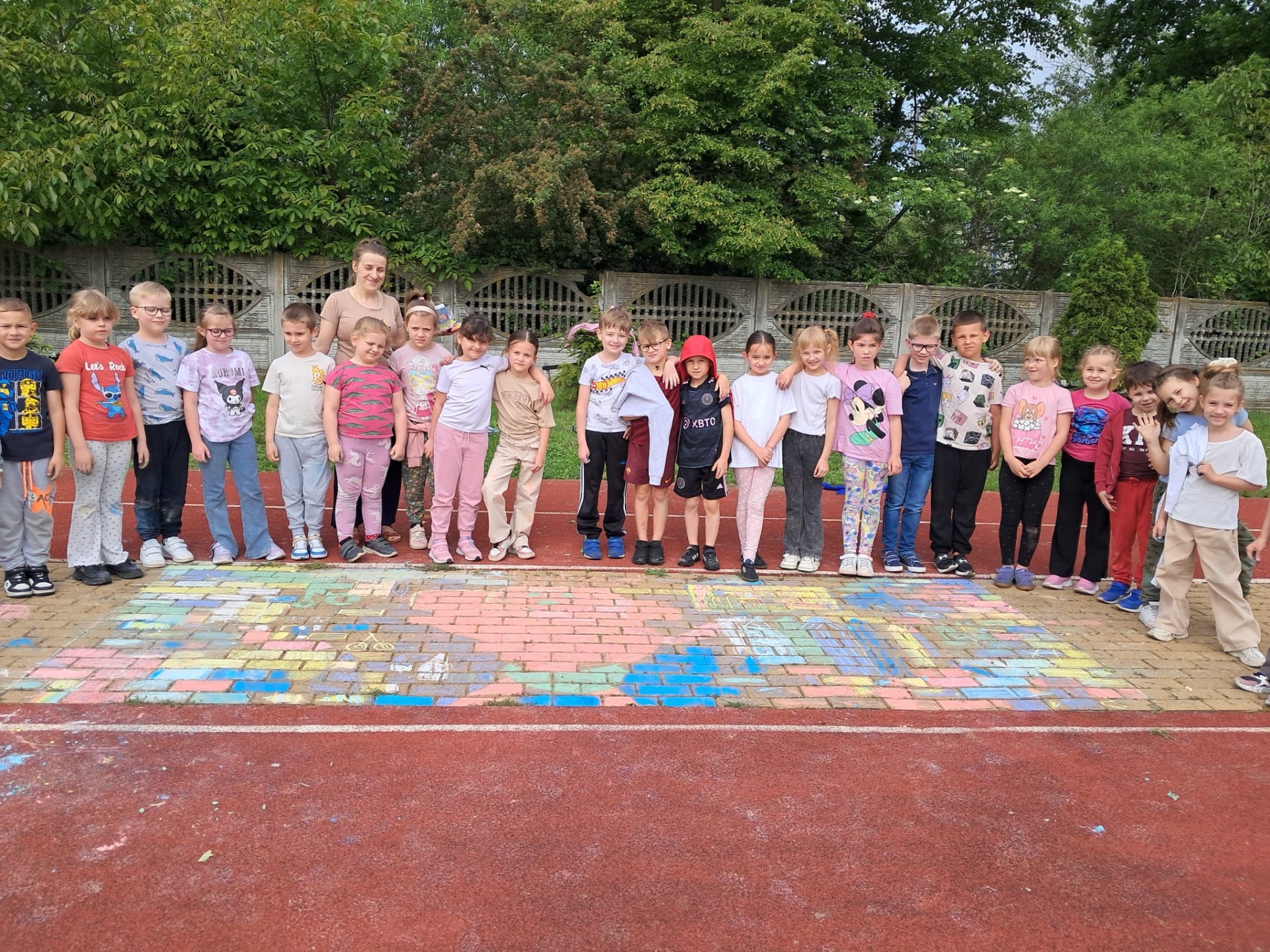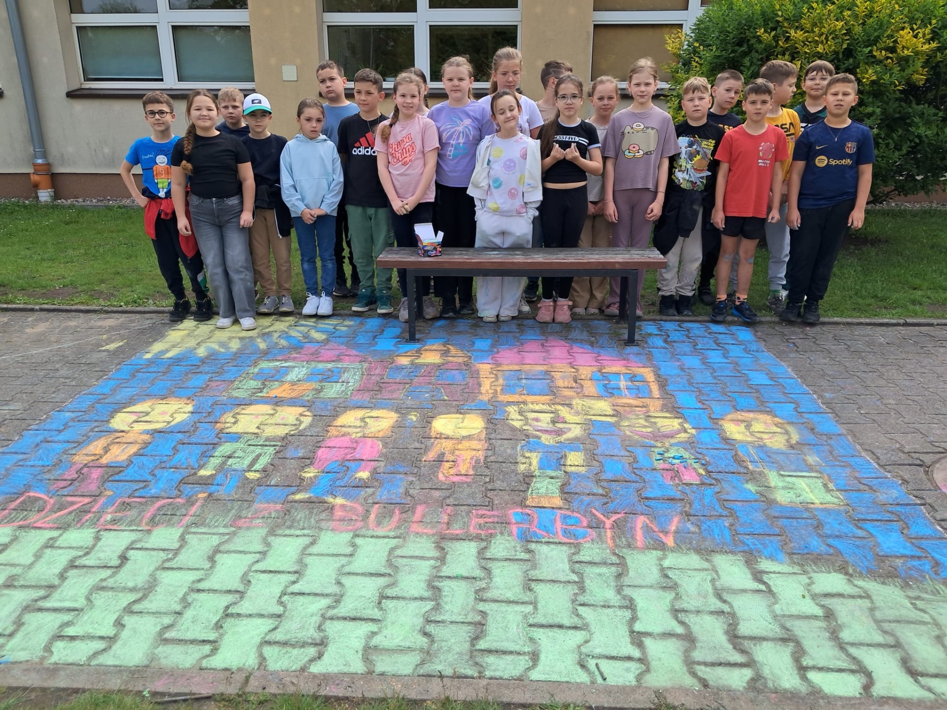 🎨 Szkolny chodnik przed wejściem ozdobiły kolorowe kredowe dzieła – uczniowie malowali okładki swoich ulubionych książek, dzieląc się tytułami, które ich inspirują i zachwycają.