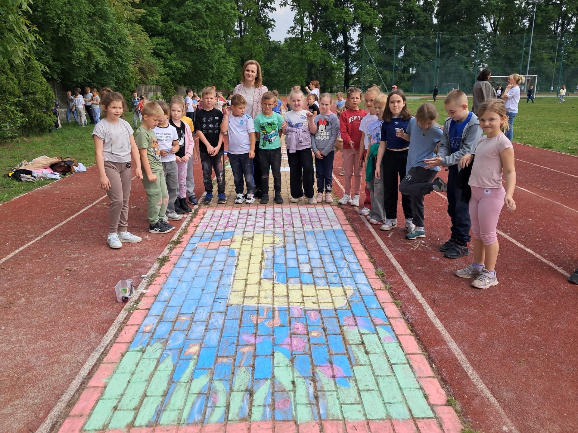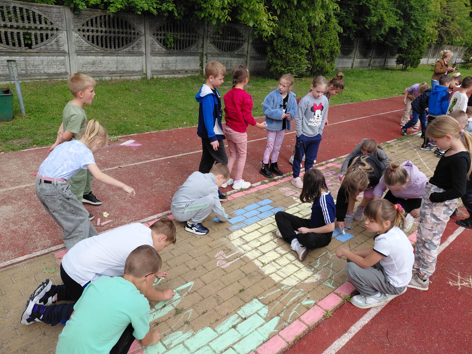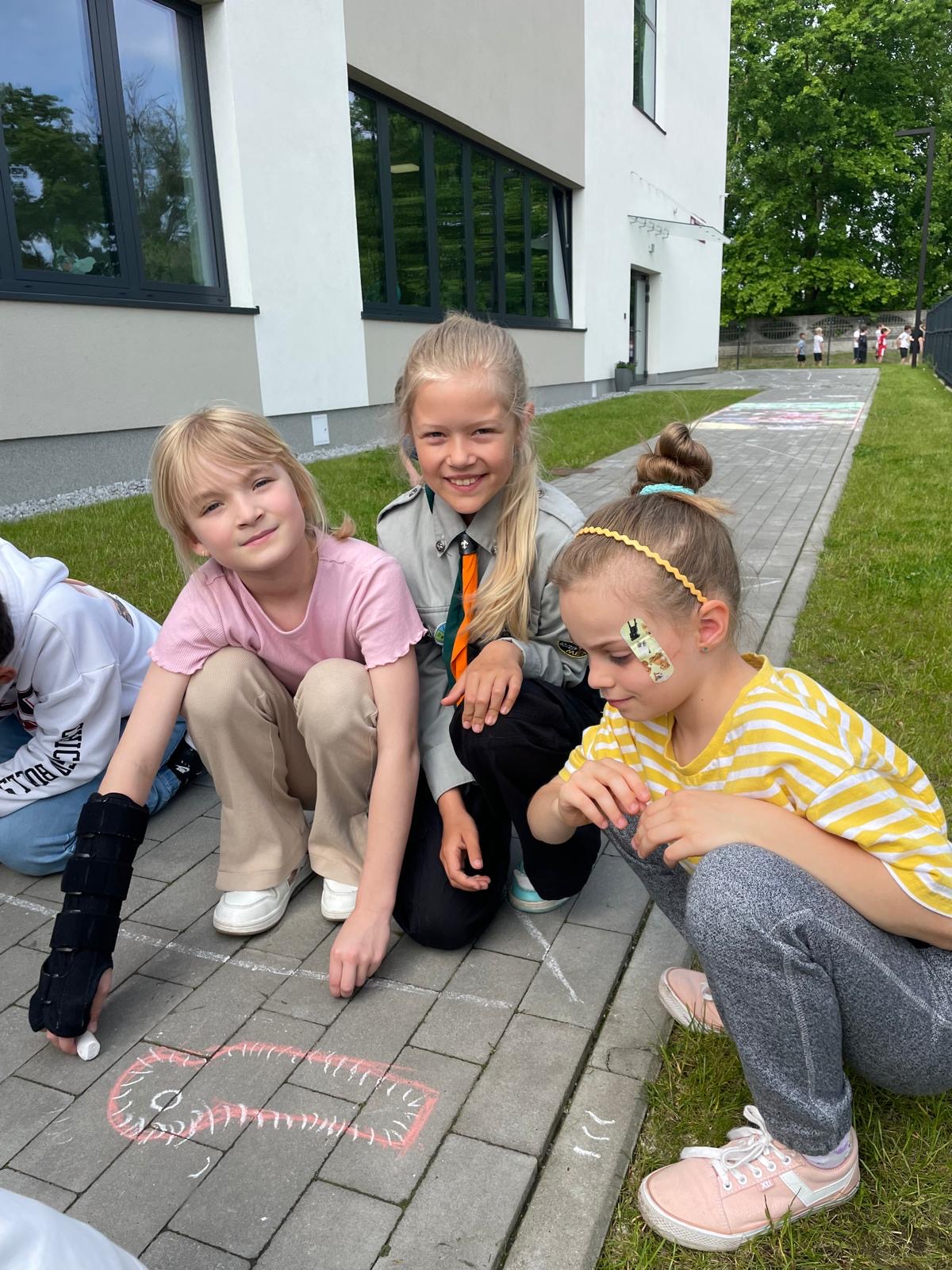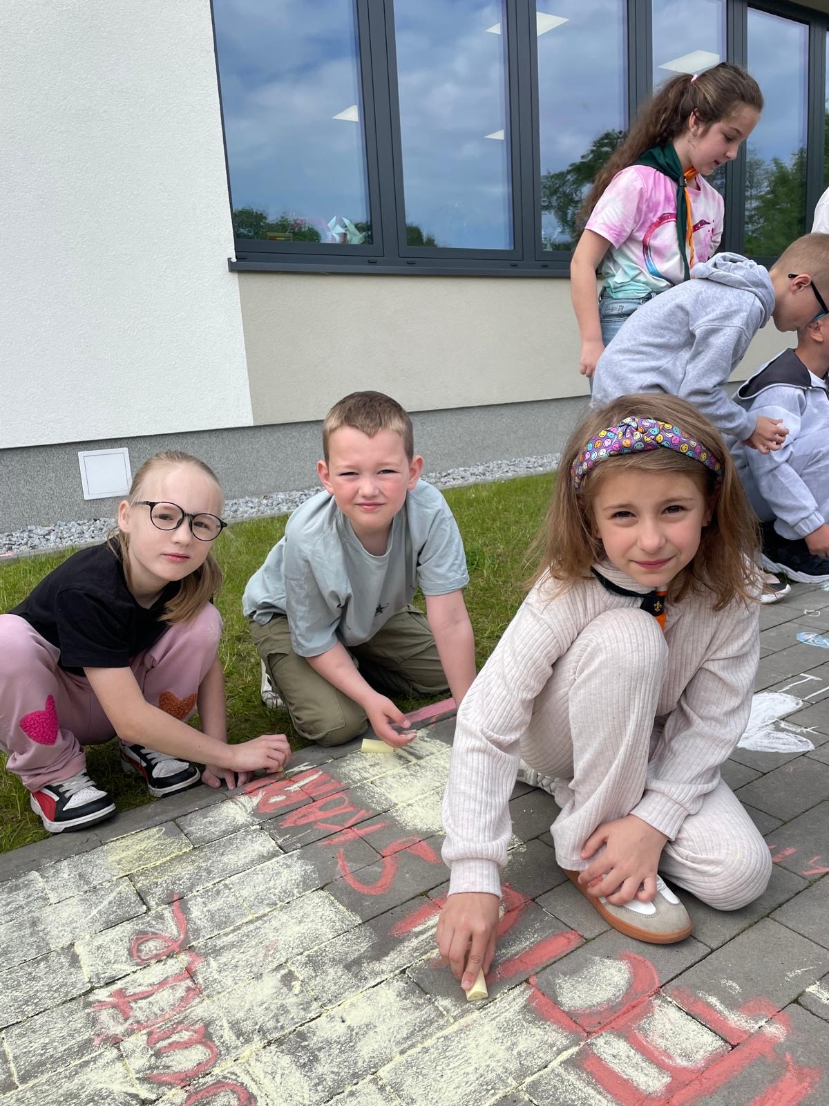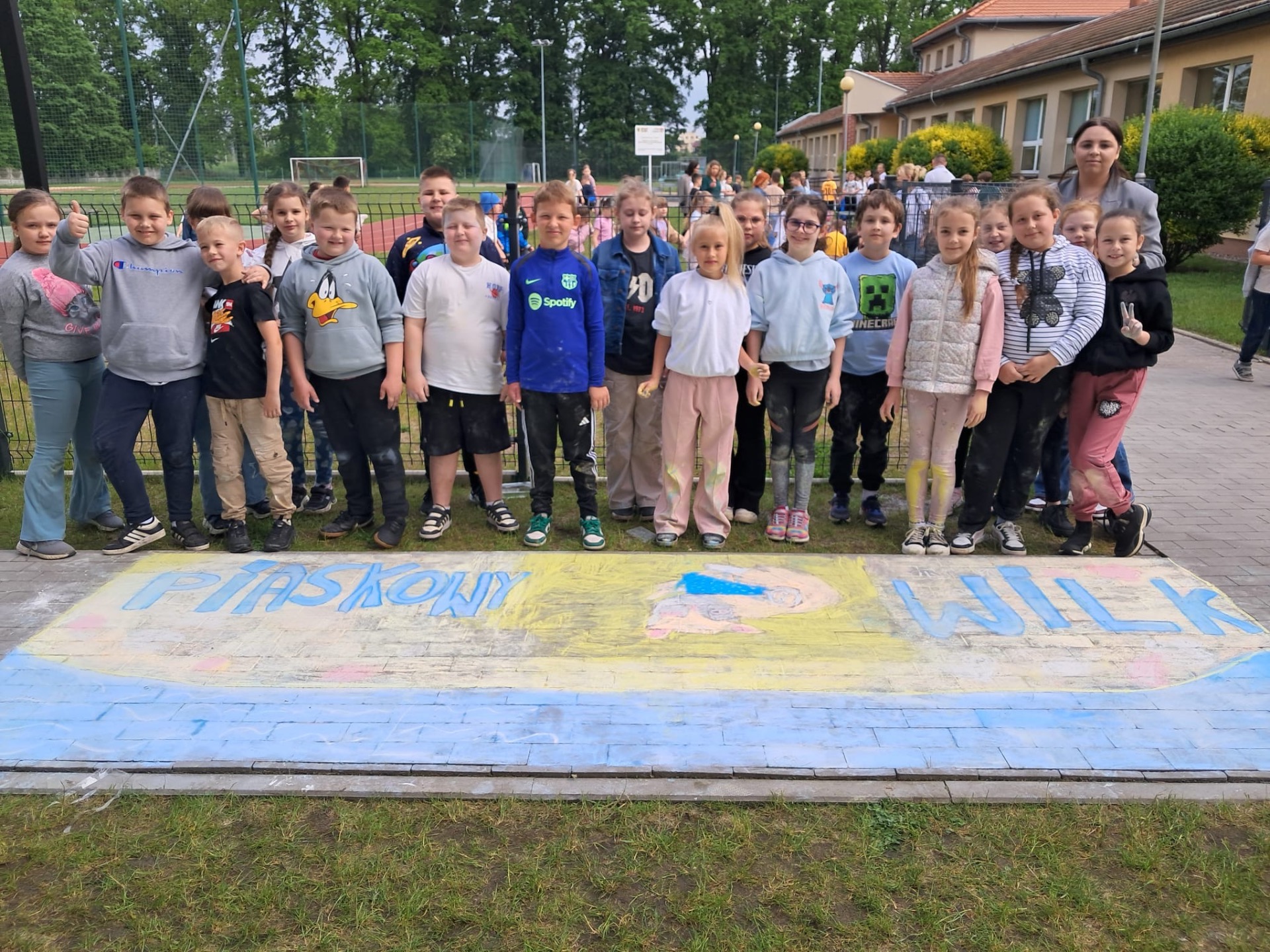 🎨 Szkolny chodnik przed wejściem ozdobiły kolorowe kredowe dzieła – uczniowie malowali okładki swoich ulubionych książek, dzieląc się tytułami, które ich inspirują i zachwycają.