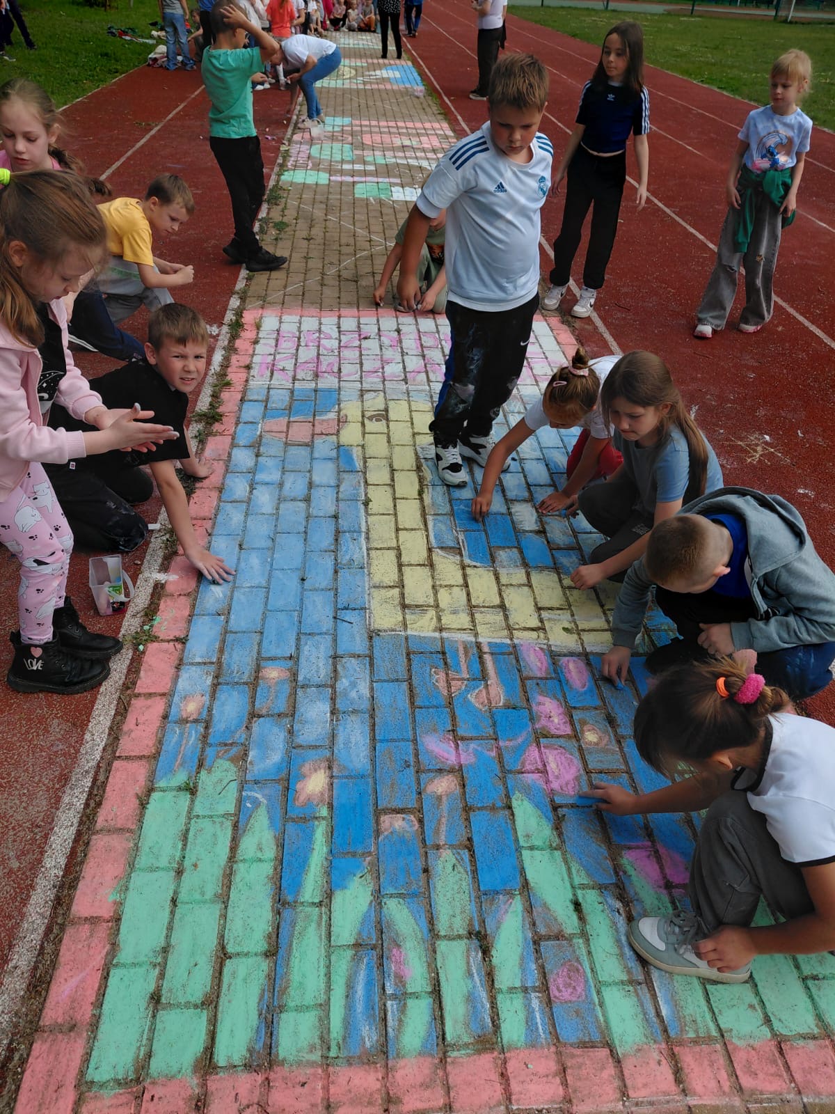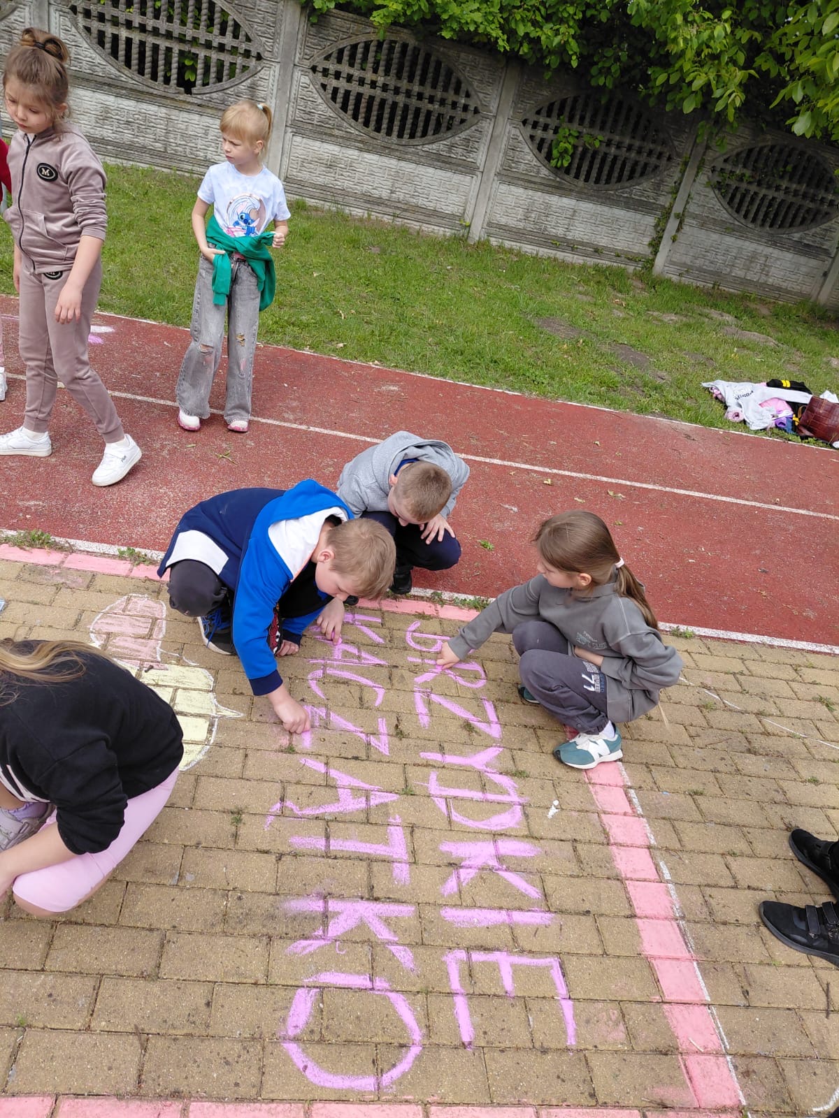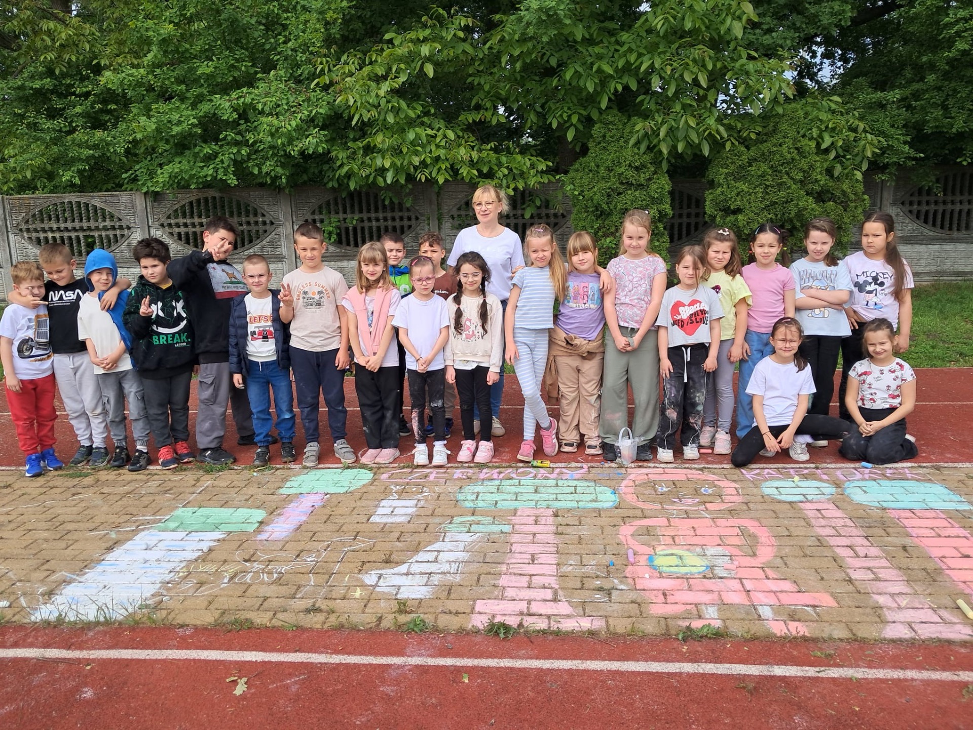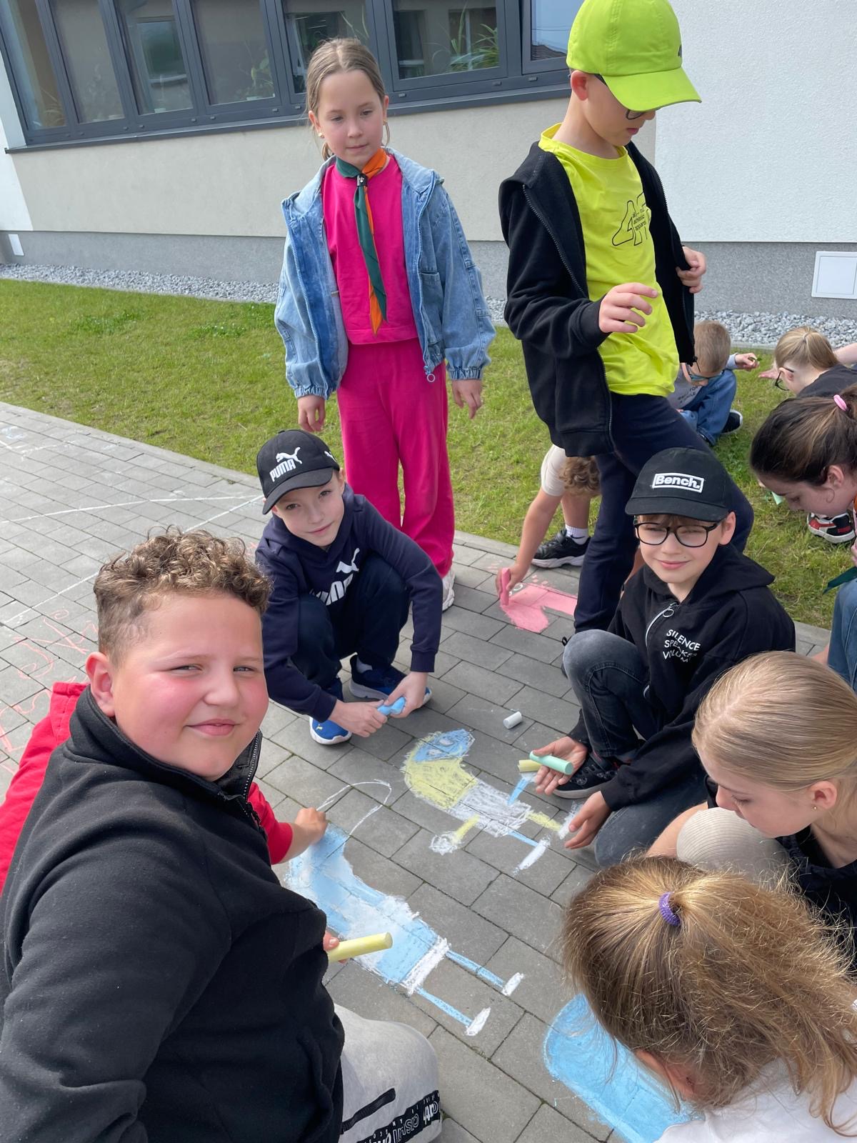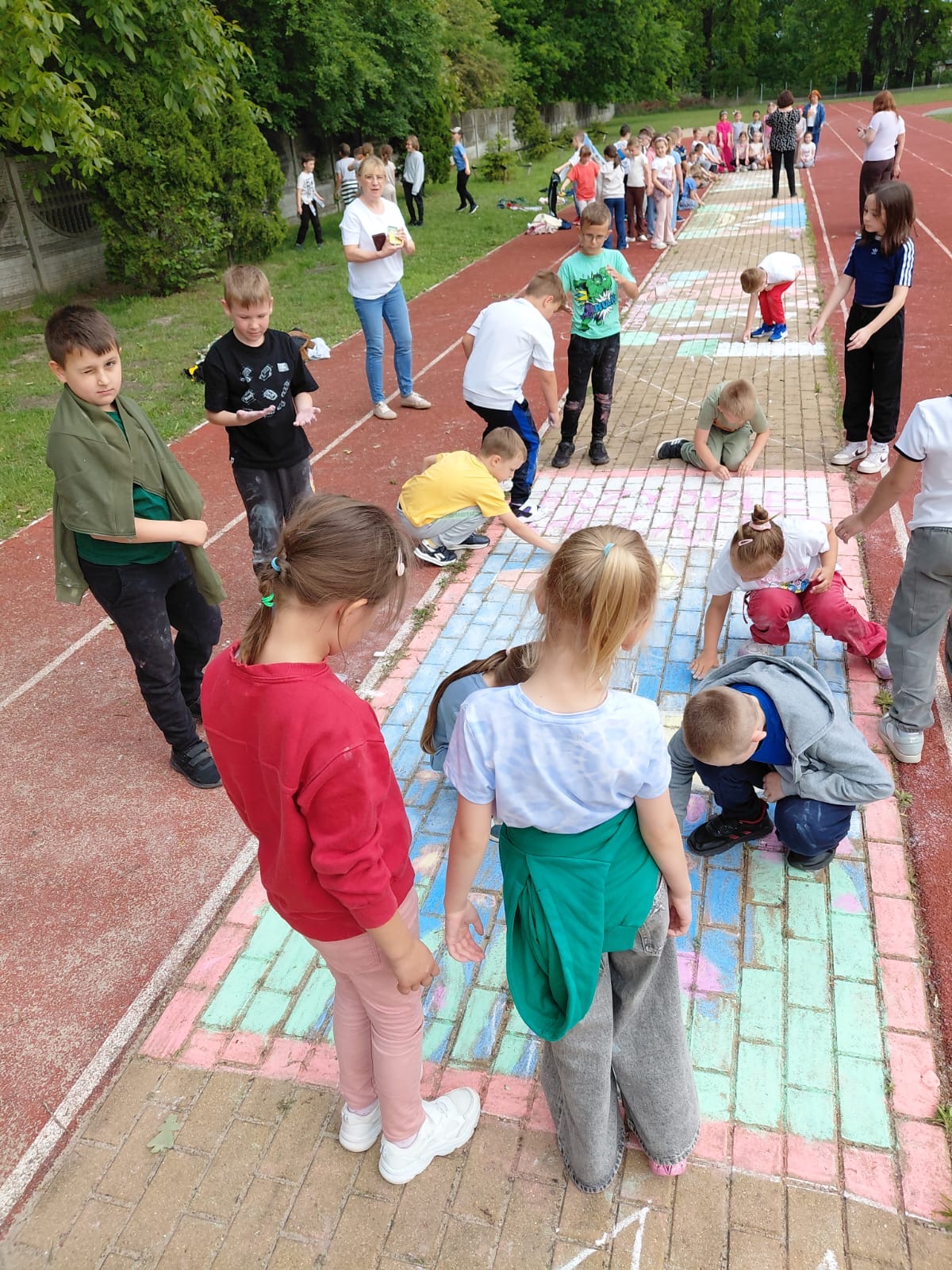 🎨 Szkolny chodnik przed wejściem ozdobiły kolorowe kredowe dzieła – uczniowie malowali okładki swoich ulubionych książek, dzieląc się tytułami, które ich inspirują i zachwycają.