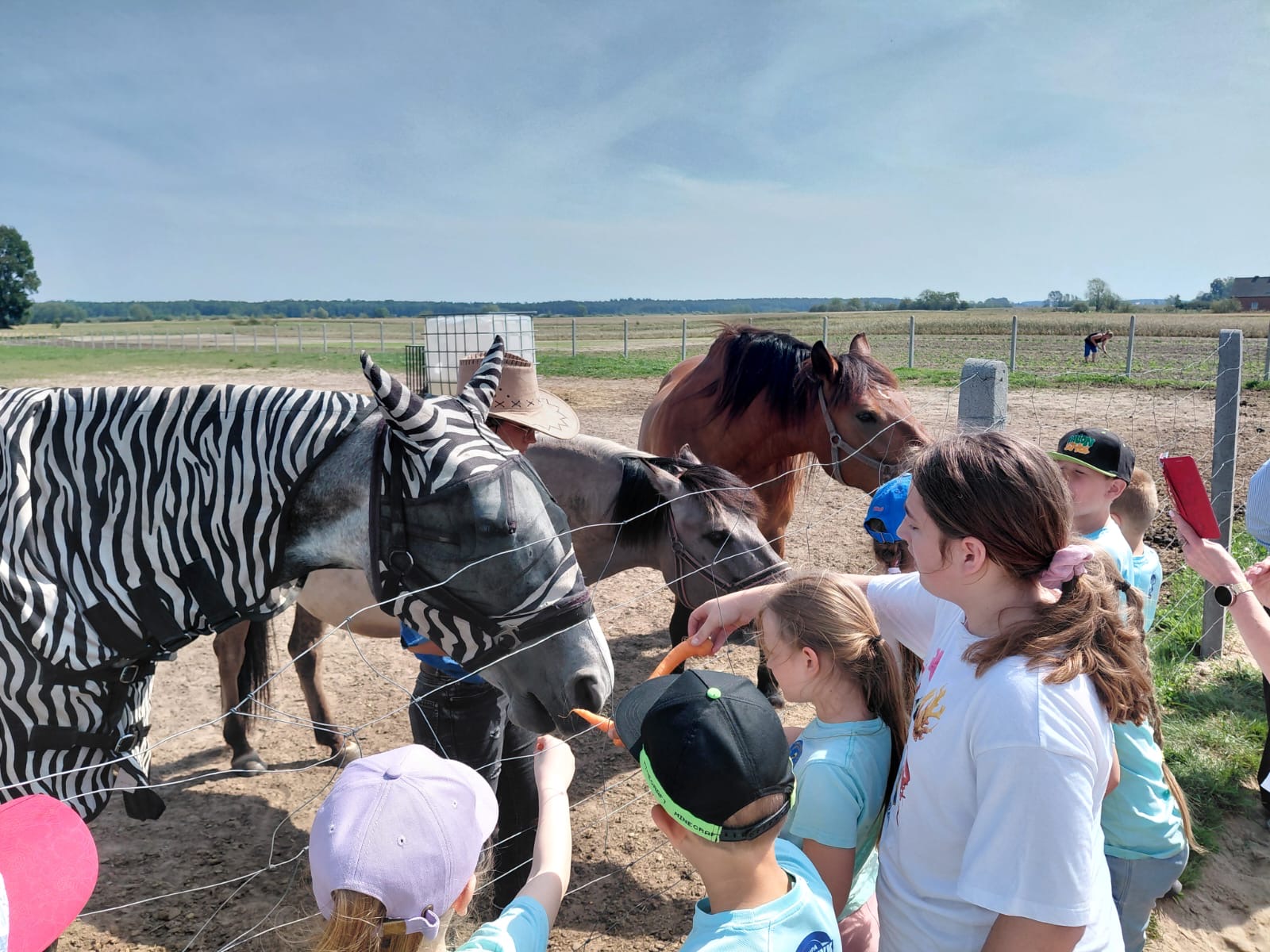 ✅pogłaskać i nakarmić konie, króliki i kury