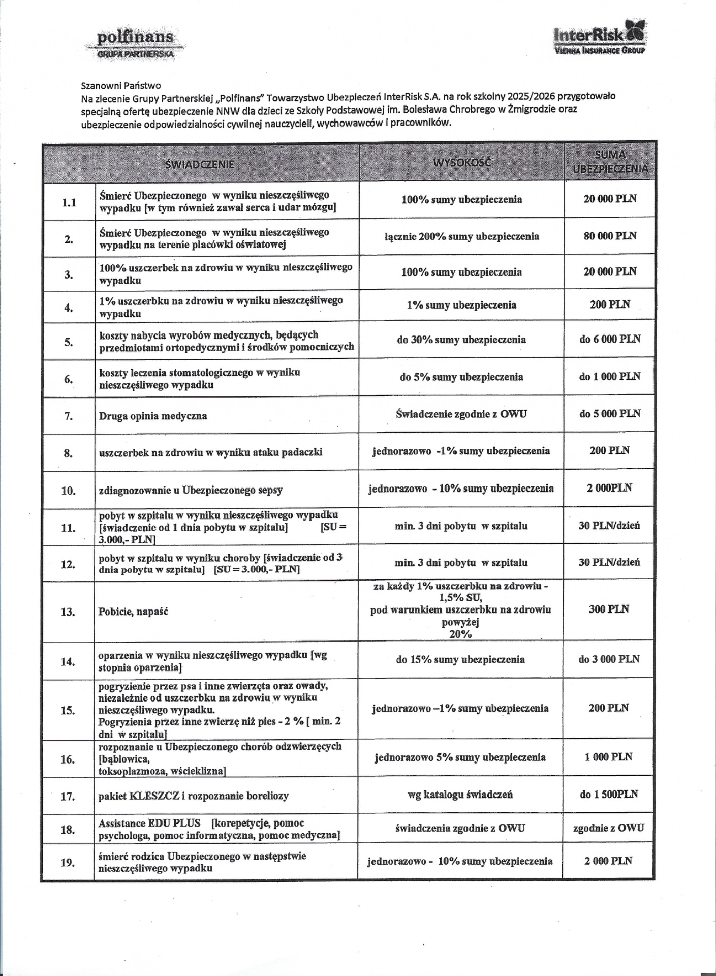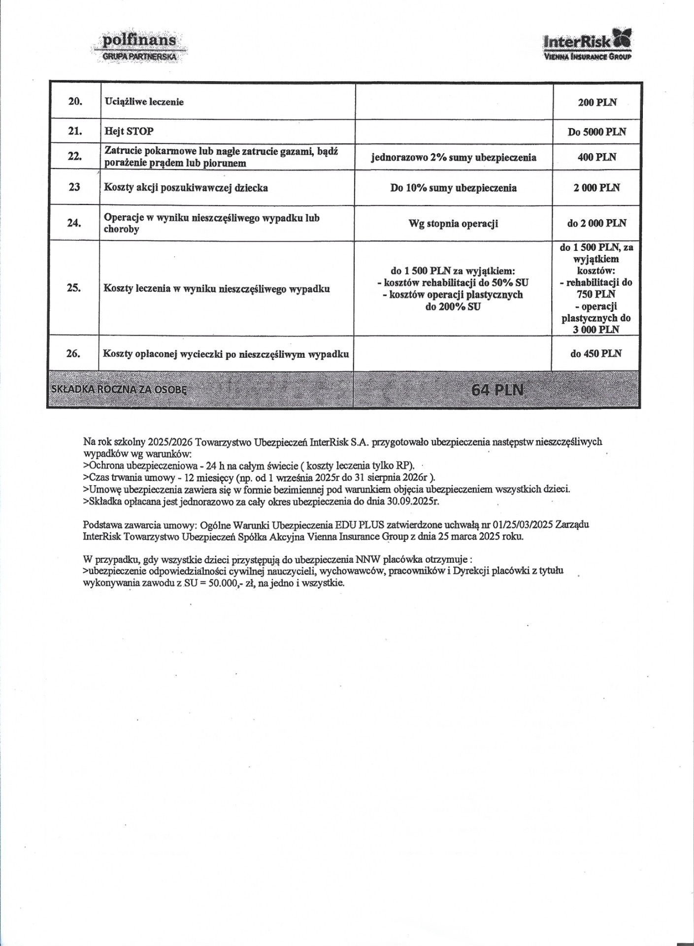 Płatności można dokonać w sekretariacie szkoły (ul.Sienkiewicza 6) do 15.10.2025