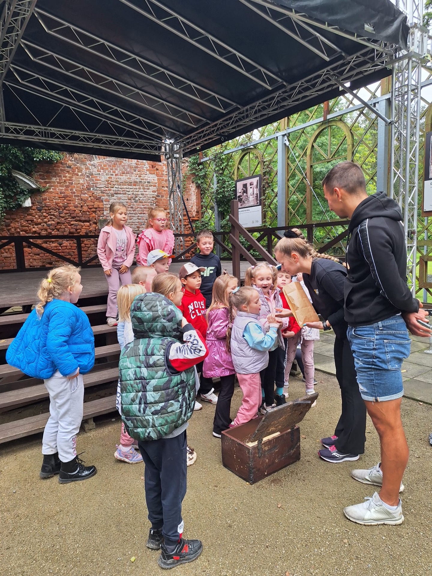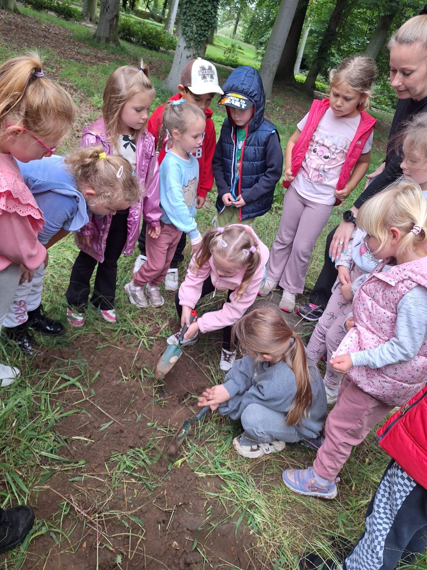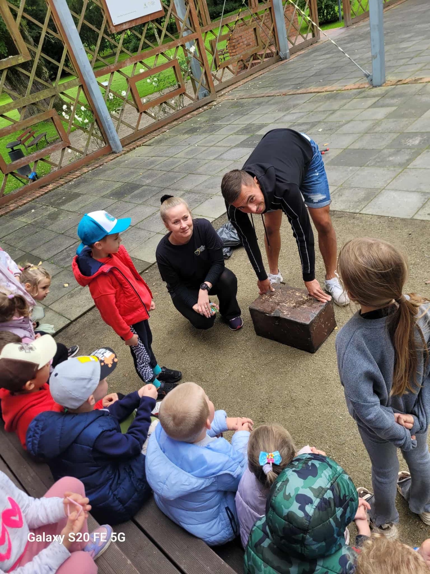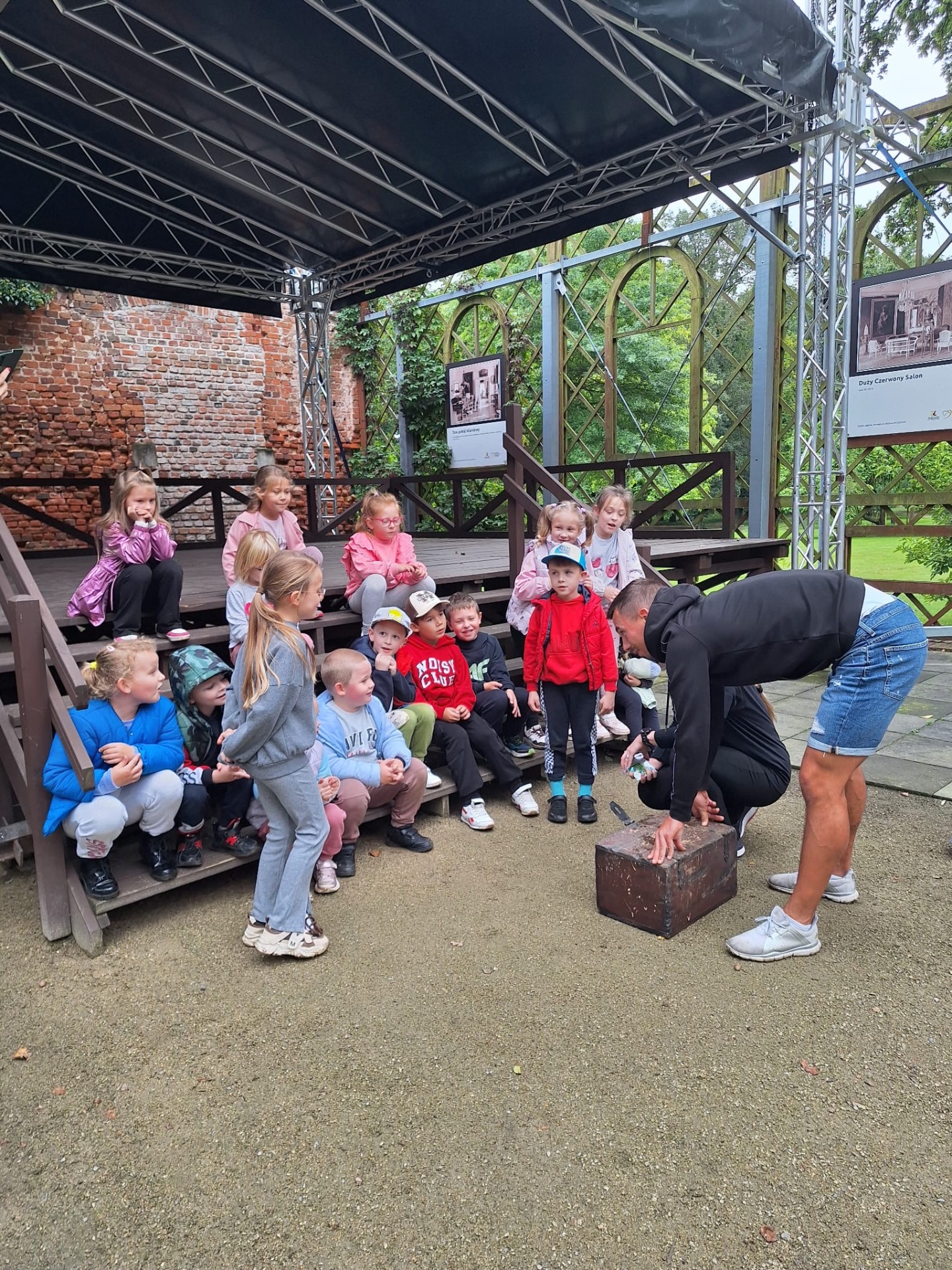 Za sprawą małych rączek naszych przedszkolaków królewski skarb ukryty w Zespole Pałacowo - Parkowym został dzisiaj odnaleziony! Zadanie nie było proste. Wymagało od nas świetnej kondycji, doskonałej pamięci i orientacji. Ale udało się! Złote monety należą do nas. Choć to nie monety były dzisiaj najważniejsze. Uczyliśmy się przede wszystkim współpracy. Całą wyprawę zakończyliśmy ogniskiem. Czy wróciliśmy brudni, zmęczeni i zadowoleni? Oczywiście, że tak!