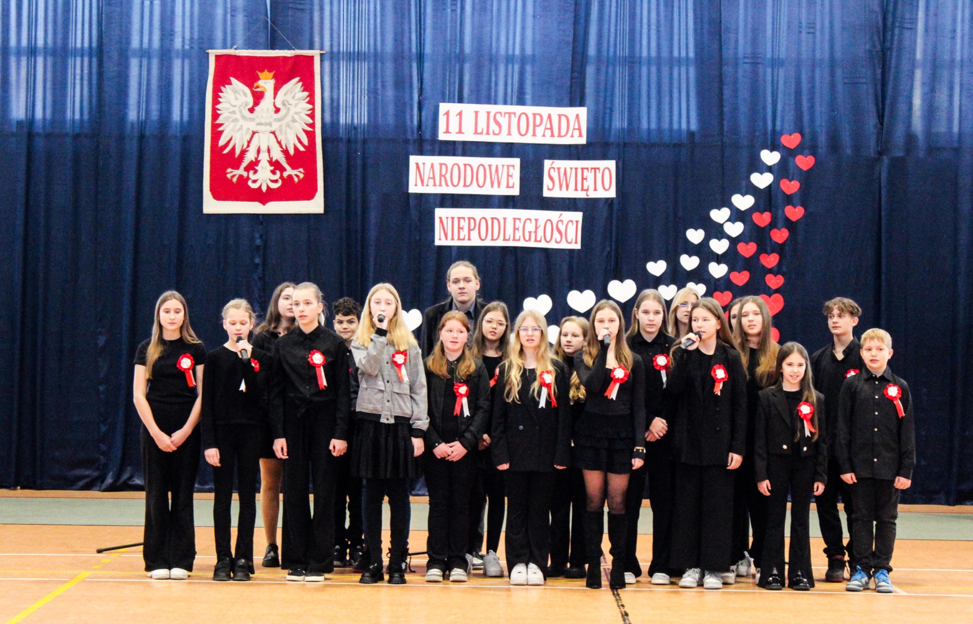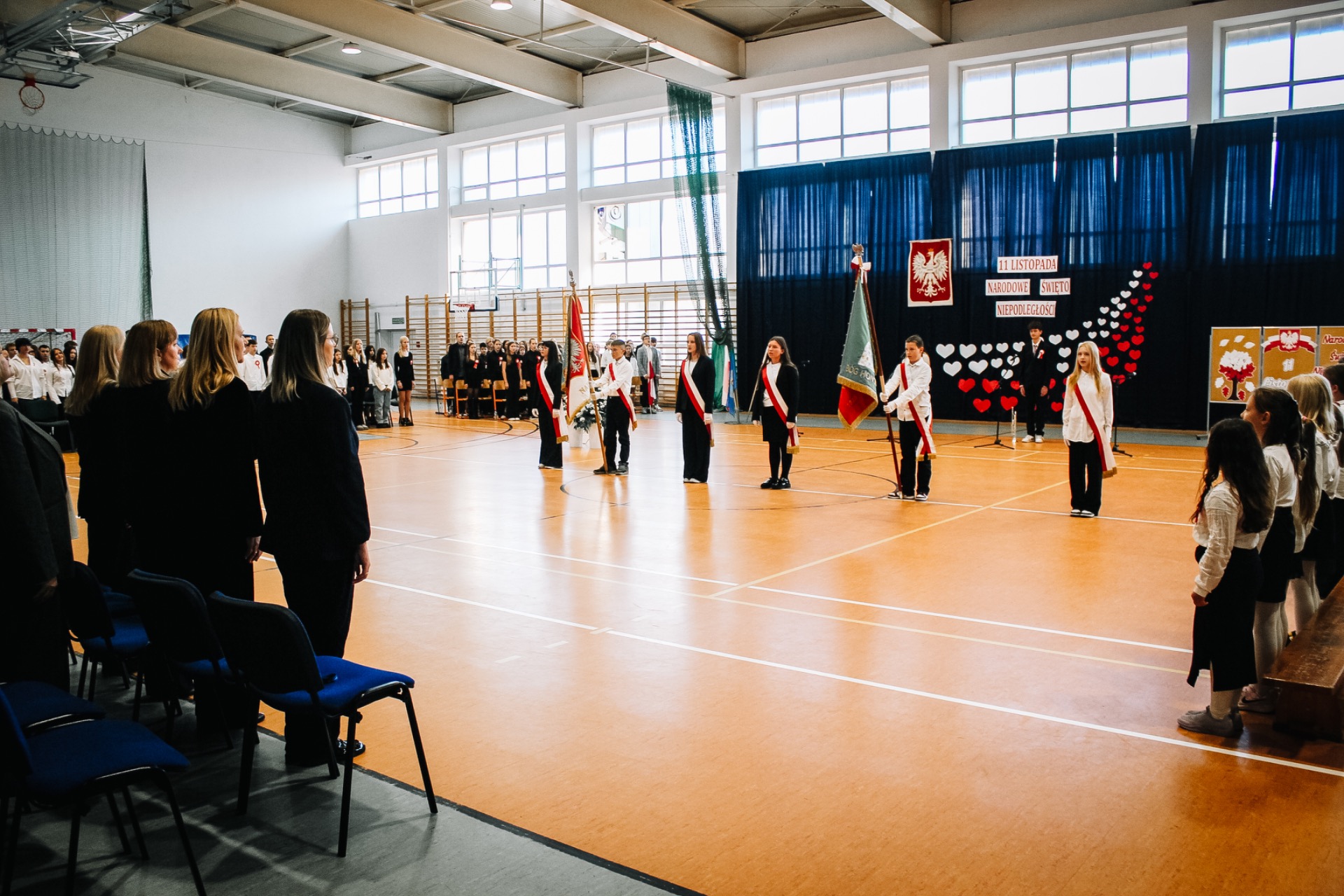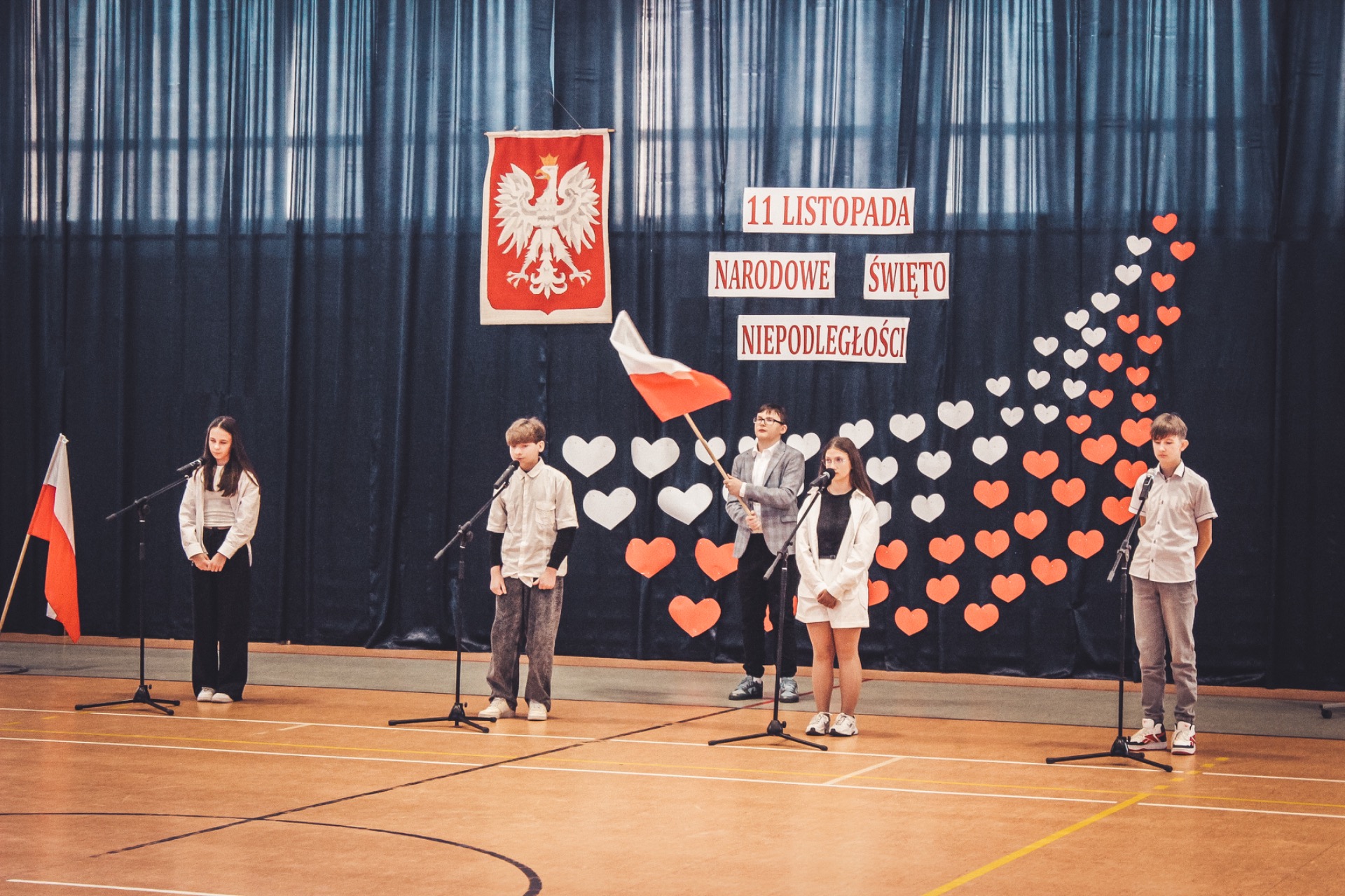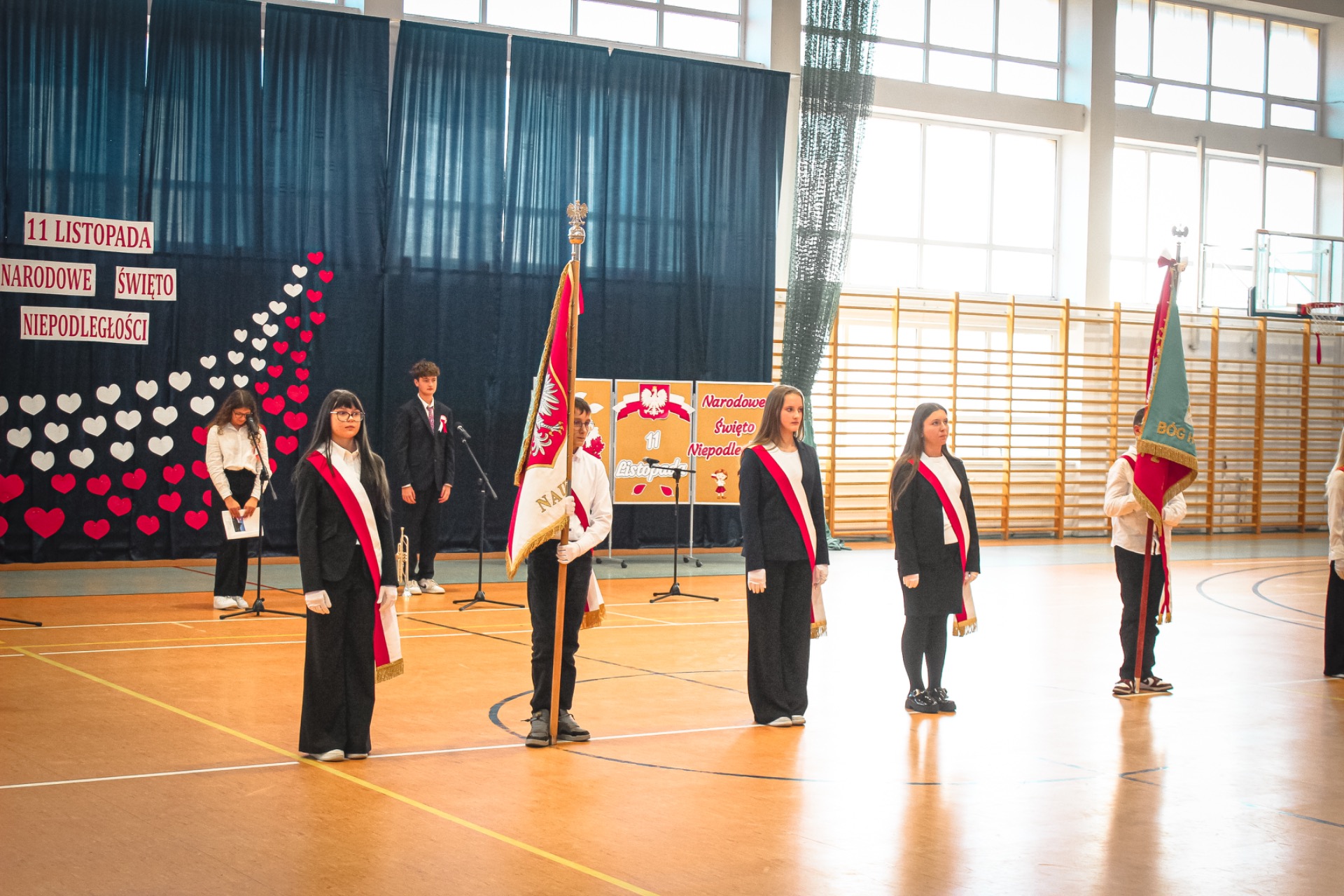 W dniu dzisiejszym 7 listopada 2025 roku w naszej szkole odbył się uroczysty apel z okazji zbliżającego się Święta Niepodległości.