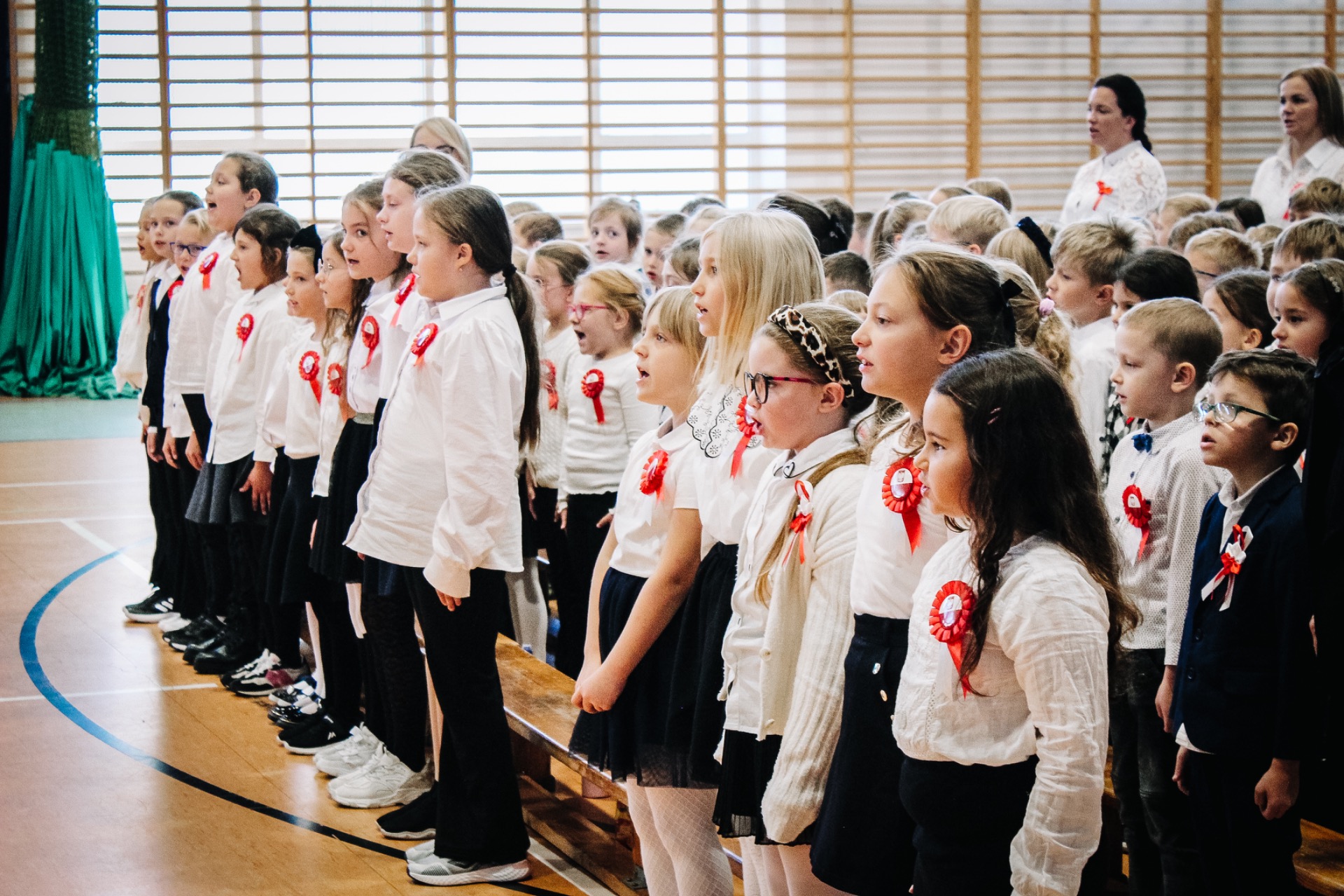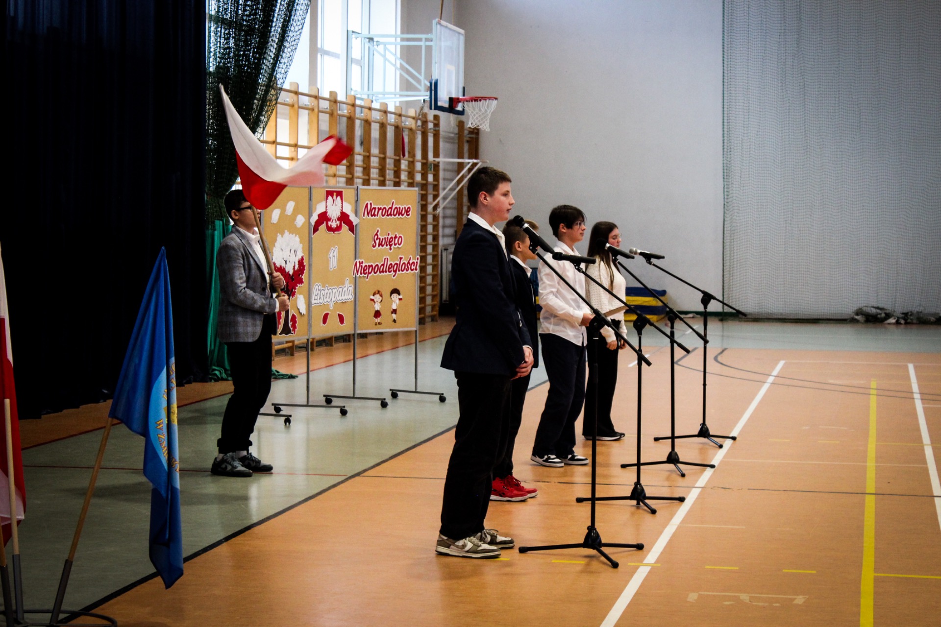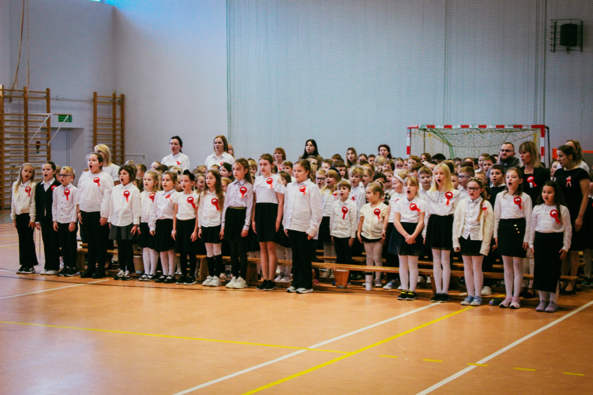 Uczniowie z klas młodszych oraz zespoł wokalno-teatralny pod kierunkiem Pani Marty Motkowicz oraz Pani Justyny Ohera ,zaprezentowali piękny i wzruszający montaż słowno-muzyczny na tą okazję. Jak co roku nasza szkoła przystąpiła do projektu Szkoła do hymnu. Cała nasza społeczność odpśpiewała Hymn państwowy o godzinie 11:11. Na zakończenie głos zabrała Pani Dyrektor Dorota Jakusztowicz, po czym nastapiło odśpiewanie Hymnu Sybiraków, których sztandarem opiekuje sie nasza placówka. Pełni wrażeń udalismy się do klas na kolejne lekcje.