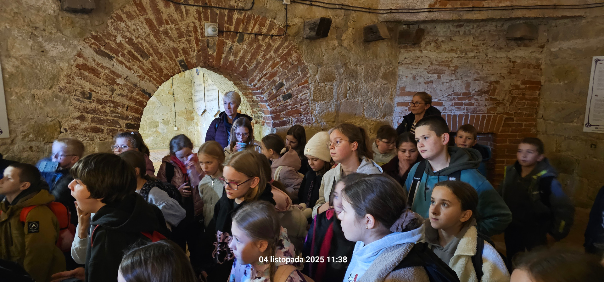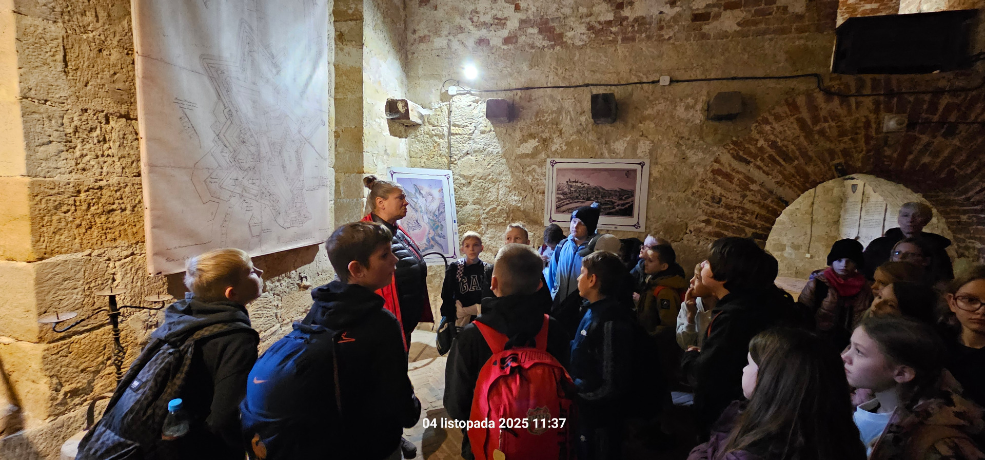 Następnie odbyliśmy niezwykły spacer po chodnikach kontrminerskich, tworzących prawdziwy podziemny labirynt. Zwiedzanie okazało się wyjątkowe – z powodu prac remontowych chwilowo zabrakło prądu! Na szczęście byliśmy świetnie przygotowani – mieliśmy własne latarki, a nad naszym bezpieczeństwem czuwał przewodnik oraz nasze panie wychowawczynie. Momentami było naprawdę ciasno, ale daliśmy radę!