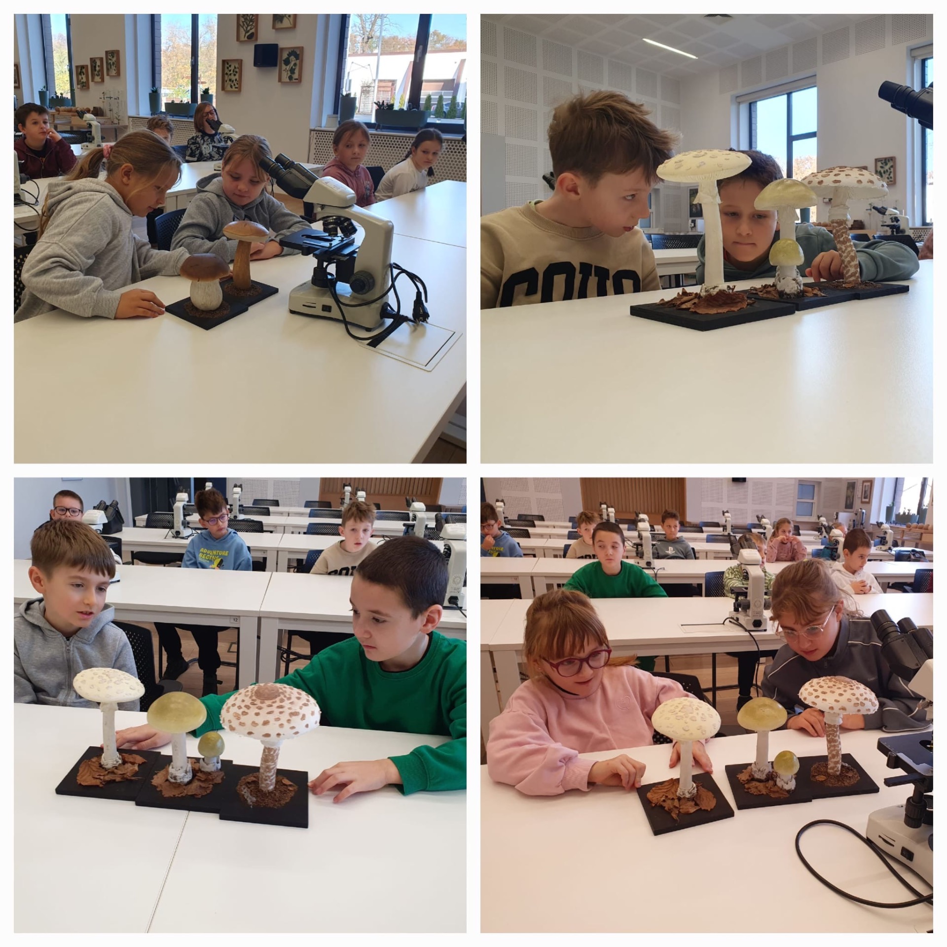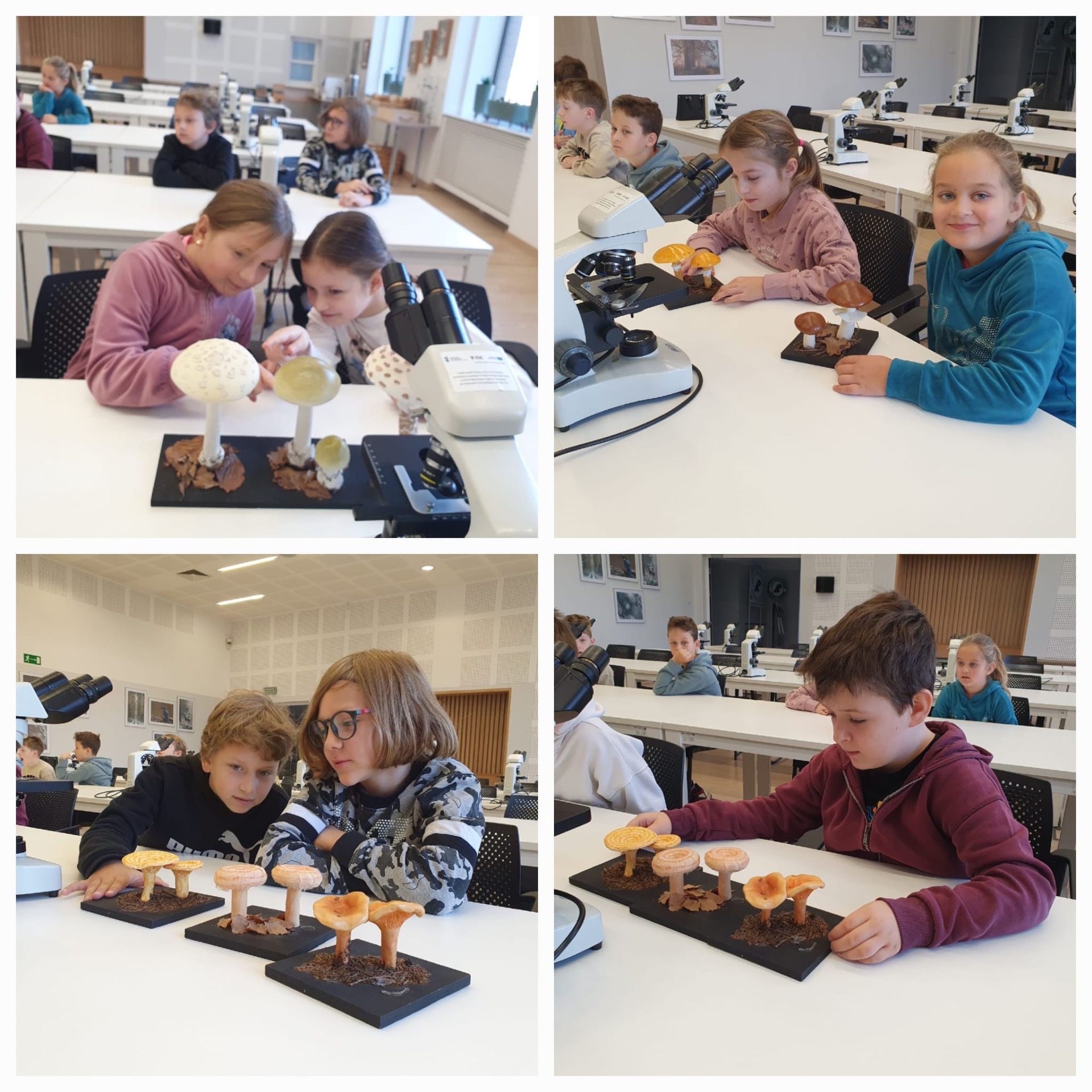 · Pani Karolina wyjaśniła nam, na czym polegają kluczowe role grzybów w lesie: rozkładają szczątki zwierząt i roślin oraz wspierają drzewa dzięki mikoryzie- pomagają drzewom pobierać wodę. Dowiedzieliśmy się również, że grzyby dzielimy na te dobre, czyli jadalne i pożyteczne, a także na te powodujące choroby i trujące.