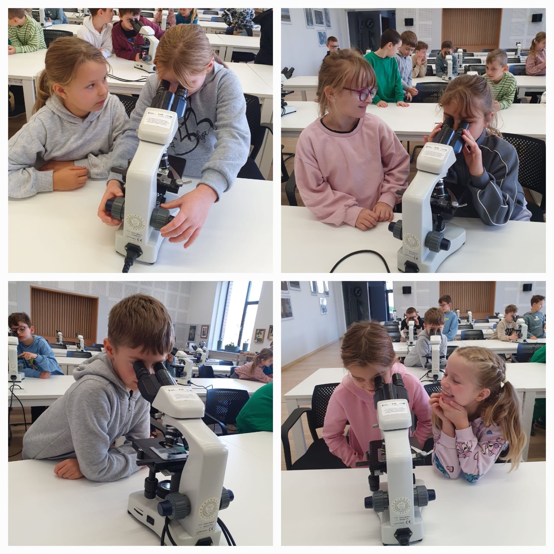 Poznaliśmy budowę mikroskopu i samodzielnie uczyliśmy się jego obsługi! Oglądaliśmy m.in.: