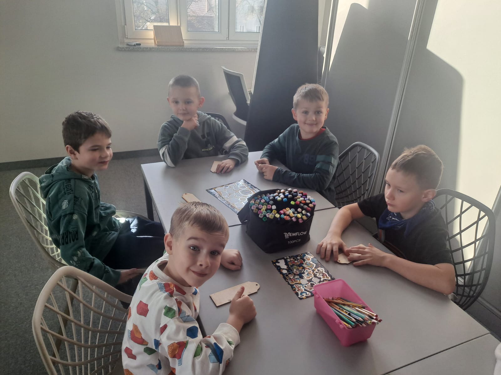 🎨Nie zabrakło też zajęć plastycznych, na których nasi mali odkrywcy wykonali drewniane zakładki do książek według własnego pomysłu.