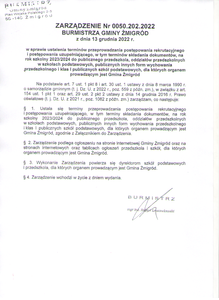 Rozporzadzenie Burmistrza w sprawie rekrutacji